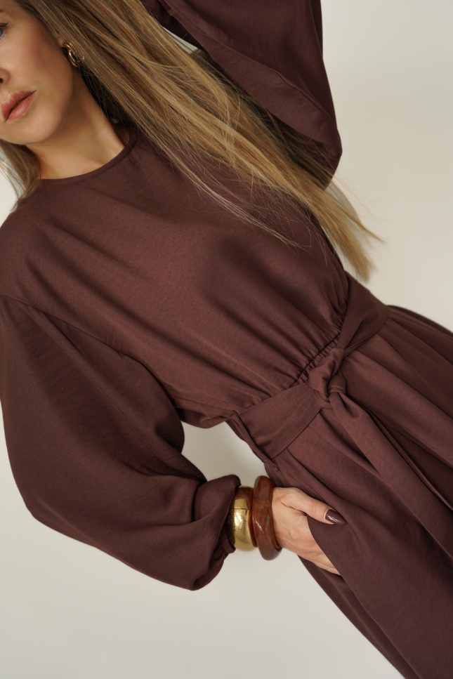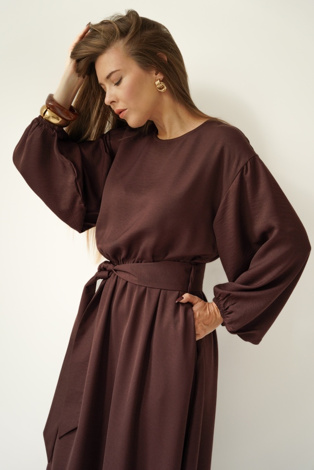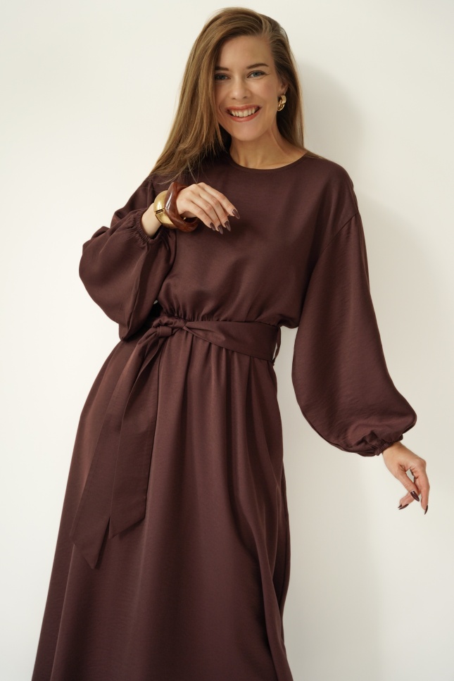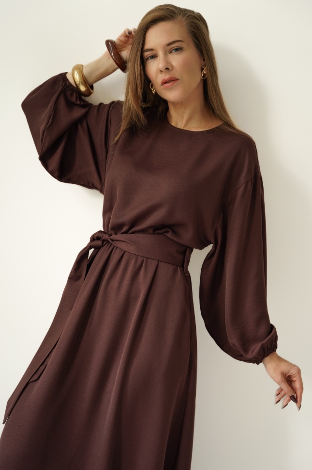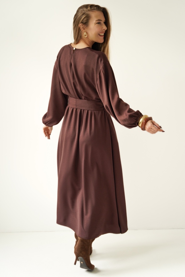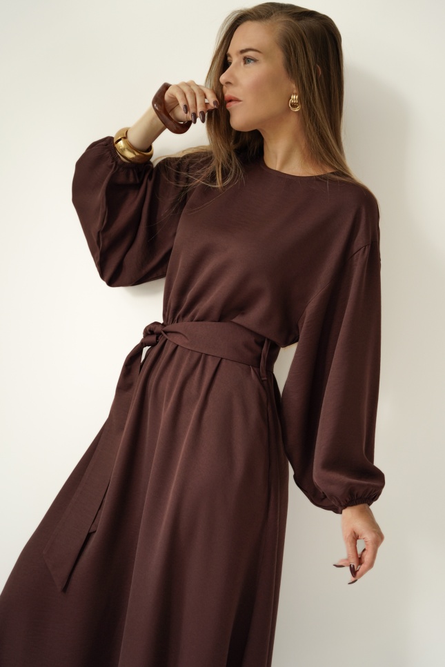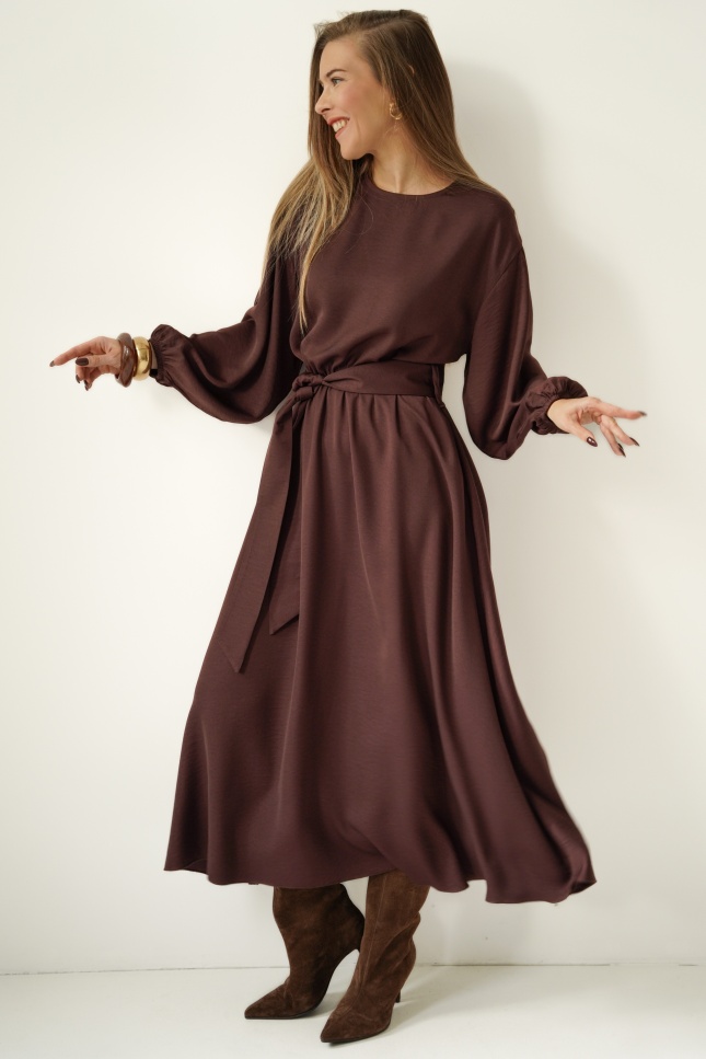 Flared dress with puffed sleeves Amelie spicy chocolate