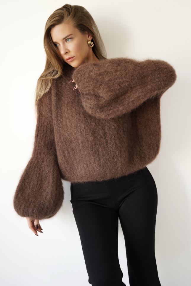 Fluffy kid mohair sweater with bell sleeves Philo chocolate