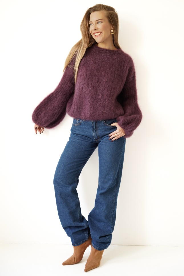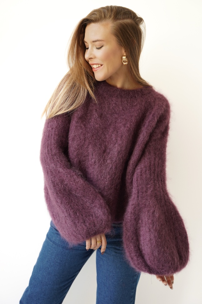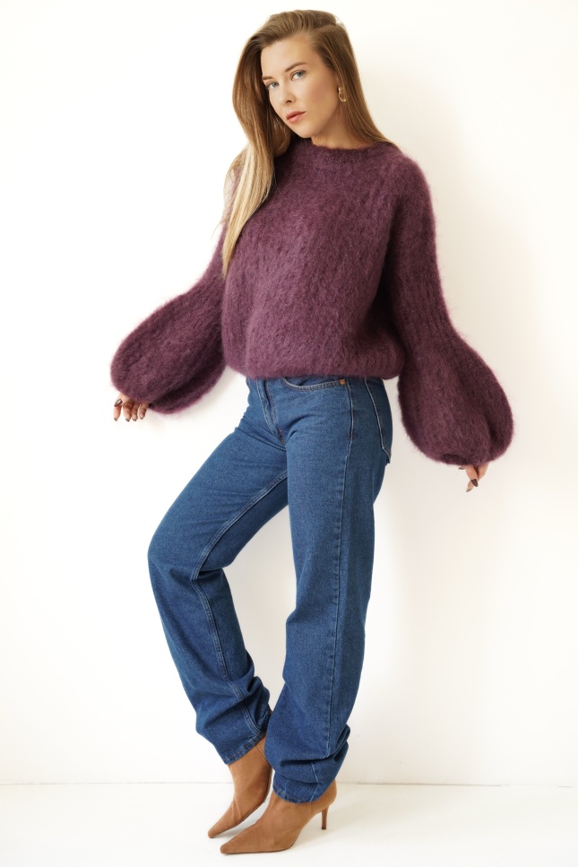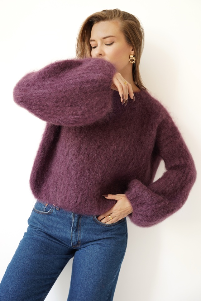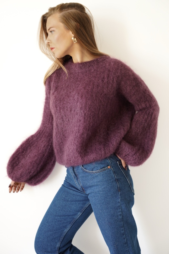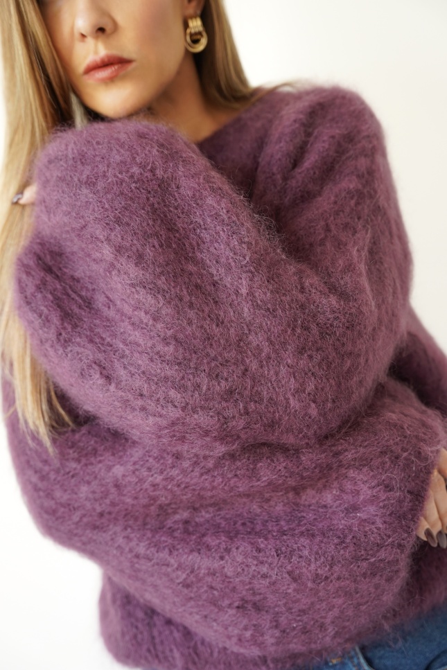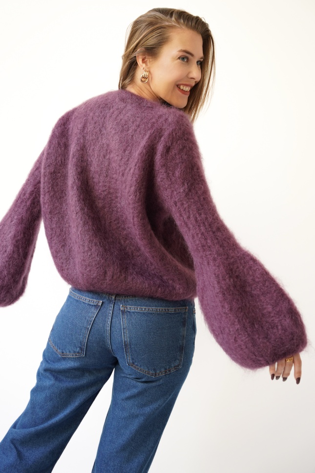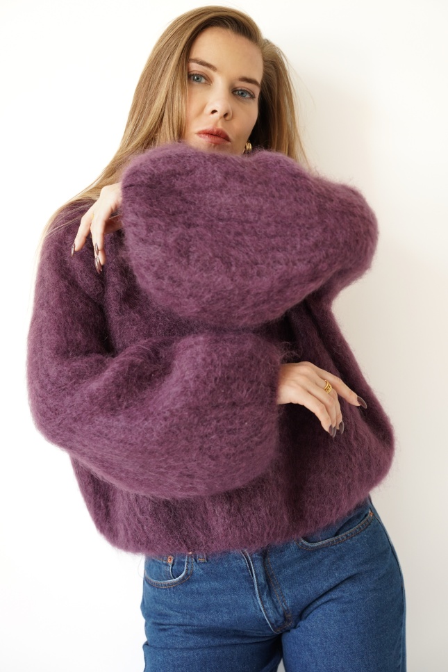Fluffy kid mohair sweater with bell sleeves Philo plum