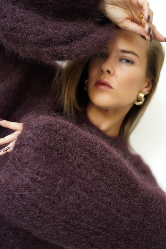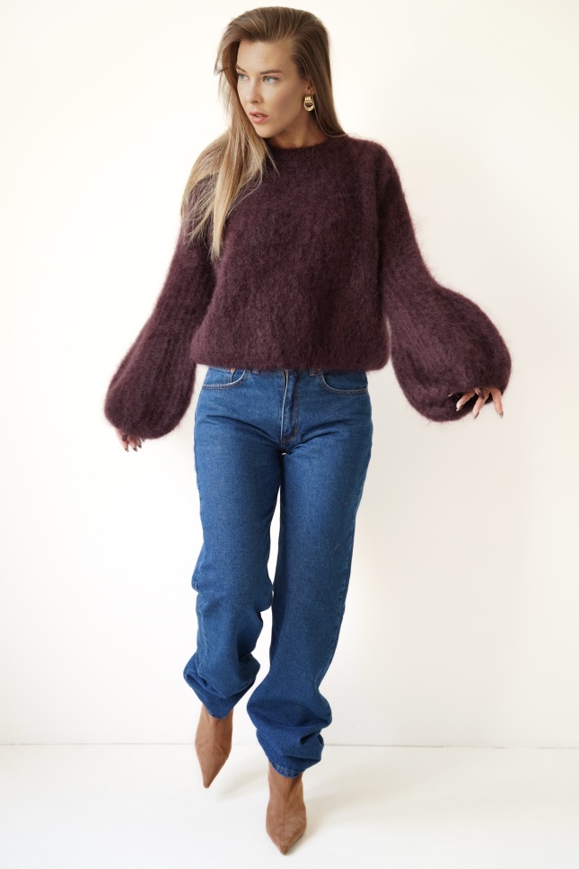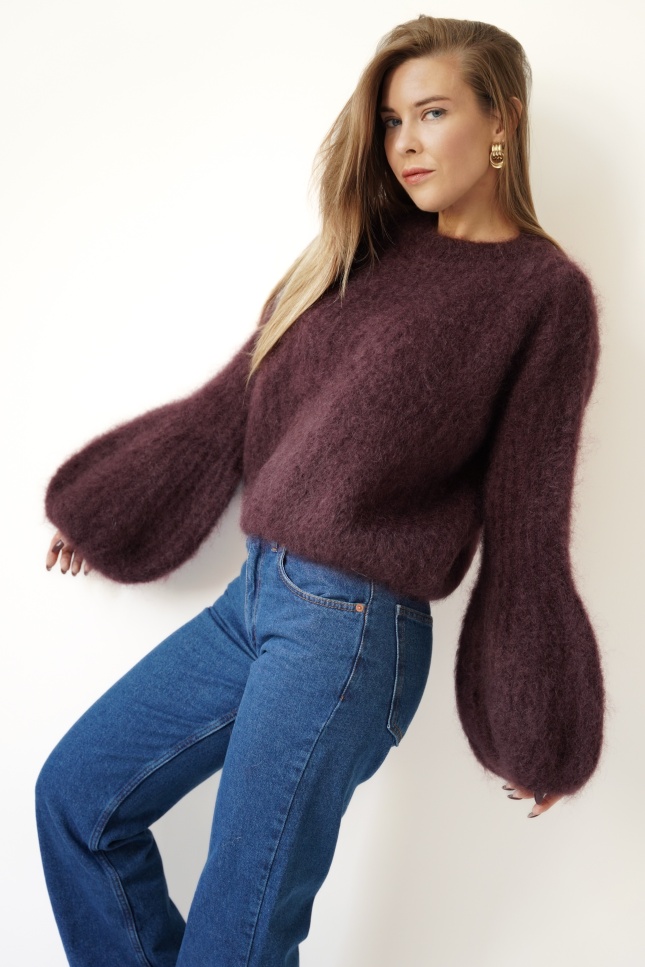 “Philo” is a short sweater with an exceptionally soft, fluffy texture with the addition of kid mohair. Delicately flared bell sleeves give it a romantic, feminine character. Lightweight, skin-friendly, and charming – perfect for skirts, jeans, and dresses in the spirit of modern romanticism.
