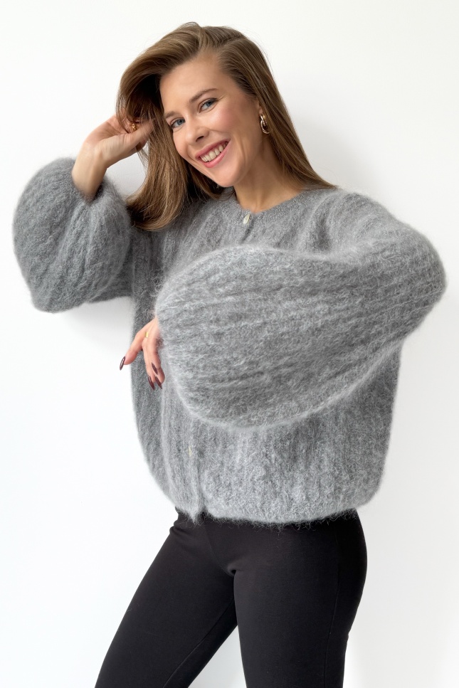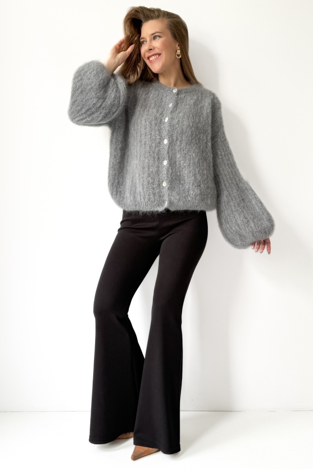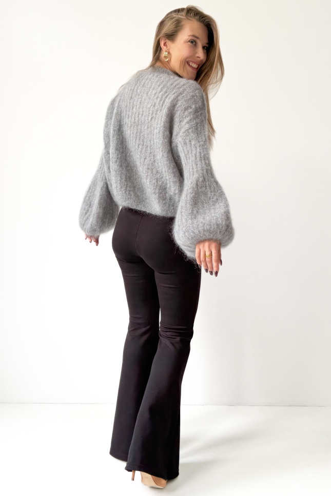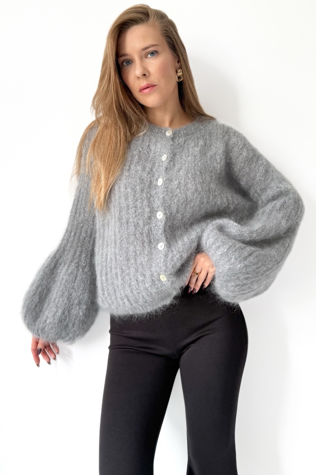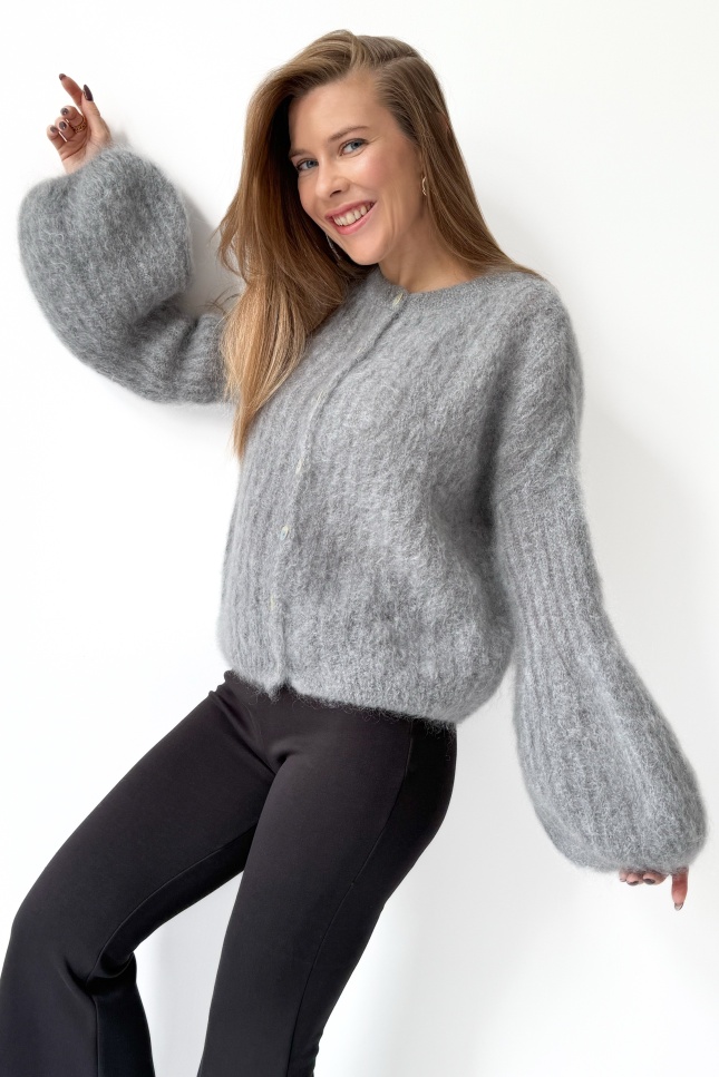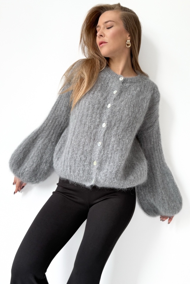 Fluffy kid mohair sweater with buttons and bell sleeves Clement grey