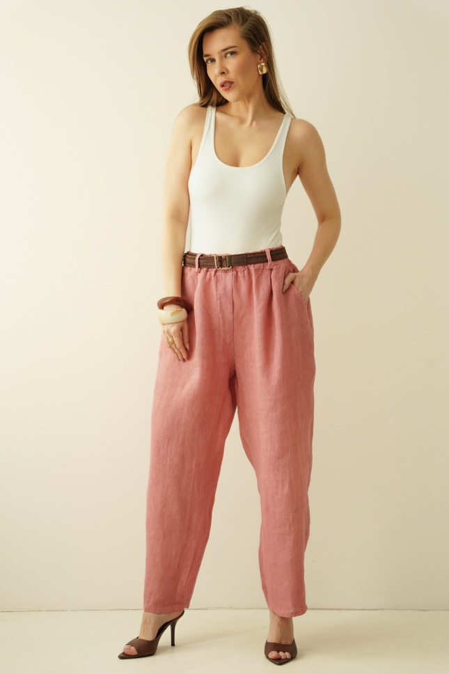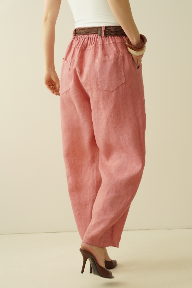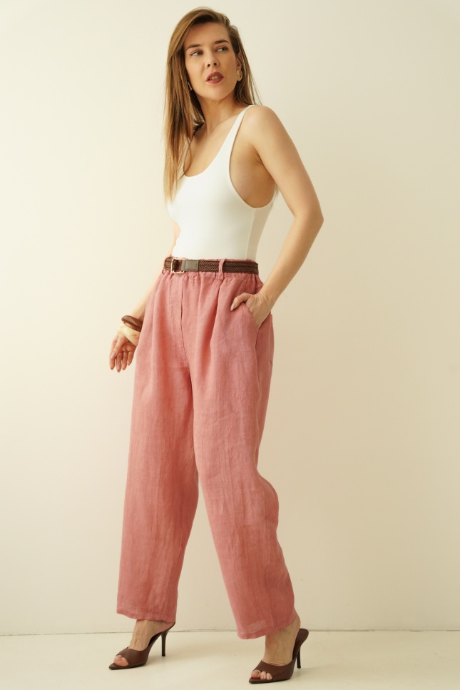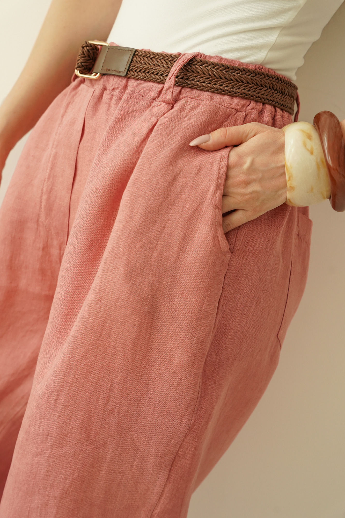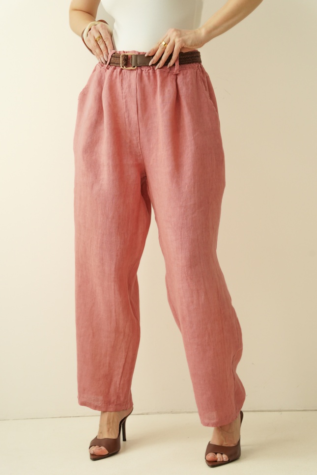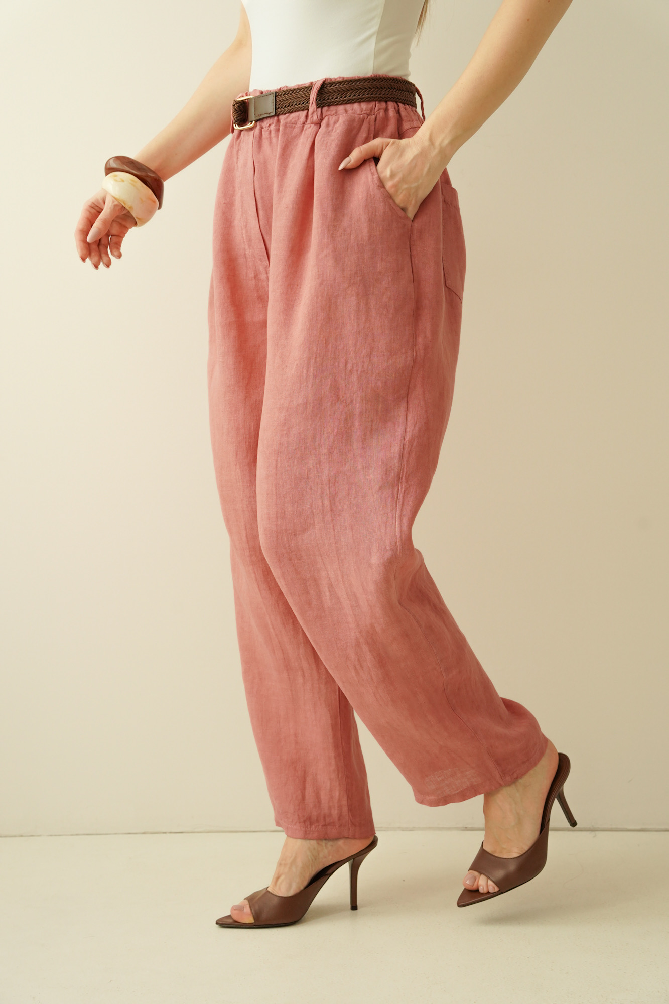 Hiigh-waisted loose-fit linen trousers in antic rose