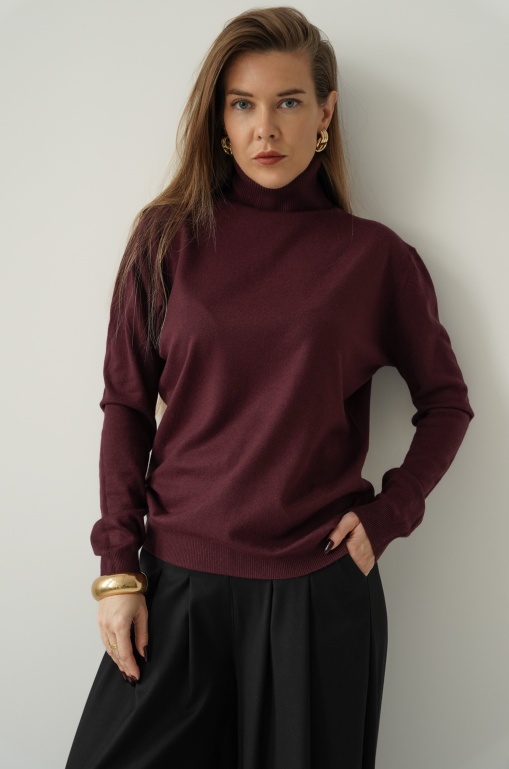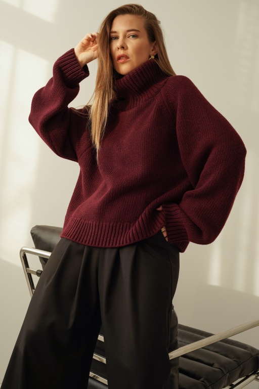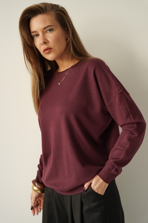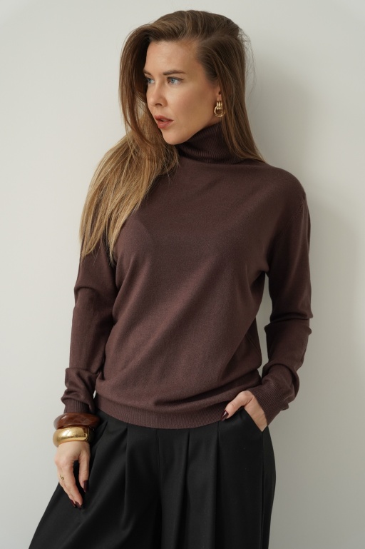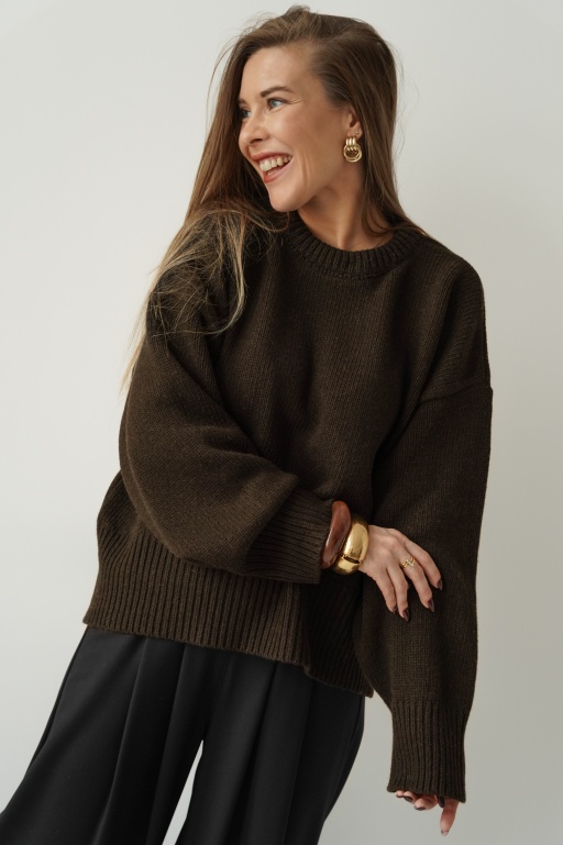 Loose oversized jumper made from Norden bouclé yarn in chocolate brown