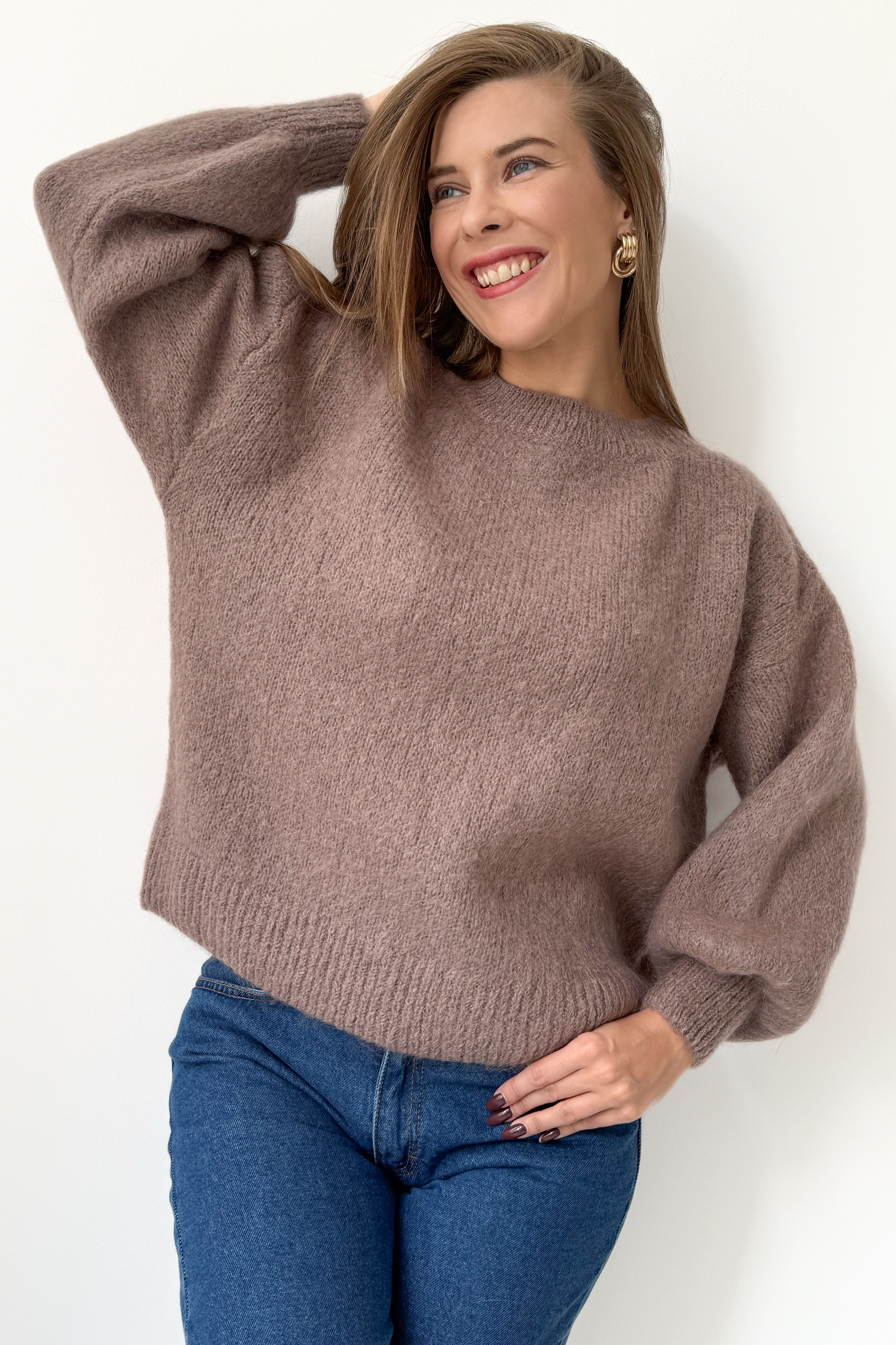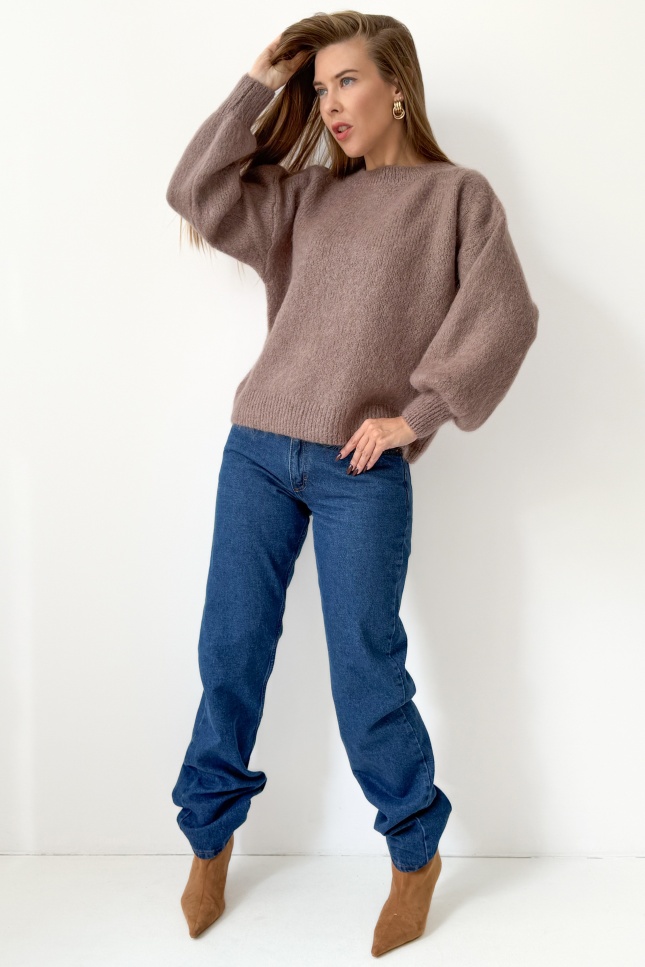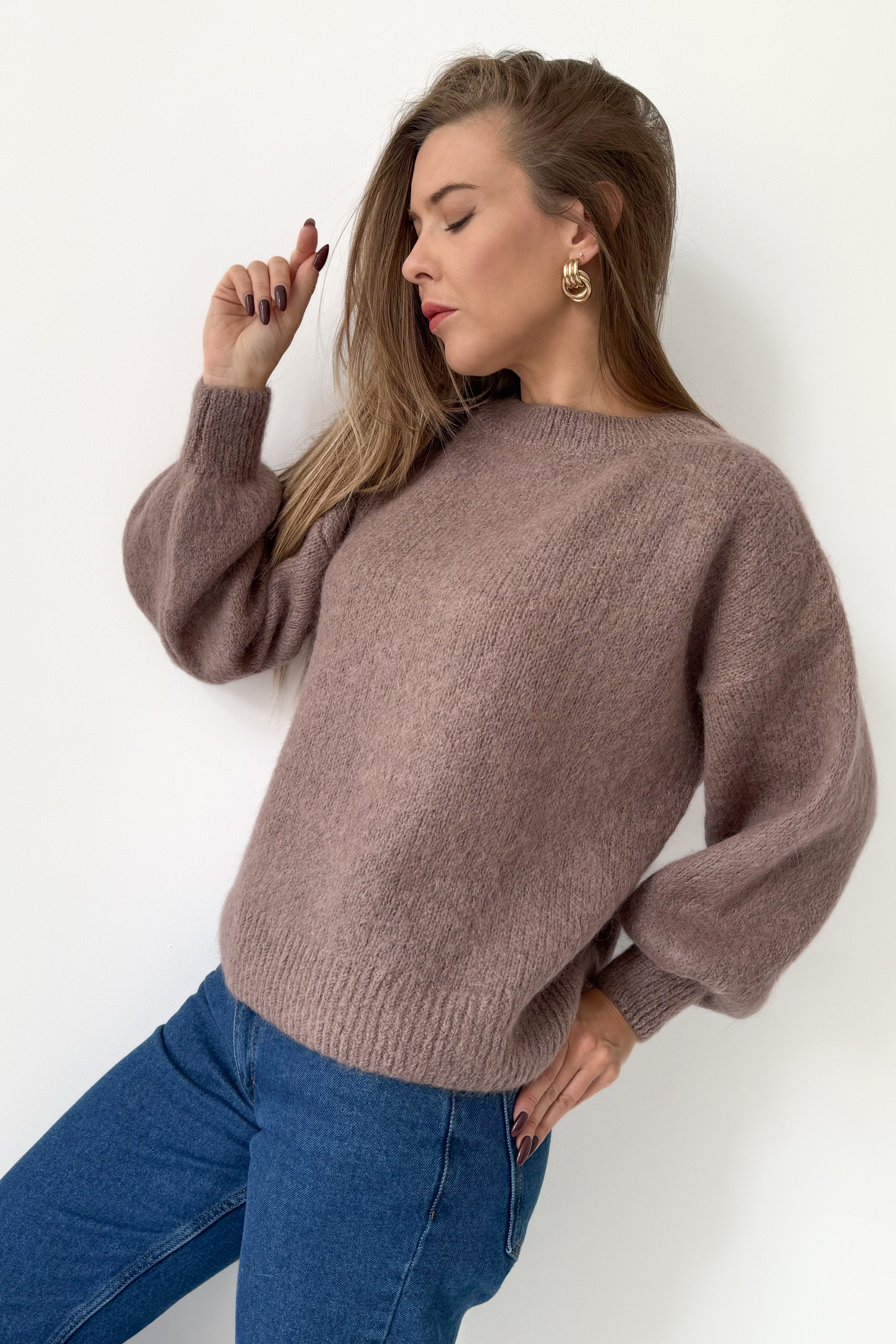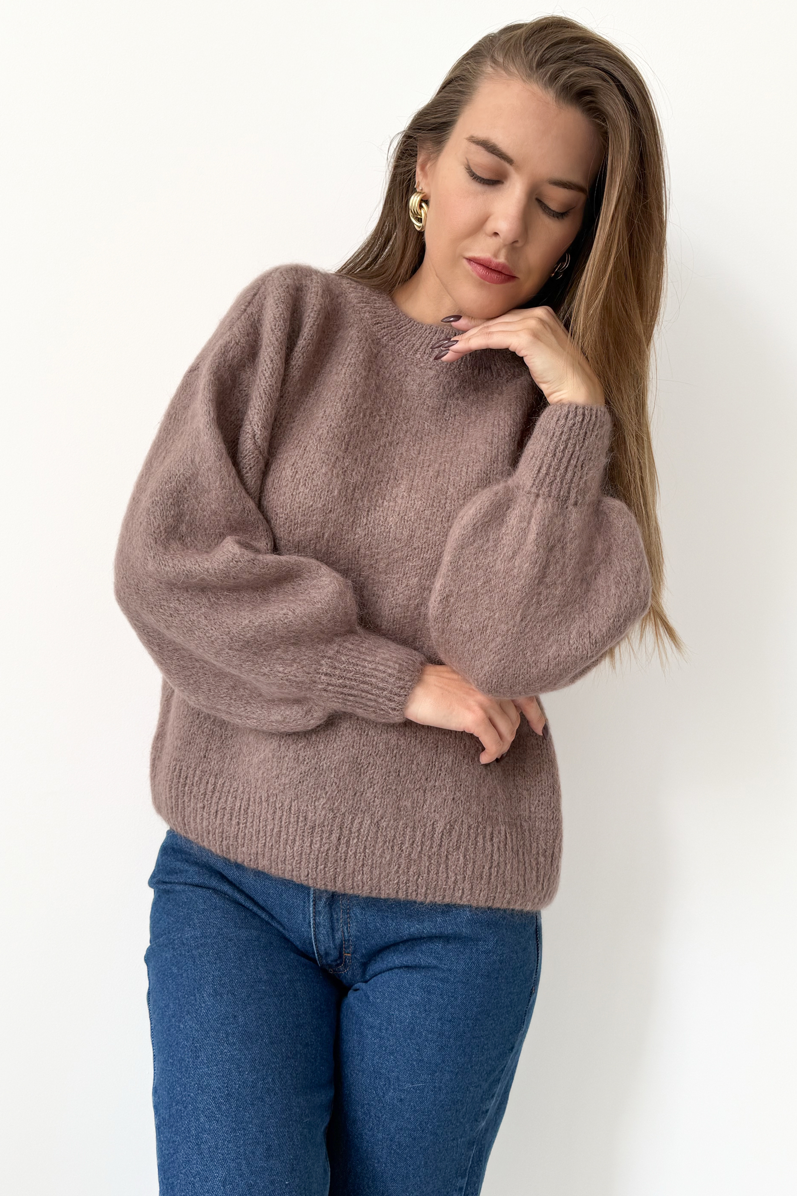 Eva is a classic sweater with subtly puffed sleeves that combines simplicity of form with elegant details. Made from natural yarn with added kid mohair, mohair, and wool, it delights with its softness, lightness, and pleasant warmth. Its timeless design makes it a perfect match for jeans, elegant trousers, or a skirt – it's a sweater that always looks stylish.