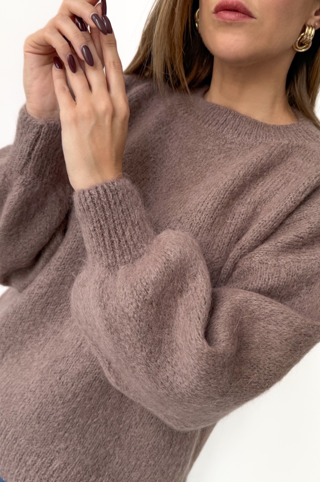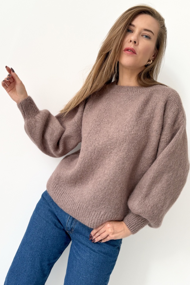 Kid mohair sweater with puffed sleeves Eva cappuccino