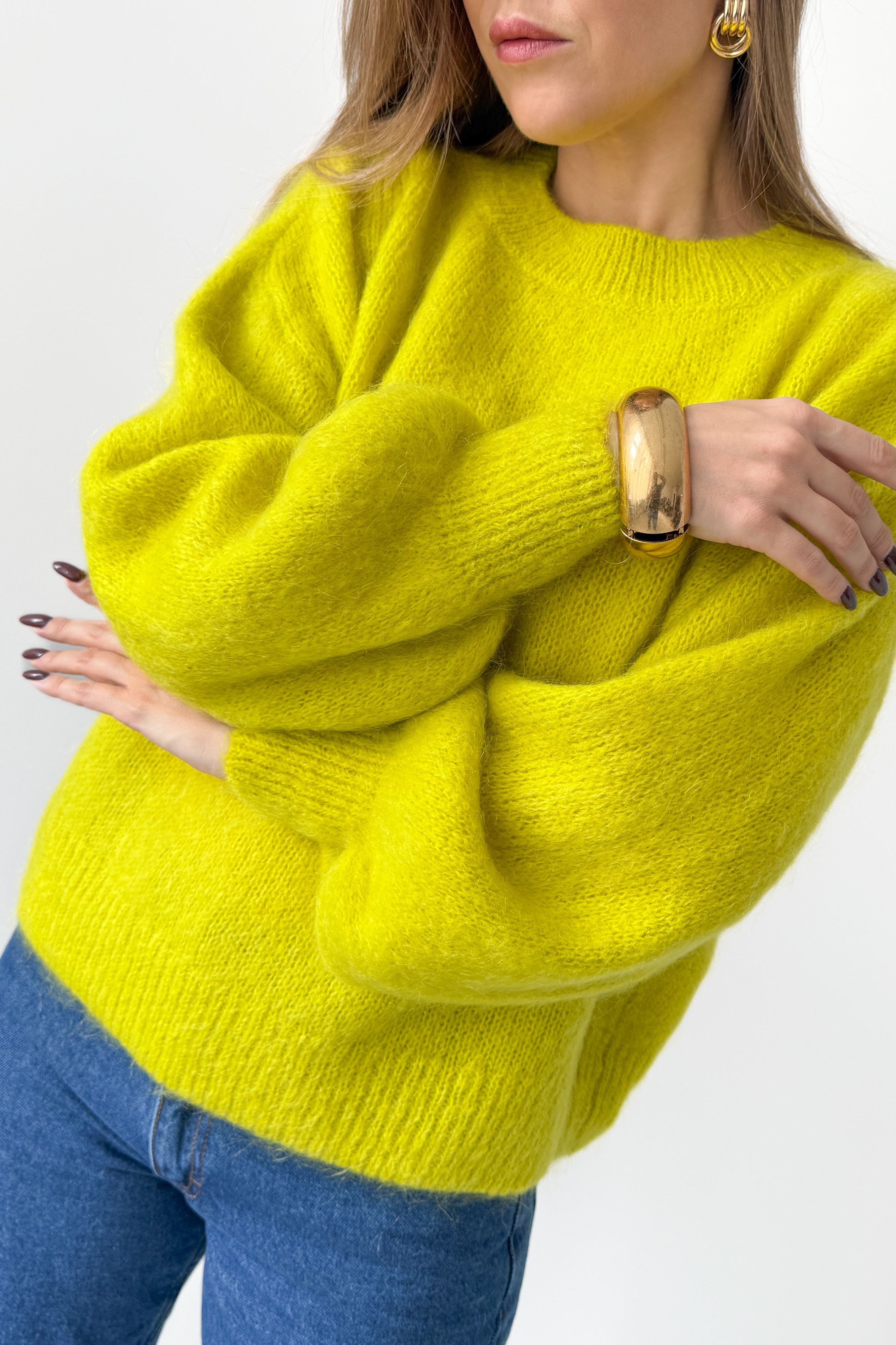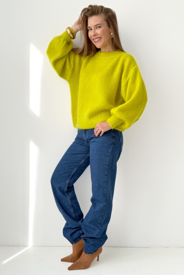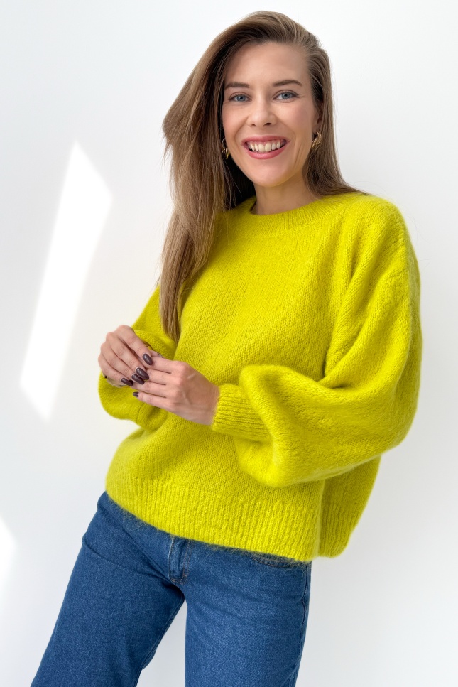 Eva is a classic sweater with subtly puffed sleeves that combines simplicity of form with elegant details. Made from natural yarn with added kid mohair, mohair, and wool, it delights with its softness, lightness, and pleasant warmth. Its timeless design makes it a perfect match for jeans, elegant trousers, or a skirt – it's a sweater that always looks stylish.