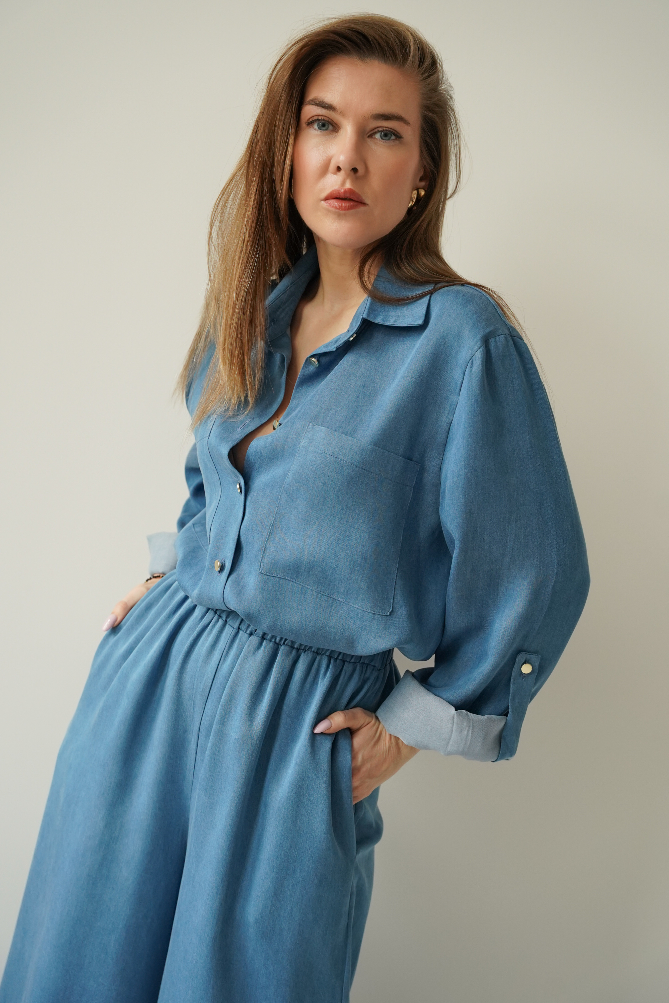 Minimalist denim set, 100% Tencel, Chloe mid denim blue