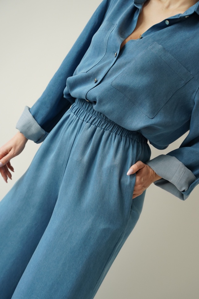 The set is a stylish combination of modern design with the highest wearing comfort. Made of 100% lightweight, airy tencel, which perfectly imitates denim, providing extraordinary softness and pleasure of use.