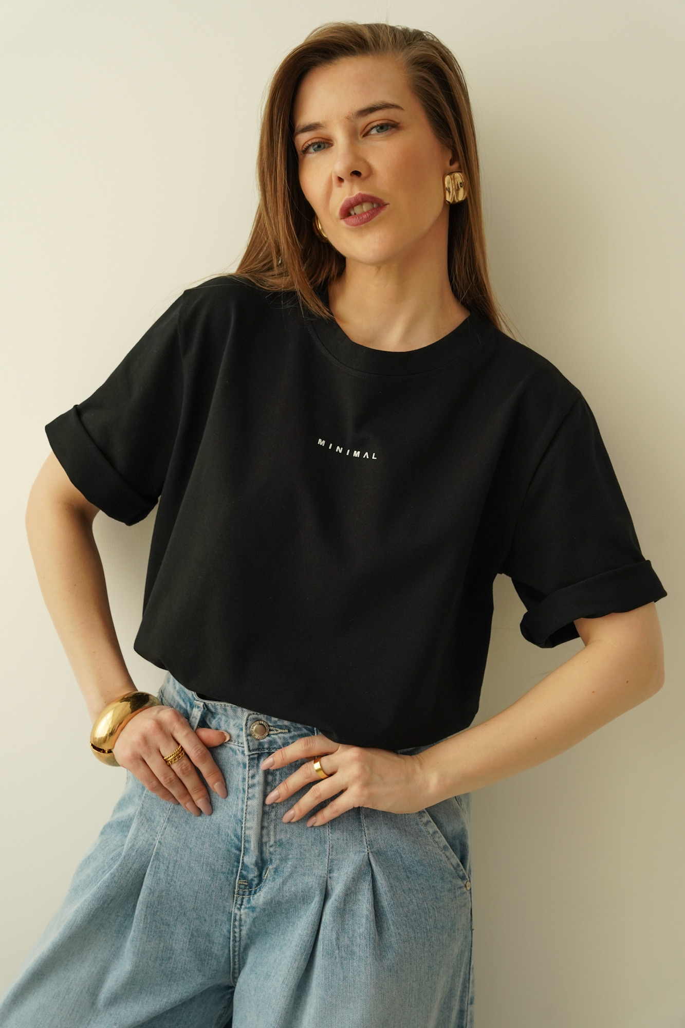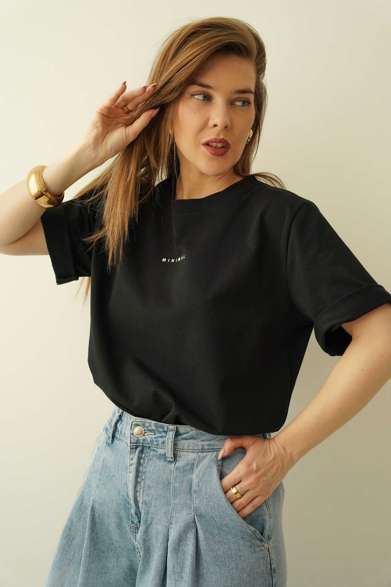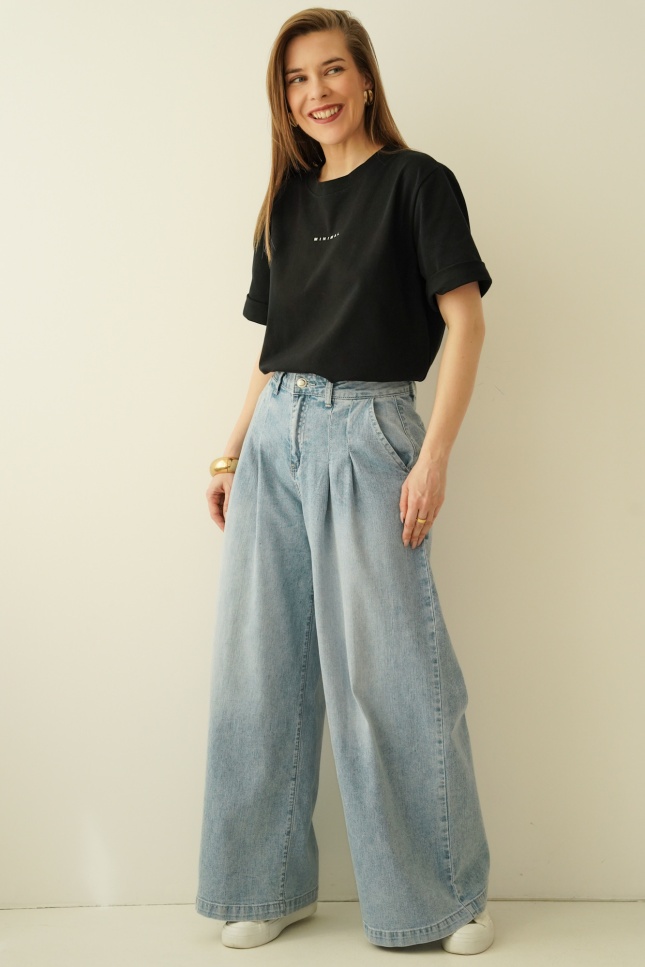 Its minimalist design makes it an indispensable closet base - it will work well in casual, urban styling, as well as in fashionable smart casual combinations. Combining it with wide palazzo pants, a denim midi skirt or classic cigarette pants, you will get a fresh, trendy look. On colder days, it will go great under an oversize blazer or denim jacket.