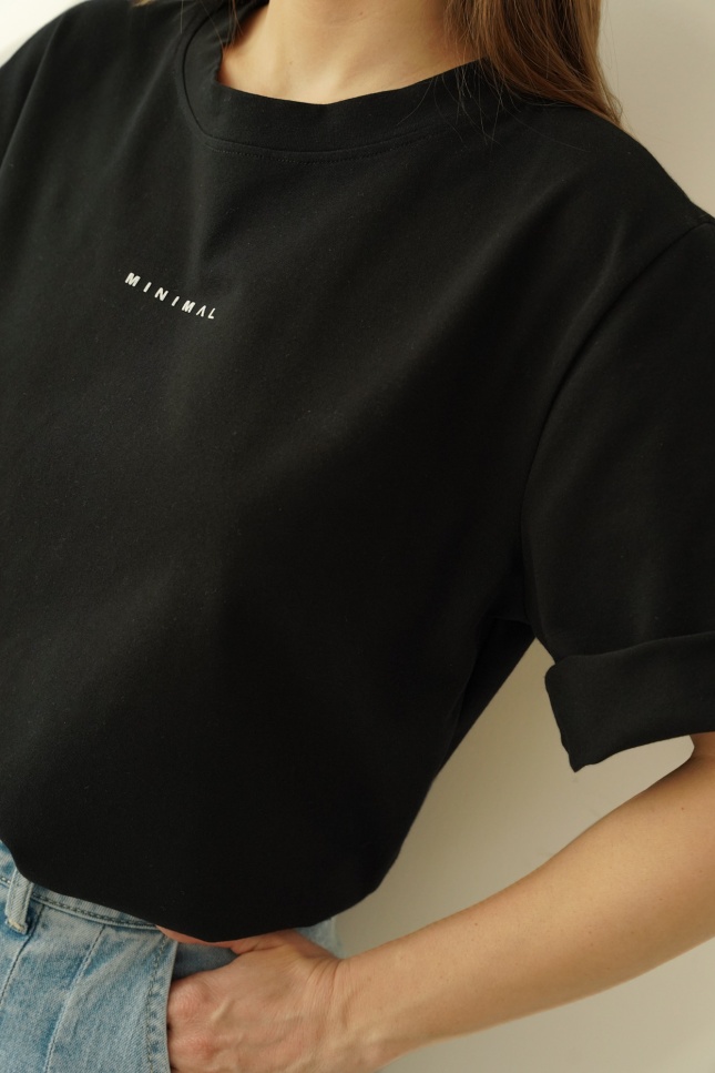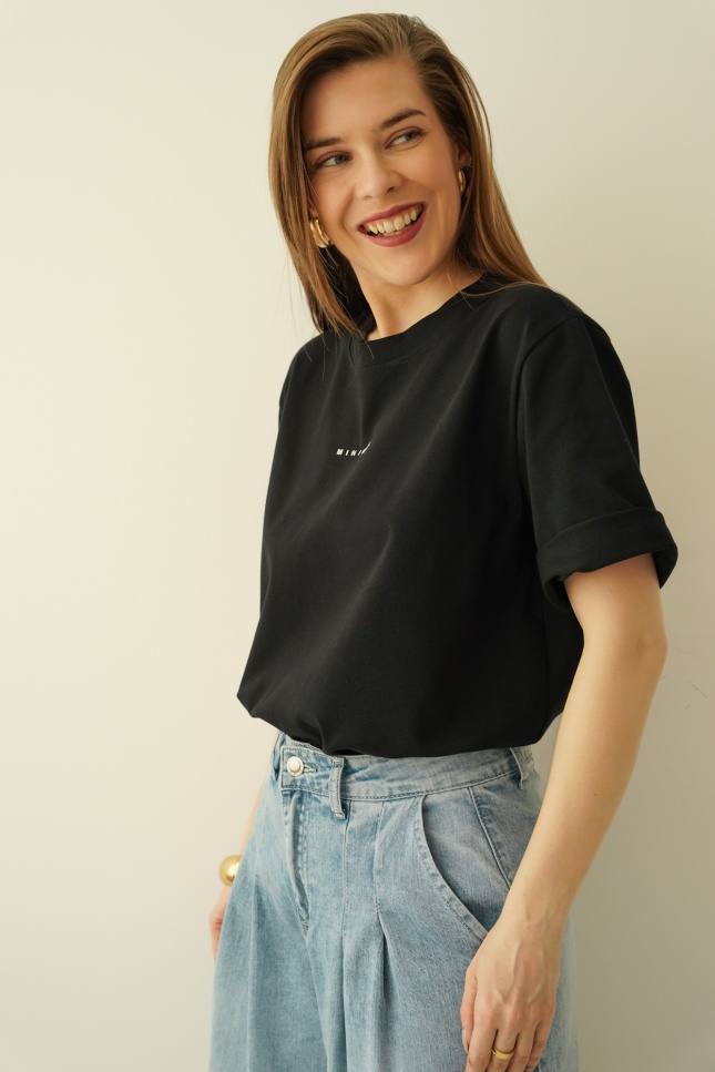 A classic basic t-shirt with a minimalist print is the essence of modern simplicity. Made of soft, delicate cotton with a subtle addition of elastane, it fits perfectly to the silhouette, ensuring comfortable all-day wear.