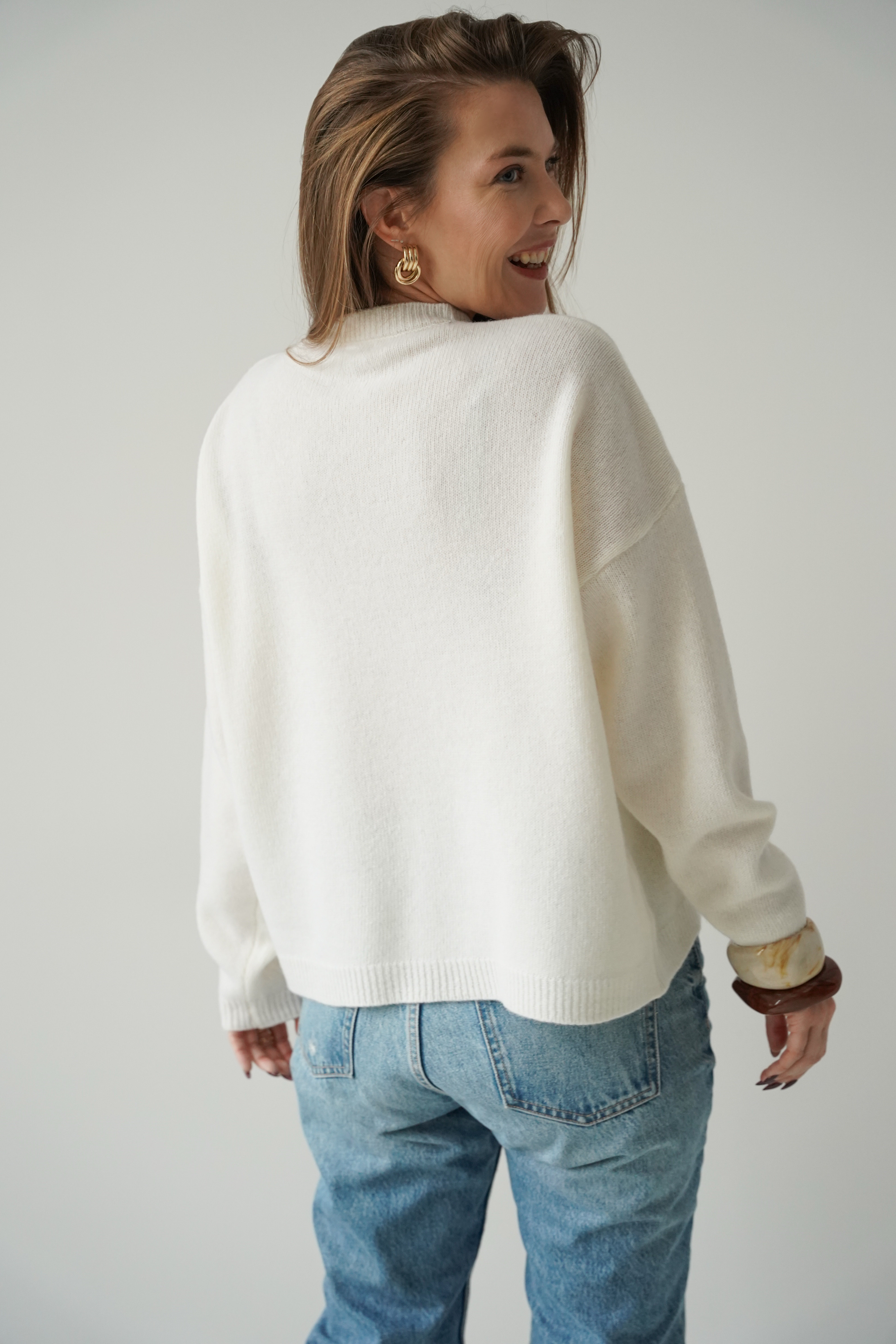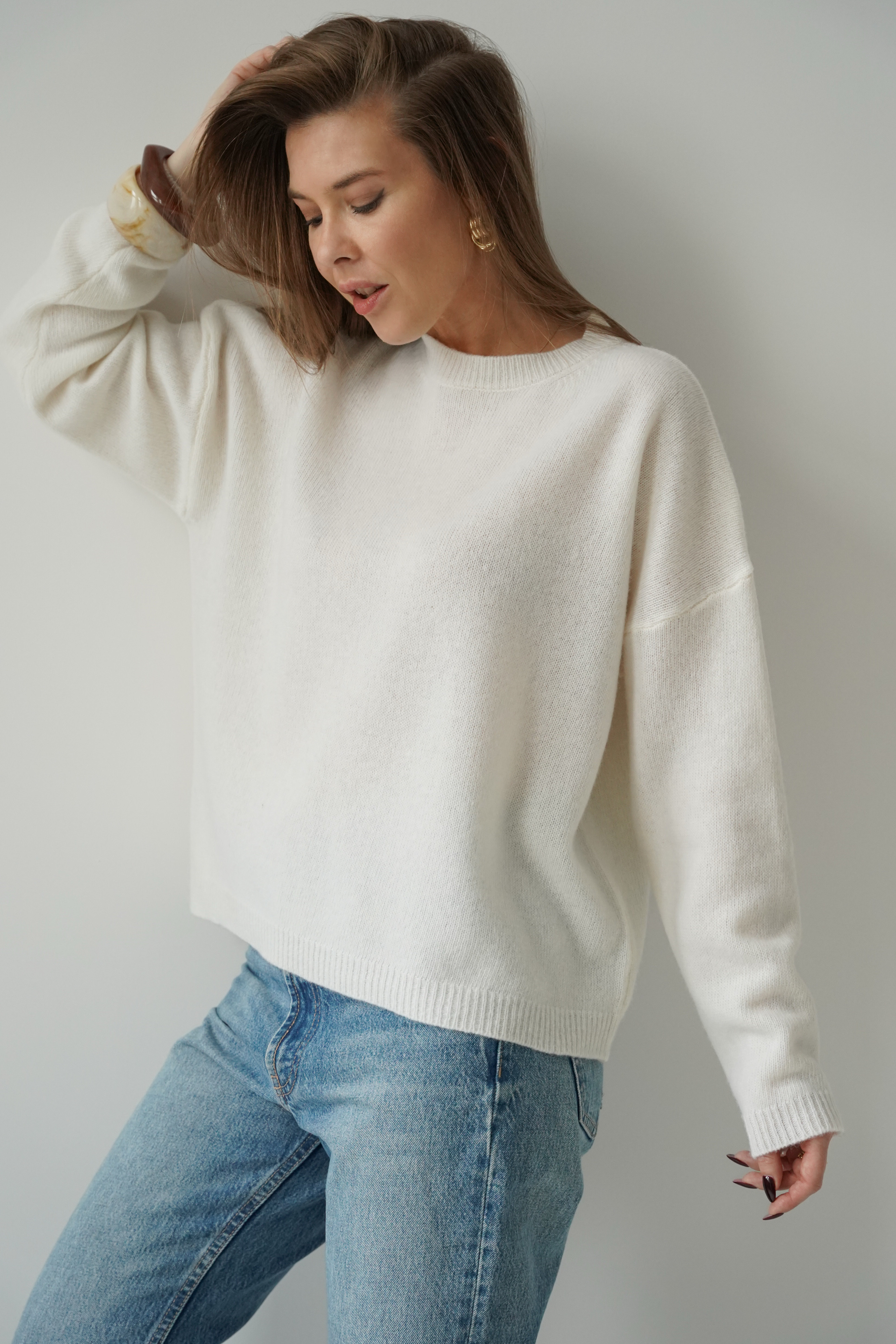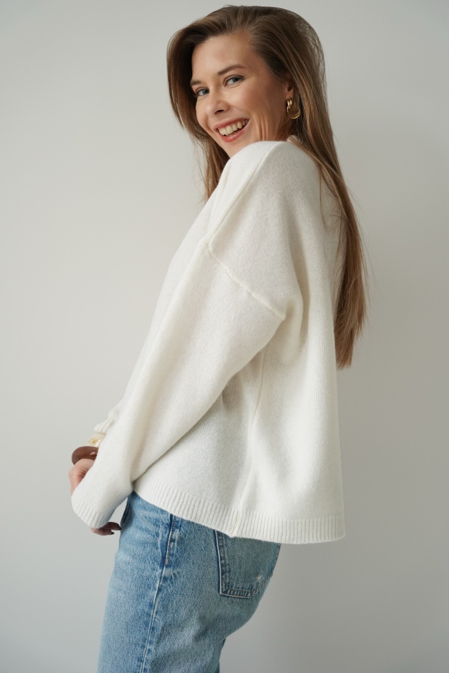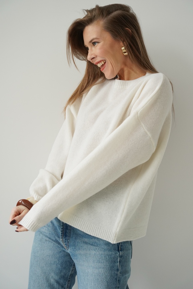 Loose jumper, 100% merino wool, Lea, cream