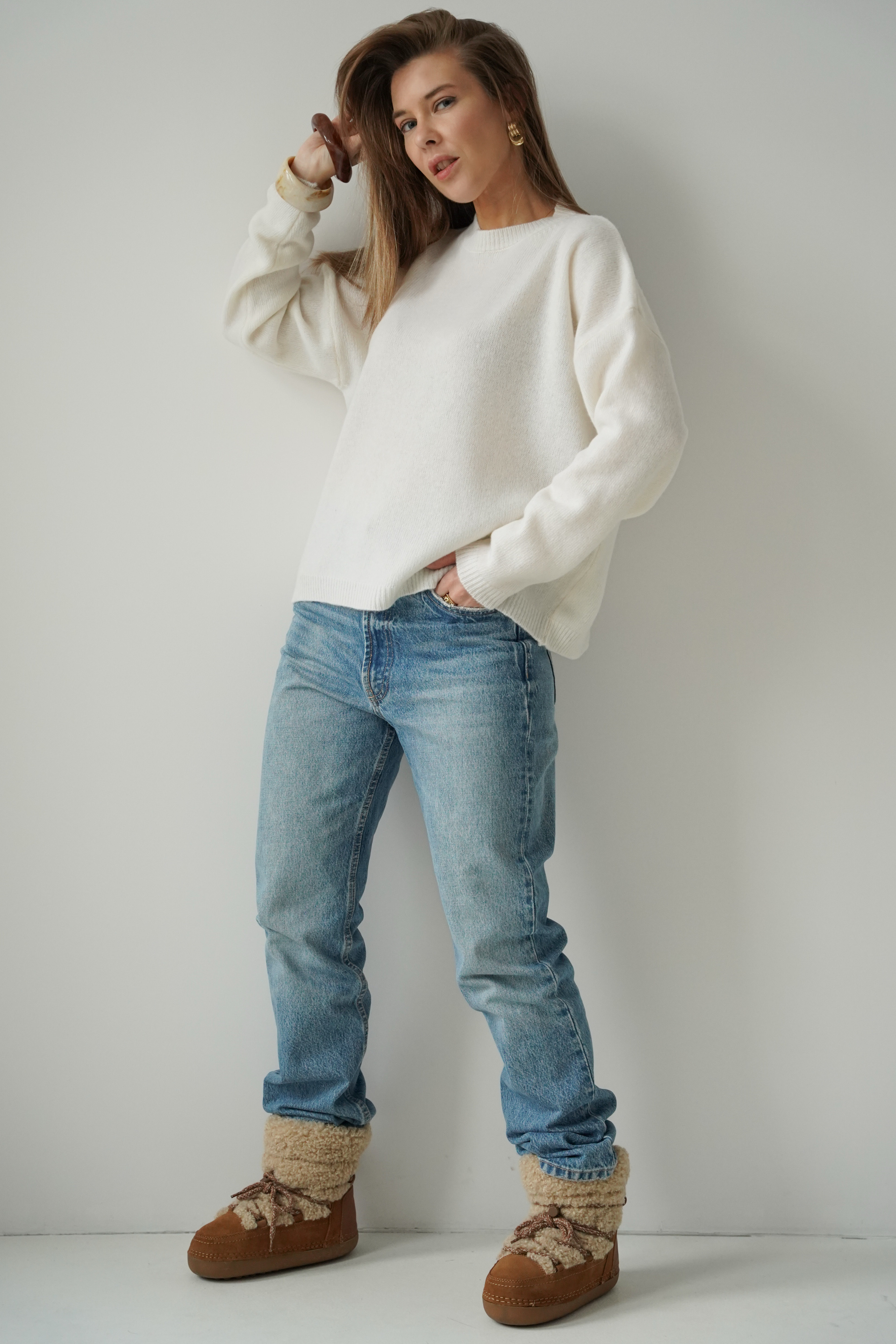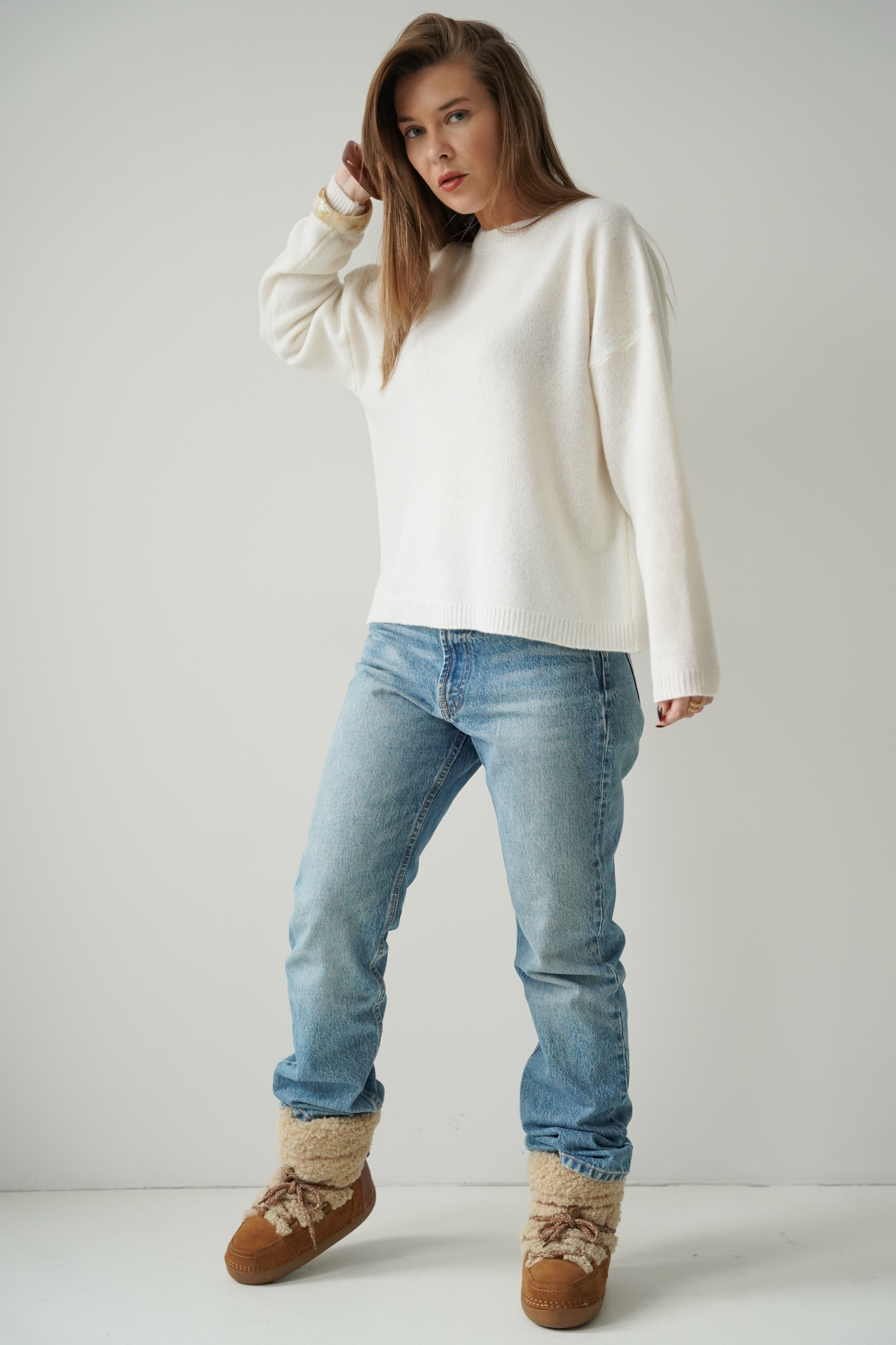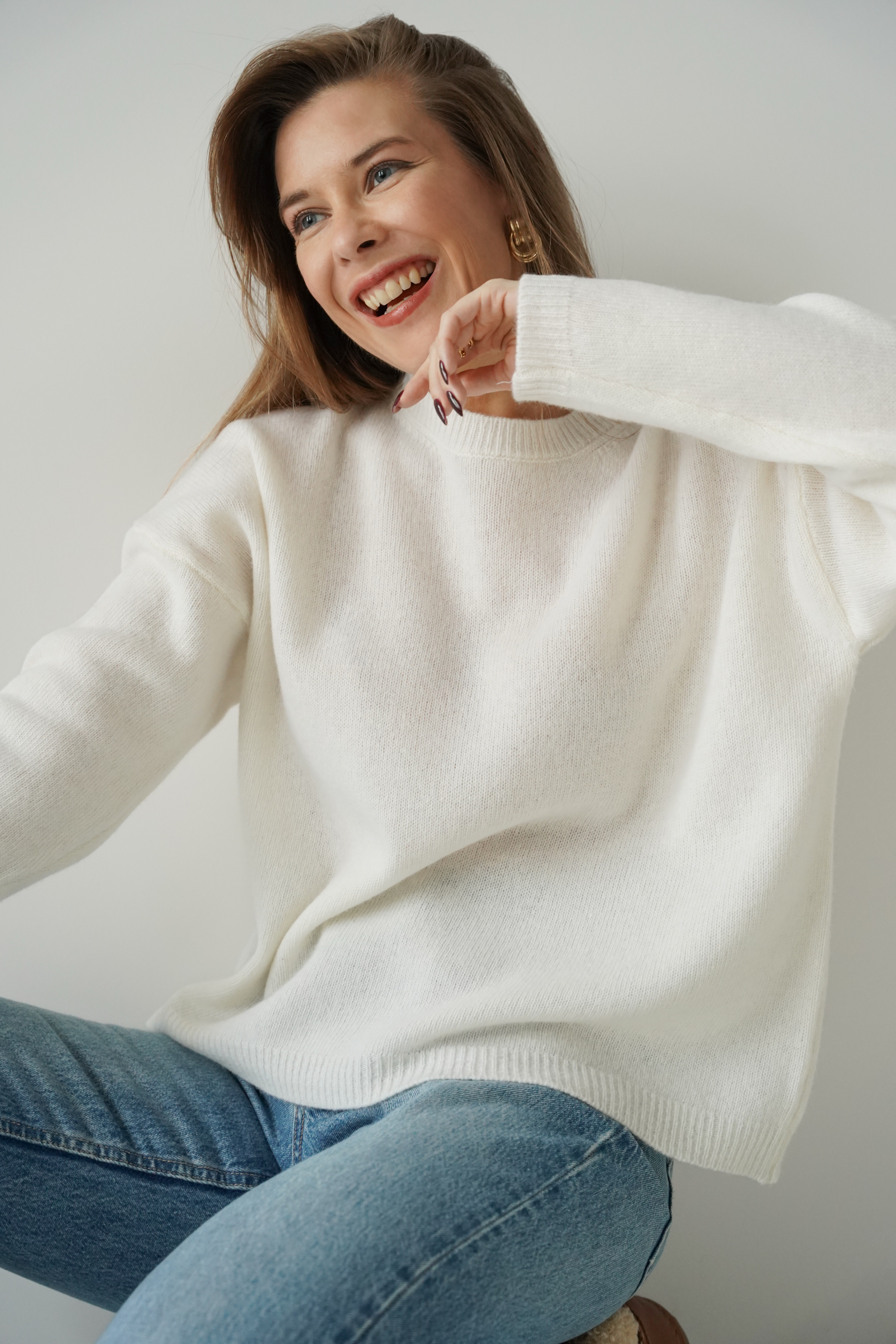 Loose jumper, 100% merino wool, Lea, cream
