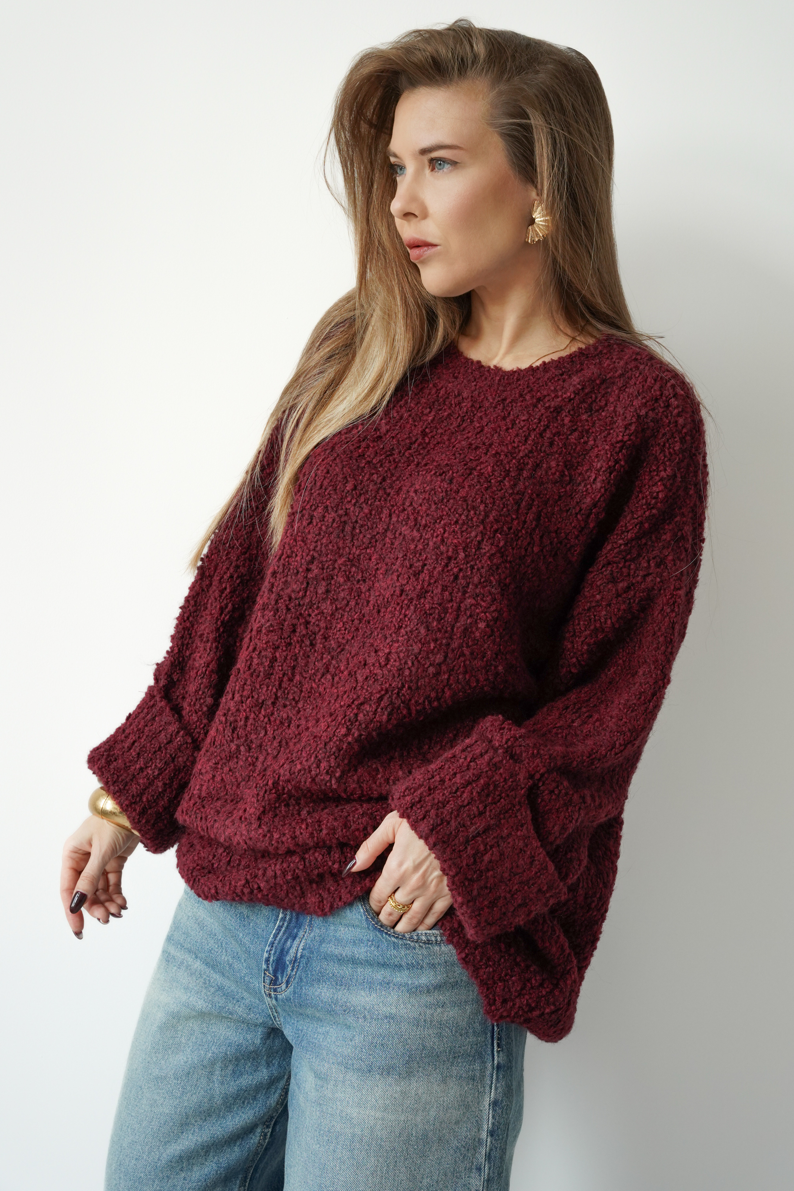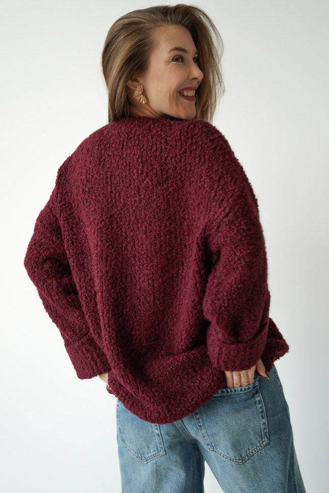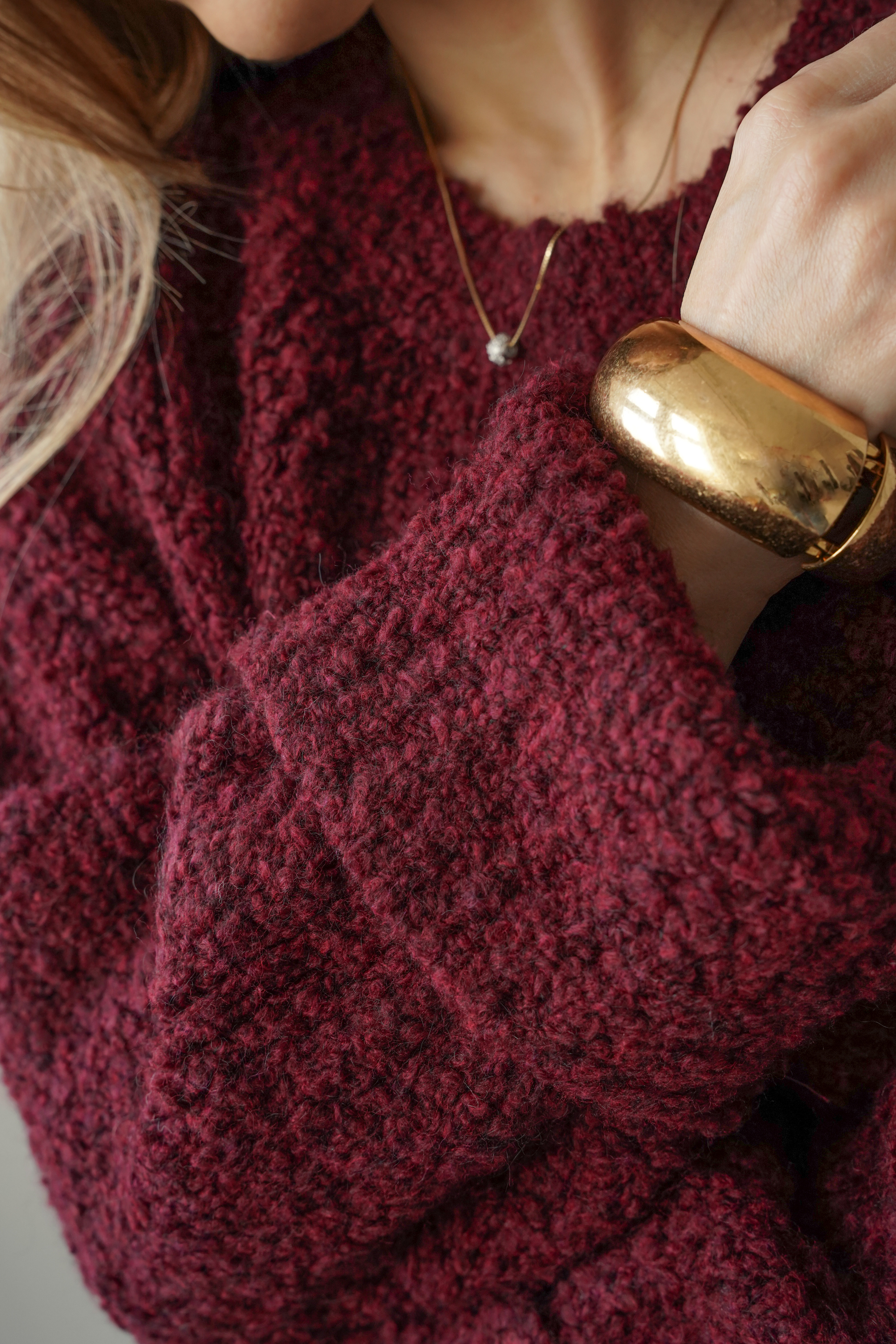 ‘NORDEN’ is an oversized sweater with a longer cut, made of unique bouclé yarn, which gives it fluffiness and softness. Its rolled-up sleeves with cuffs add nonchalance and lightness. This model is inspired by Scandinavian minimalism – warm, comfortable and full of subtle elegance. Perfect for everyday wear, in the spirit of quiet luxury.