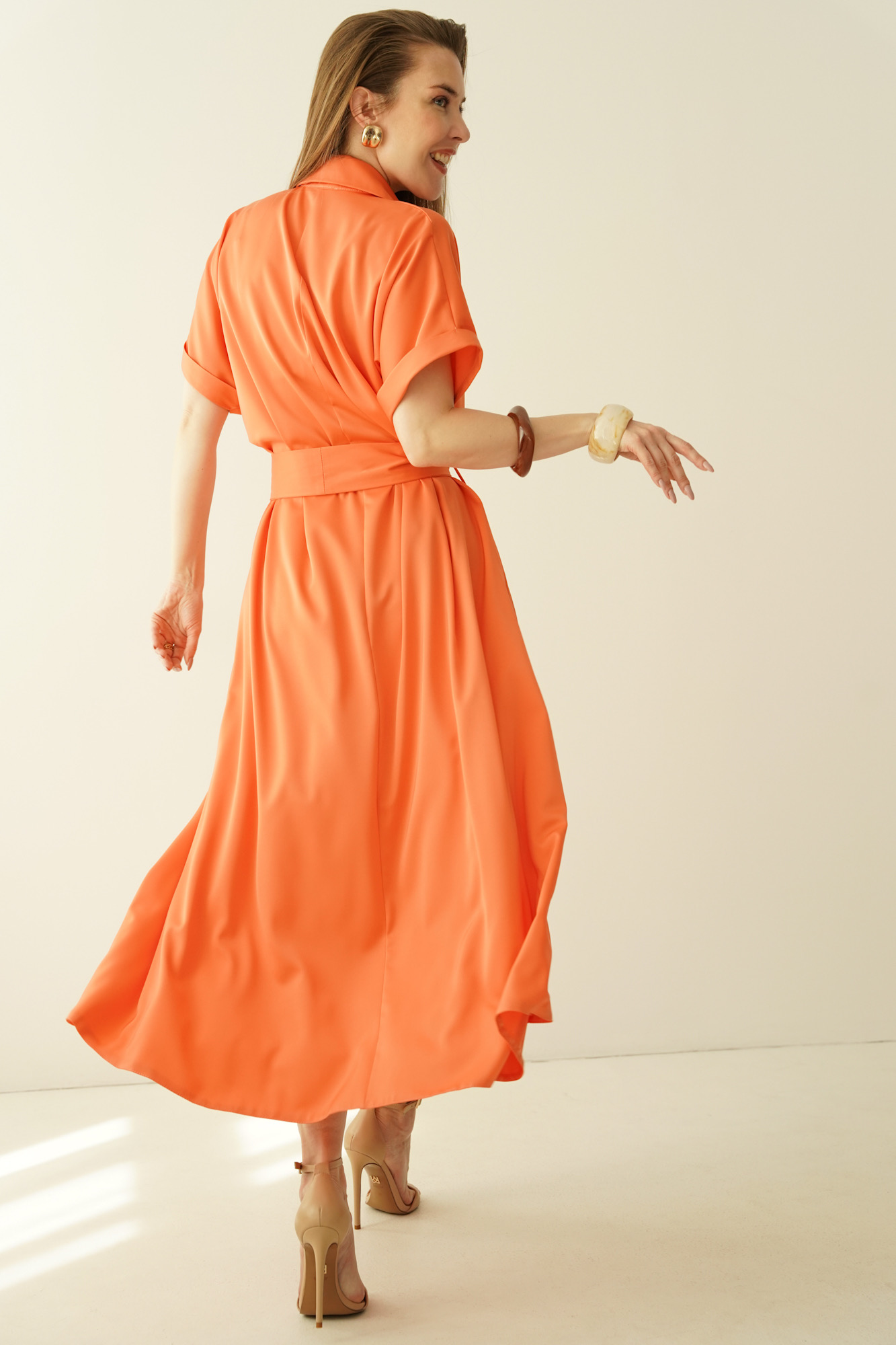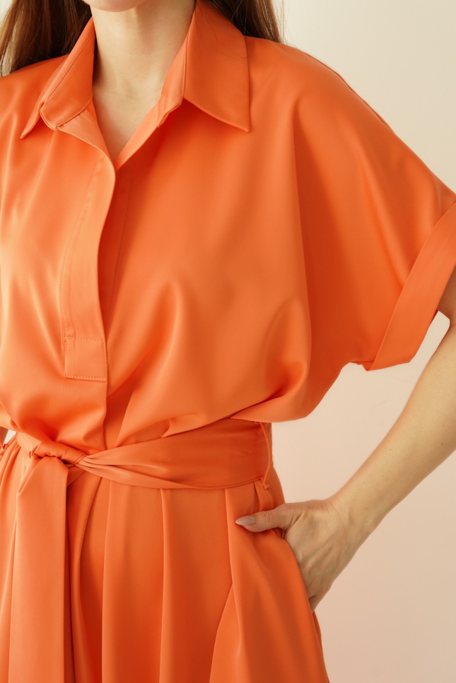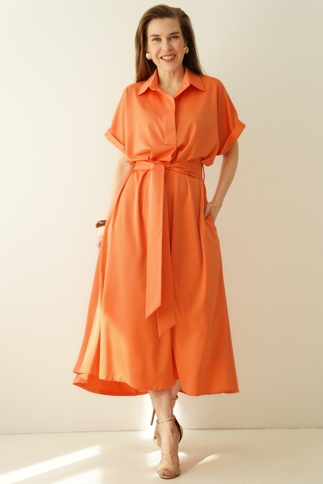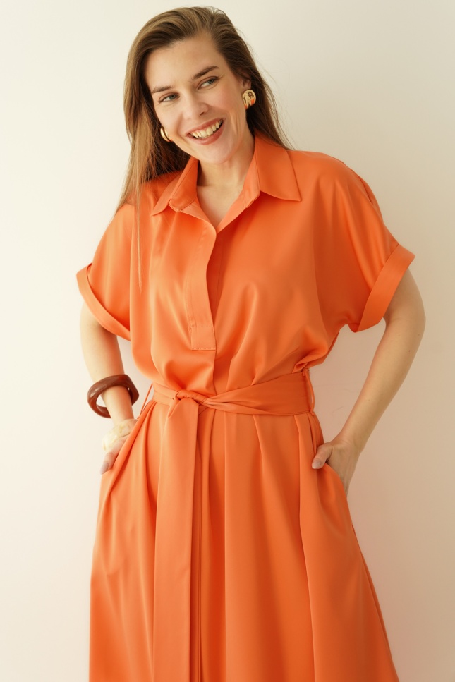 Loose smart casual dress with collar Elan papaya