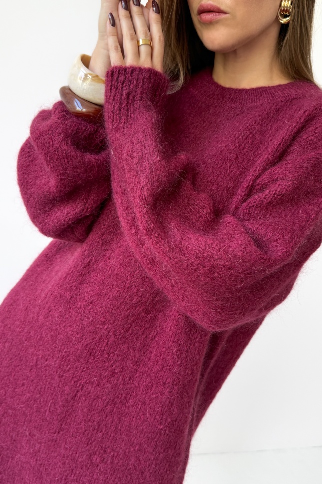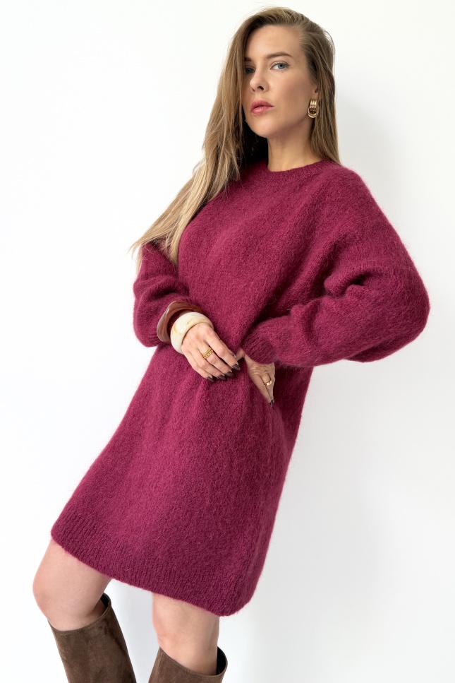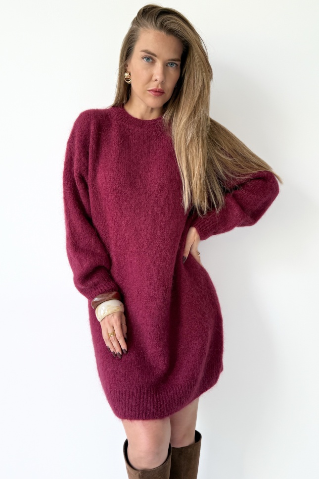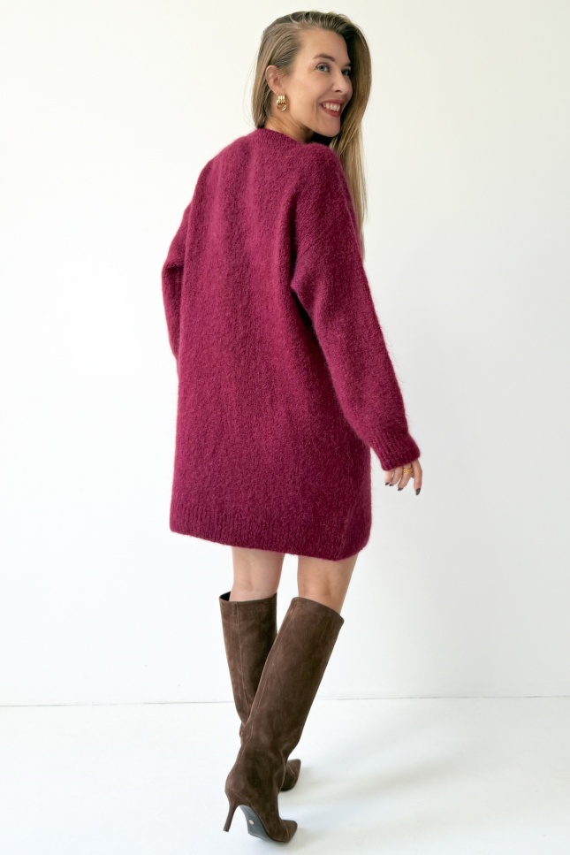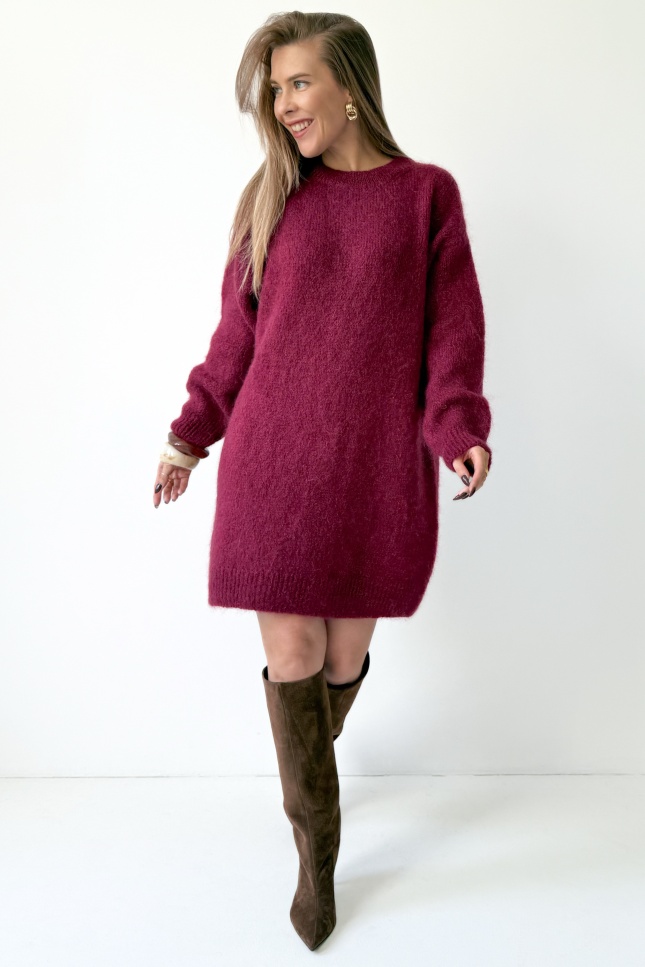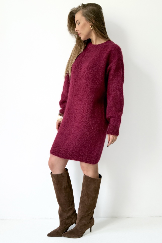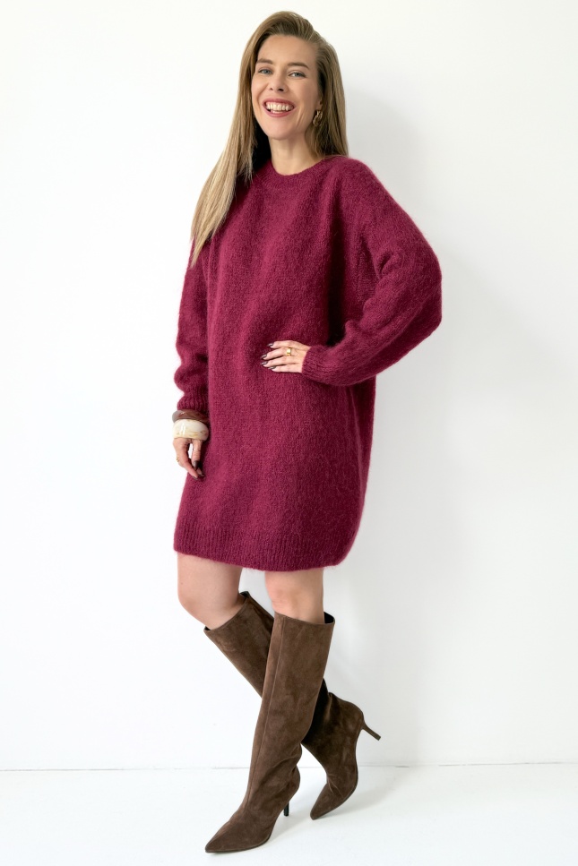 Loose sweater tunic dress with kid mohair Sophia burgundy