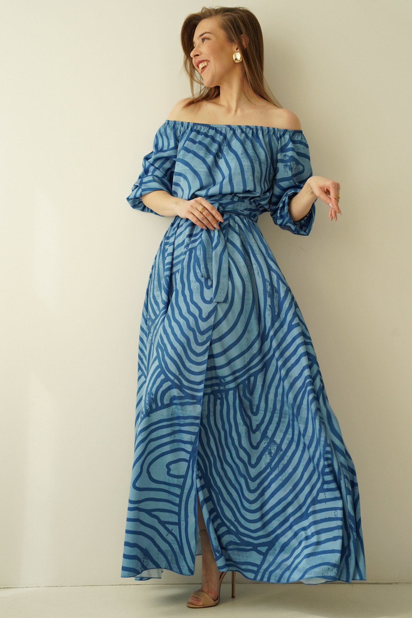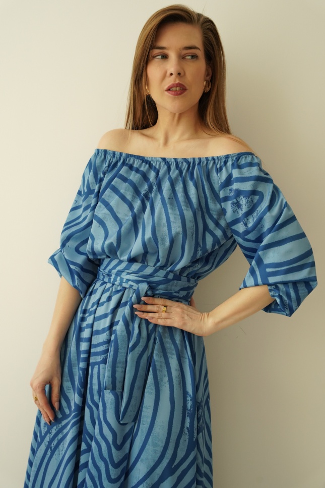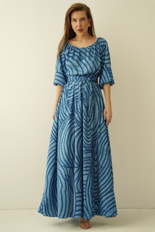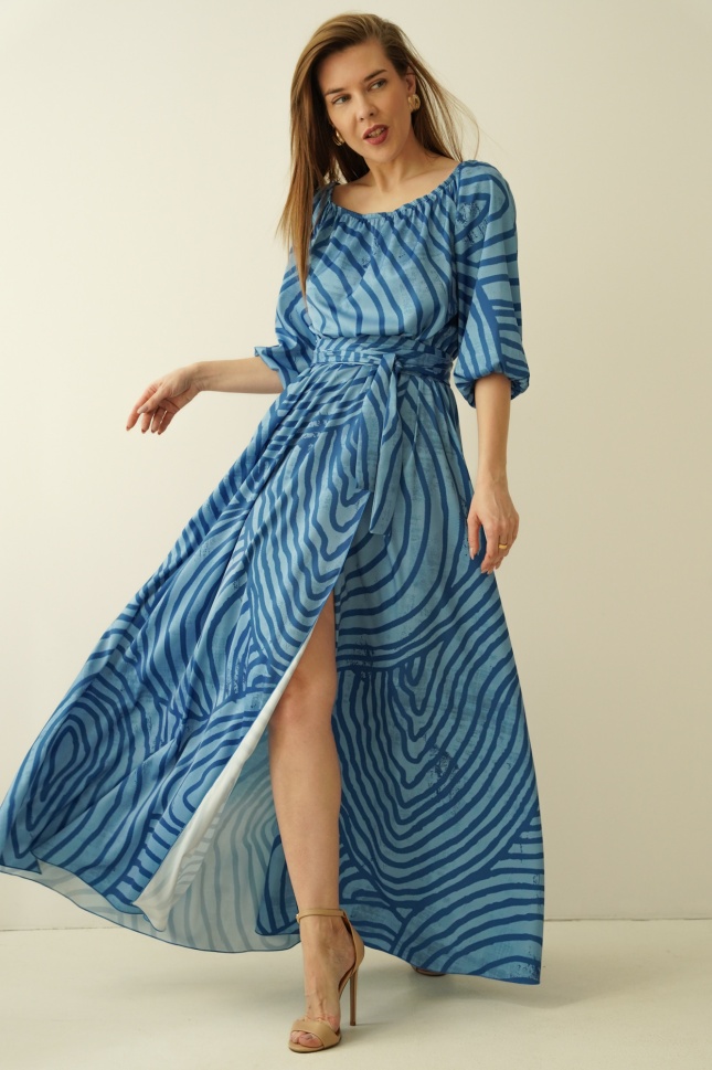Tie at the waist with a drawstring allows for a perfect fit to the figure, and the flared, enveloping hem gently exposes the leg with each step, creating a feeling of lightness and freedom. Made of the highest quality material - a blend of 90% viscose and 10% silk - the dress wraps the body like a breeze of warm wind, providing comfort and a subtle silky sheen.