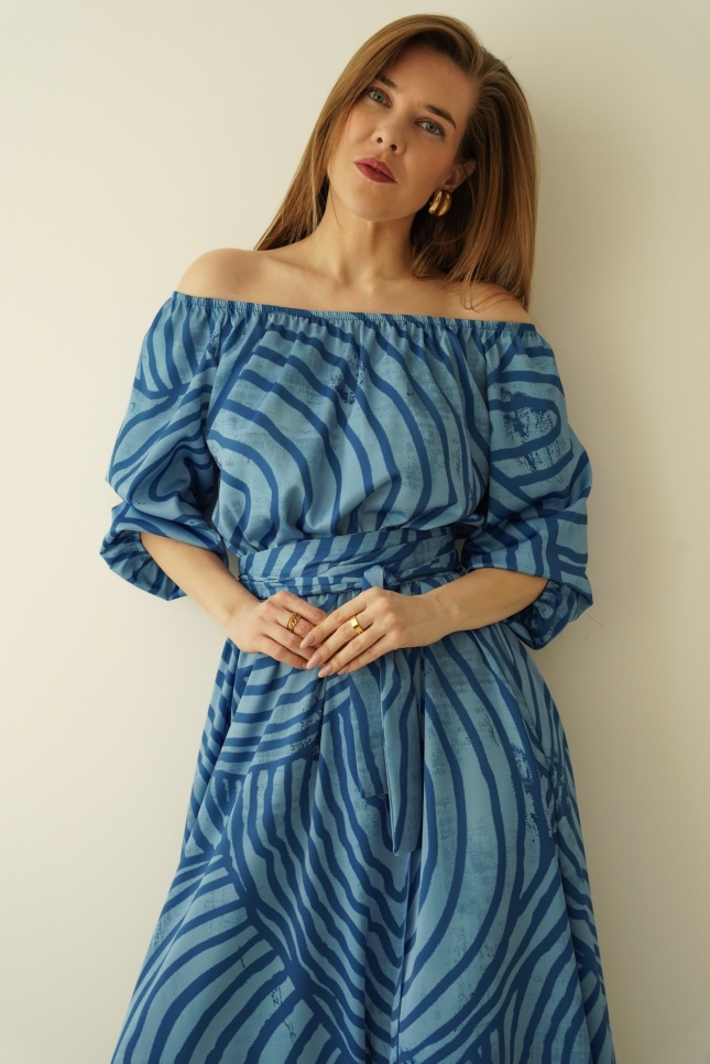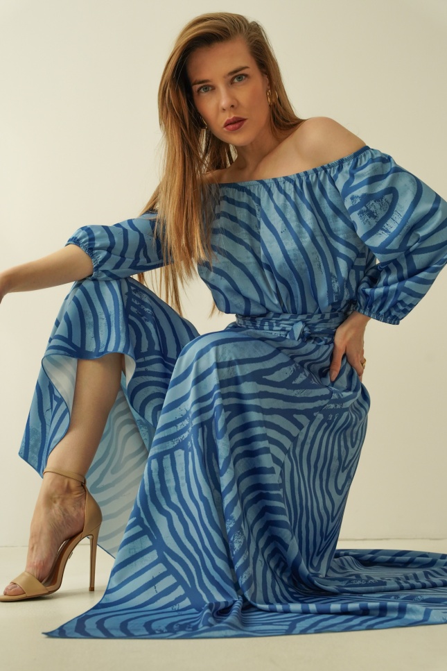 The “Carmen” dress is the quintessence of femininity and southern temperament, enclosed in a light, luxurious form. The carmen cut with open shoulders beautifully exposes the neckline and neckline, adding a sensual, romantic touch.