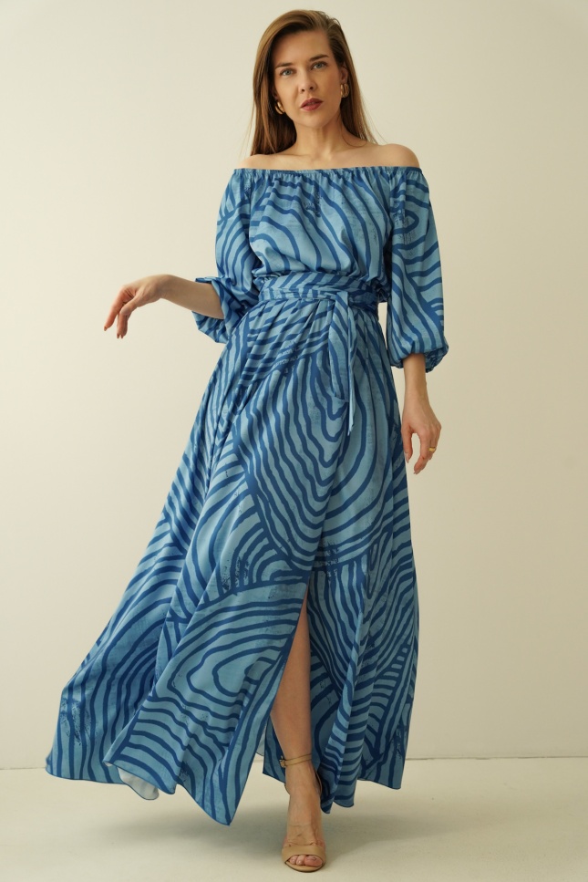 Maxi spangled dress with slit Carmen contour blue