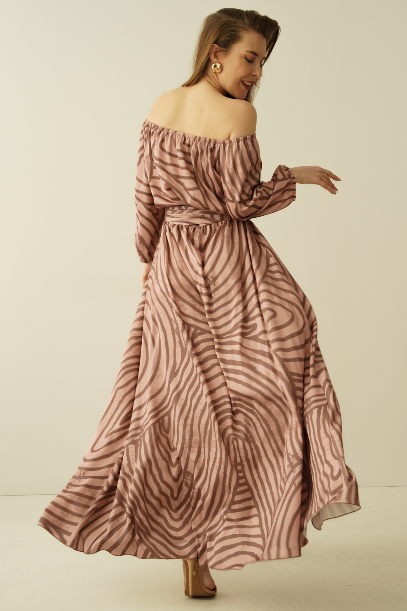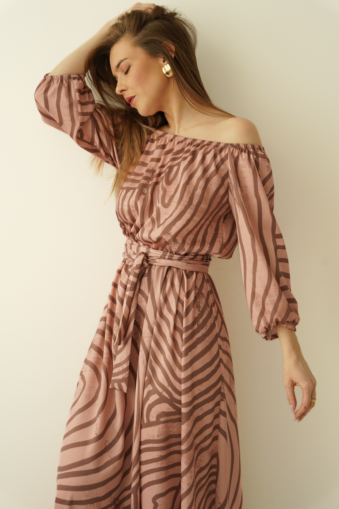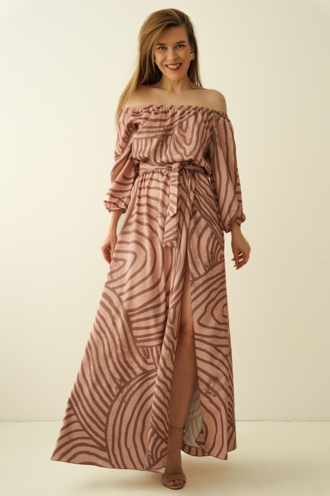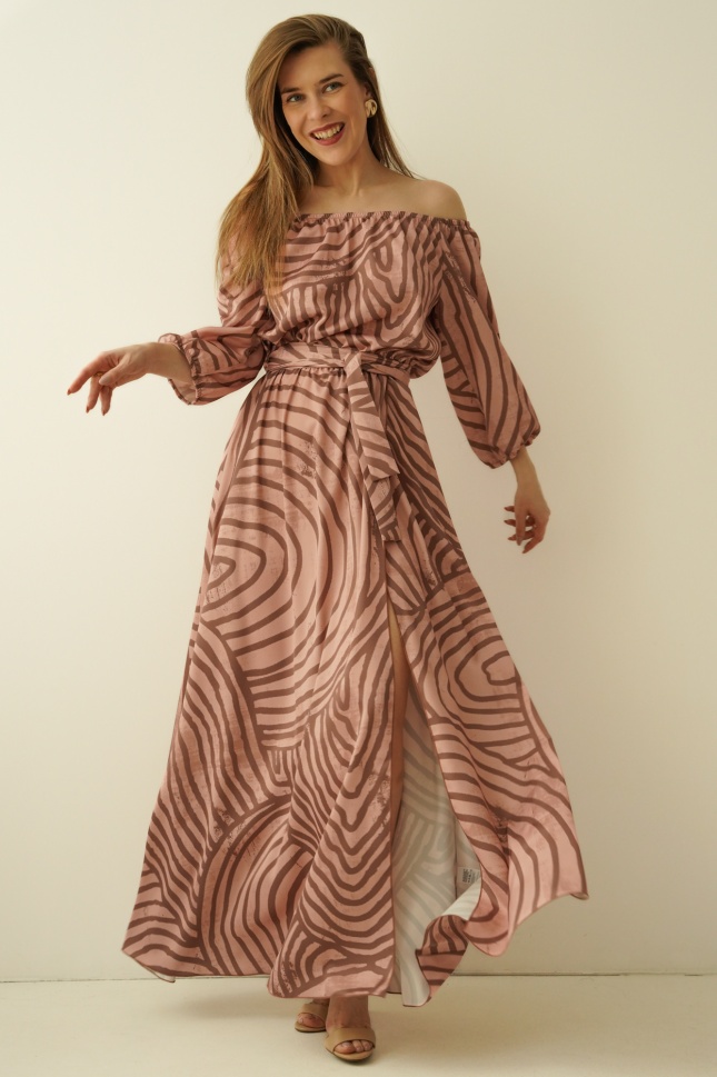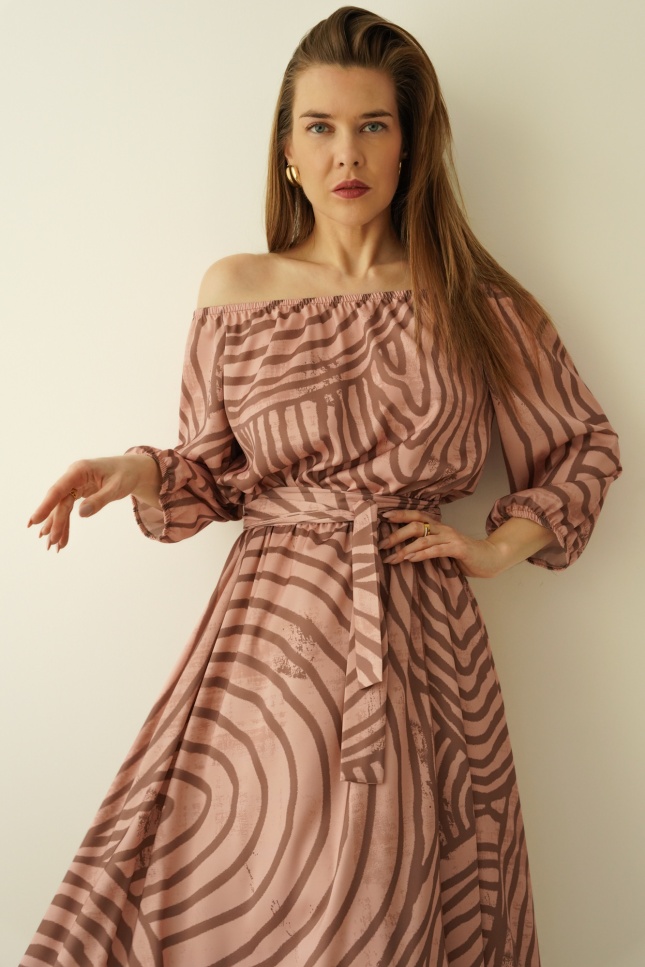 The “Carmen” dress is the quintessence of femininity and southern temperament, enclosed in a light, luxurious form. The carmen cut with open shoulders beautifully exposes the neckline and neckline, adding a sensual, romantic touch.
