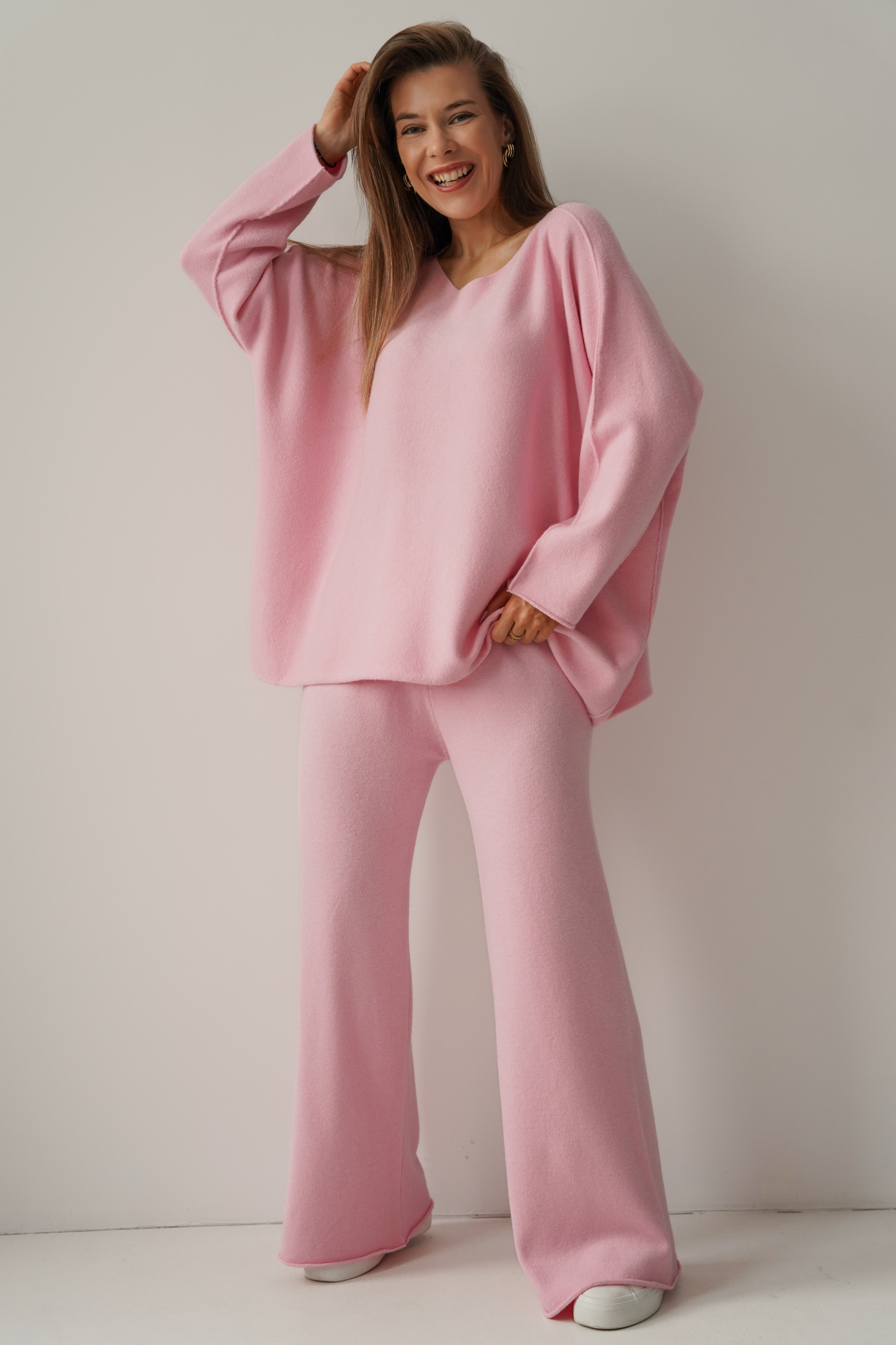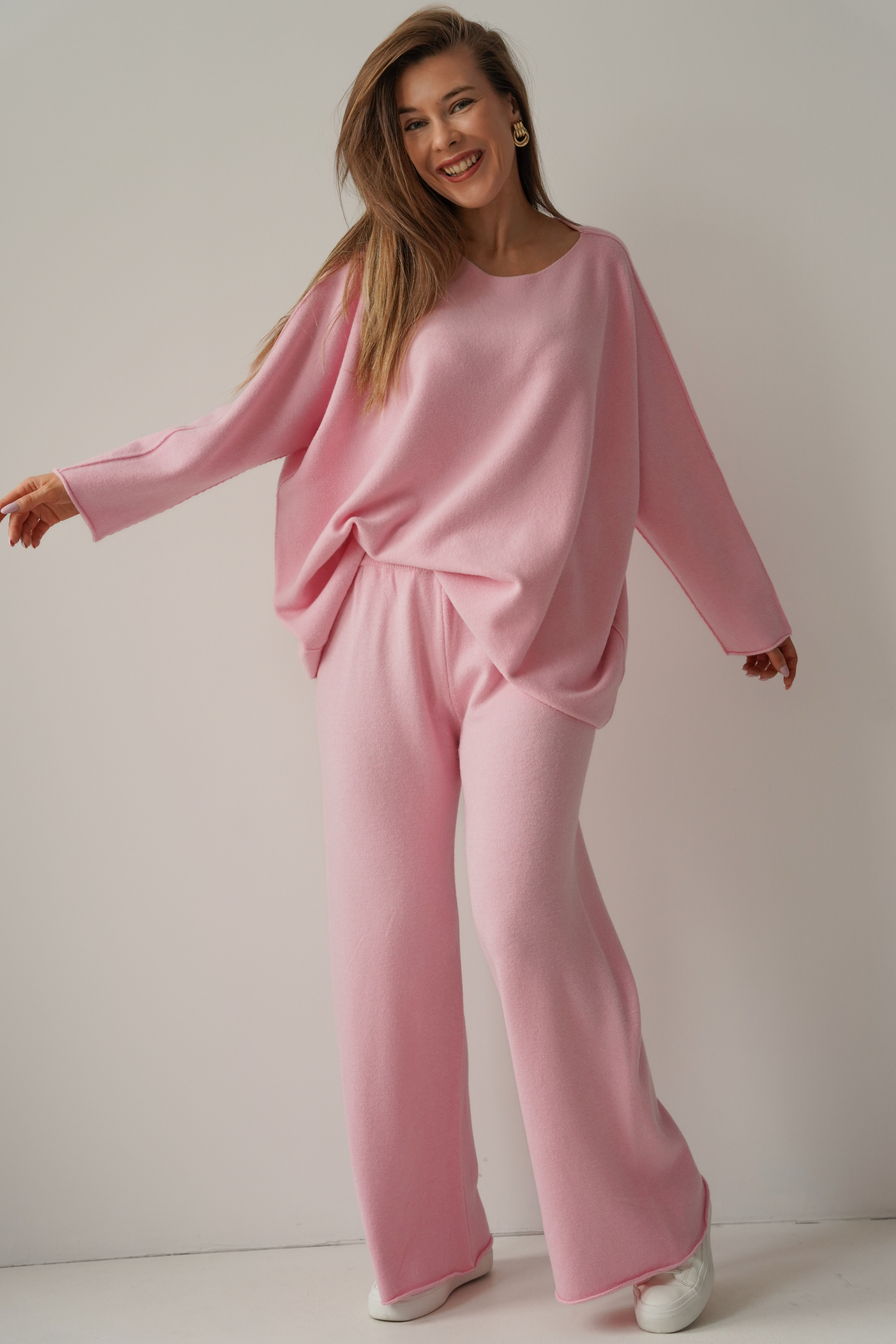 Comfy is a set that our customers love – a loose, boxy sweater and wide-leg pants make the perfect everyday duo. Made of soft 70% viscose knit fabric, it envelops you in comfort while maintaining elegant simplicity.