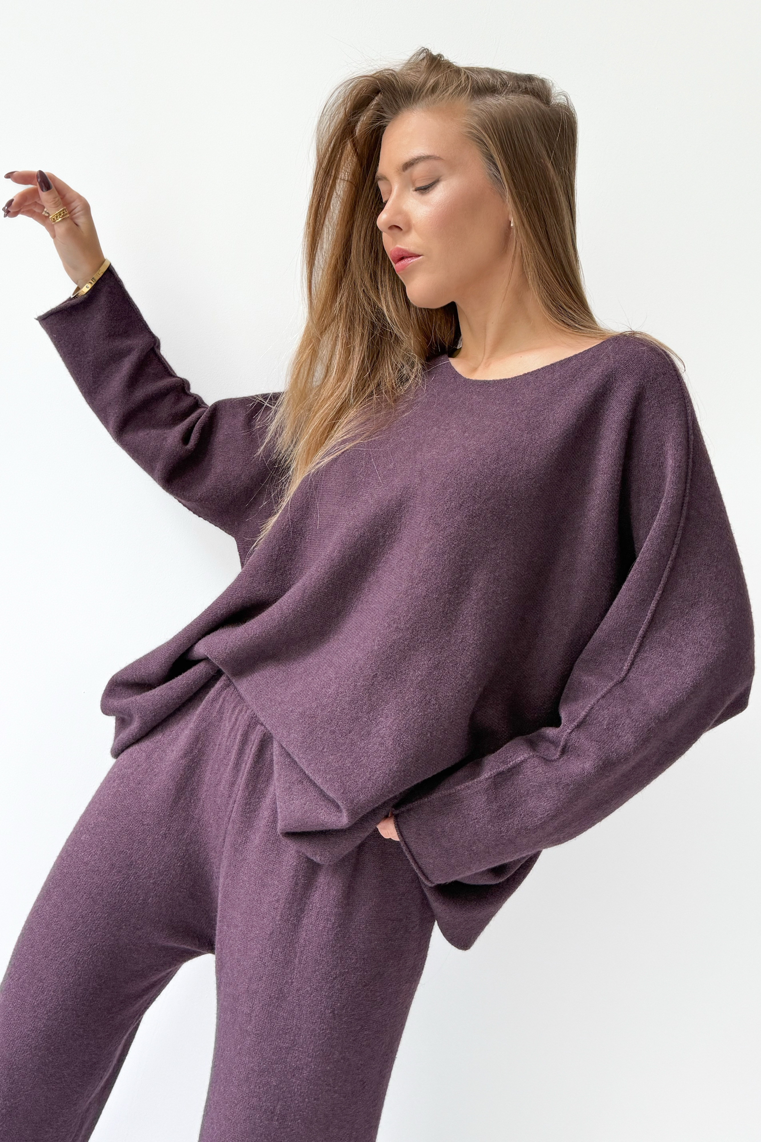 Comfy is a set that our customers love – a loose, boxy sweater and wide-leg pants make the perfect everyday duo. Made of soft 70% viscose knit fabric, it envelops you in comfort while maintaining elegant simplicity.