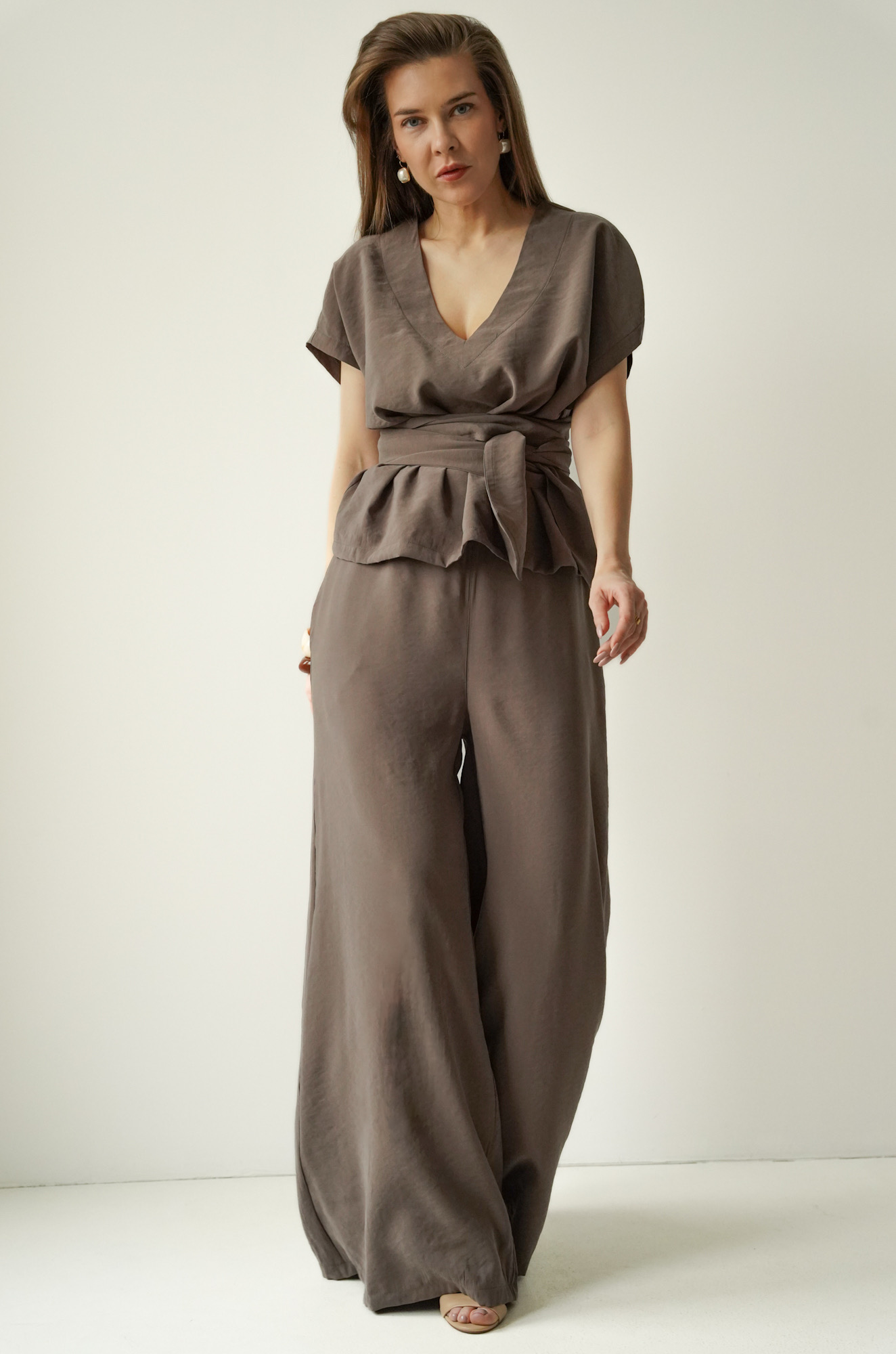 Minimalistic set with wide trousers Sonia mocca