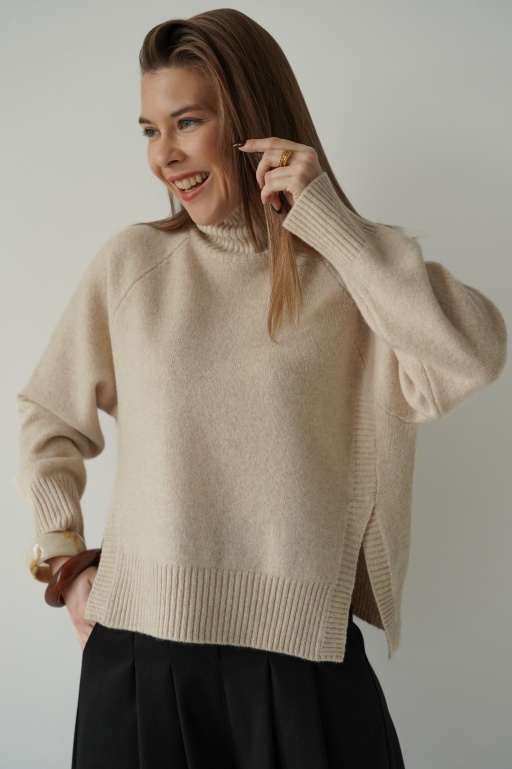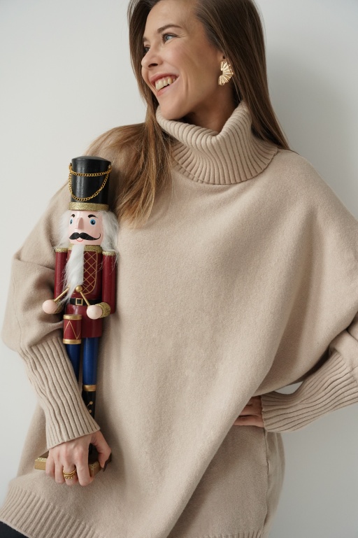 Classic loose turtleneck 100% merino wool Soften cappuccino