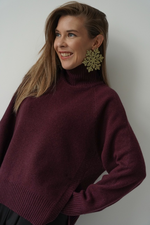 Loose boxy turtleneck 100% merino wool Lume Marsala