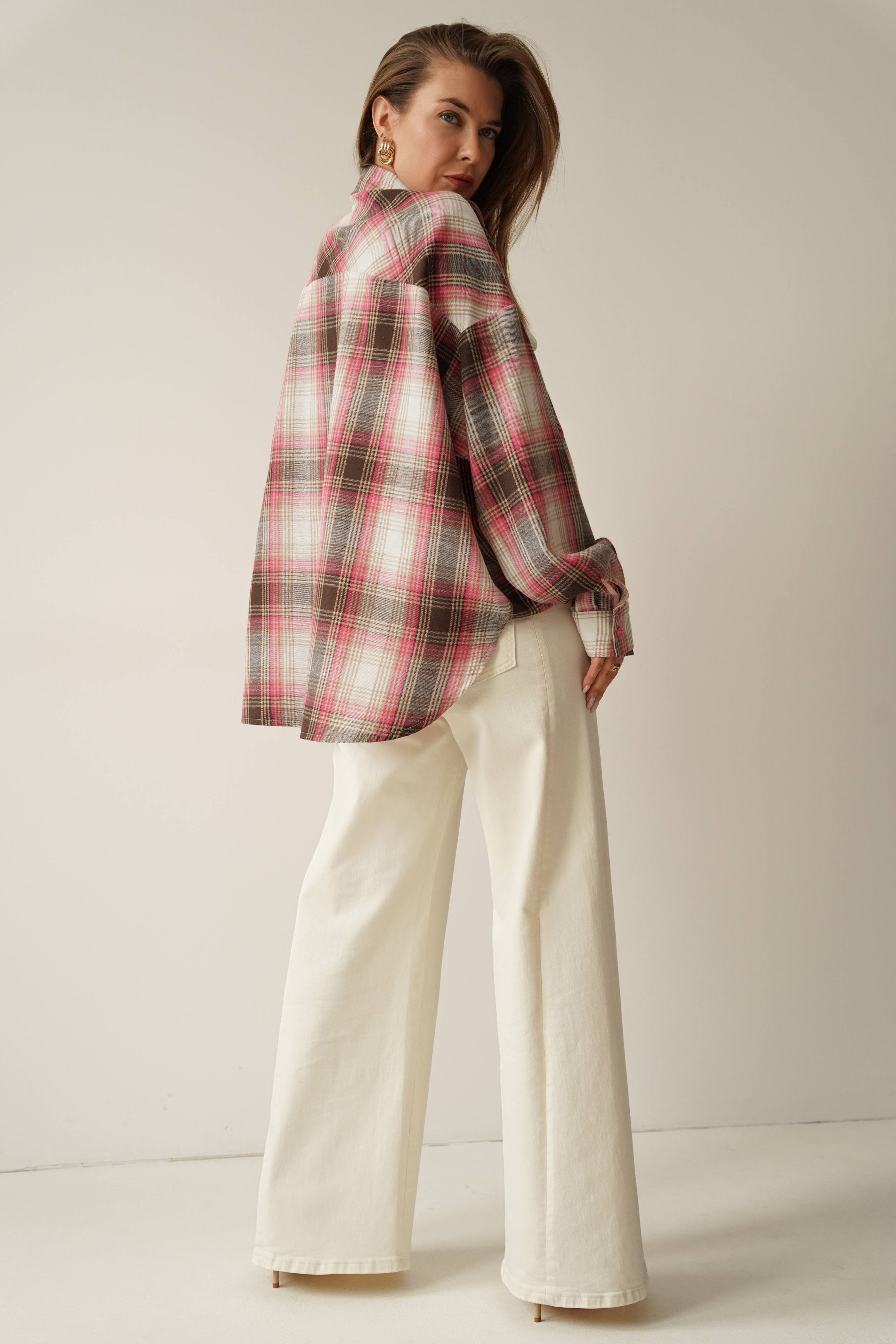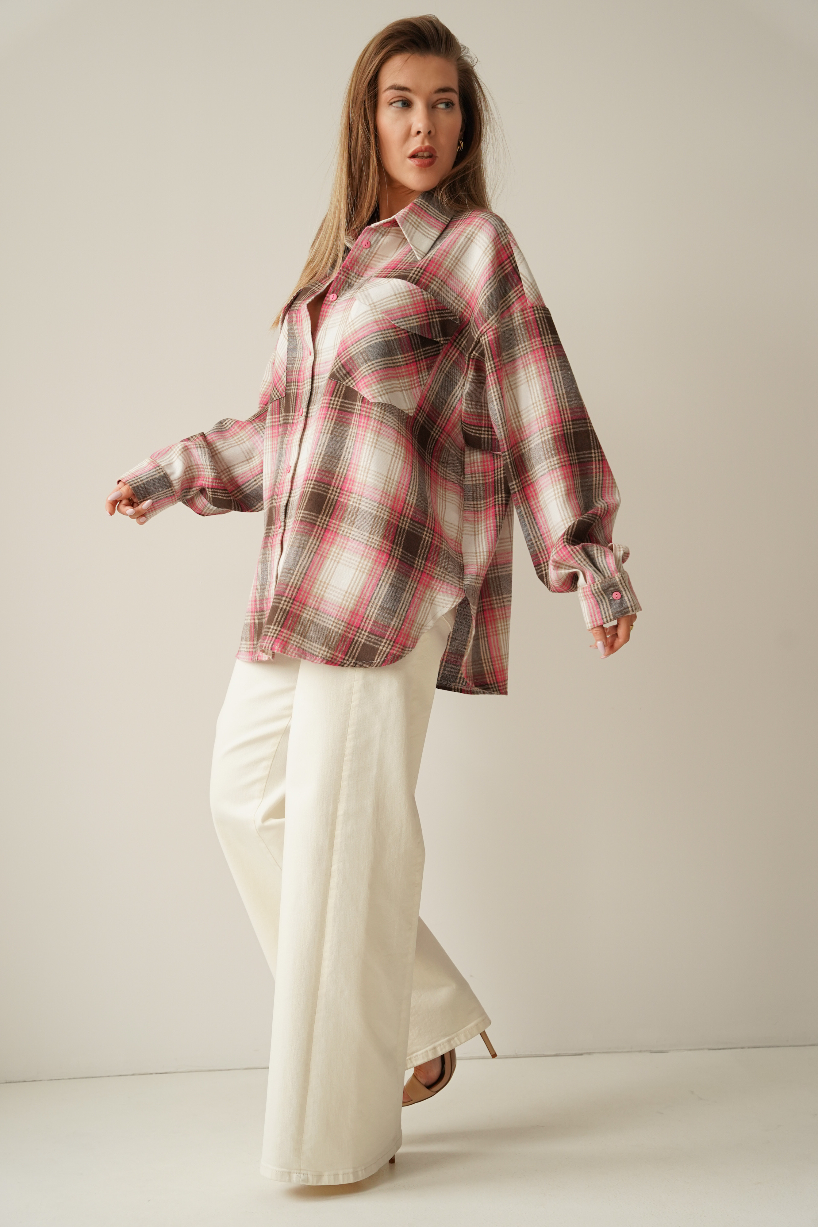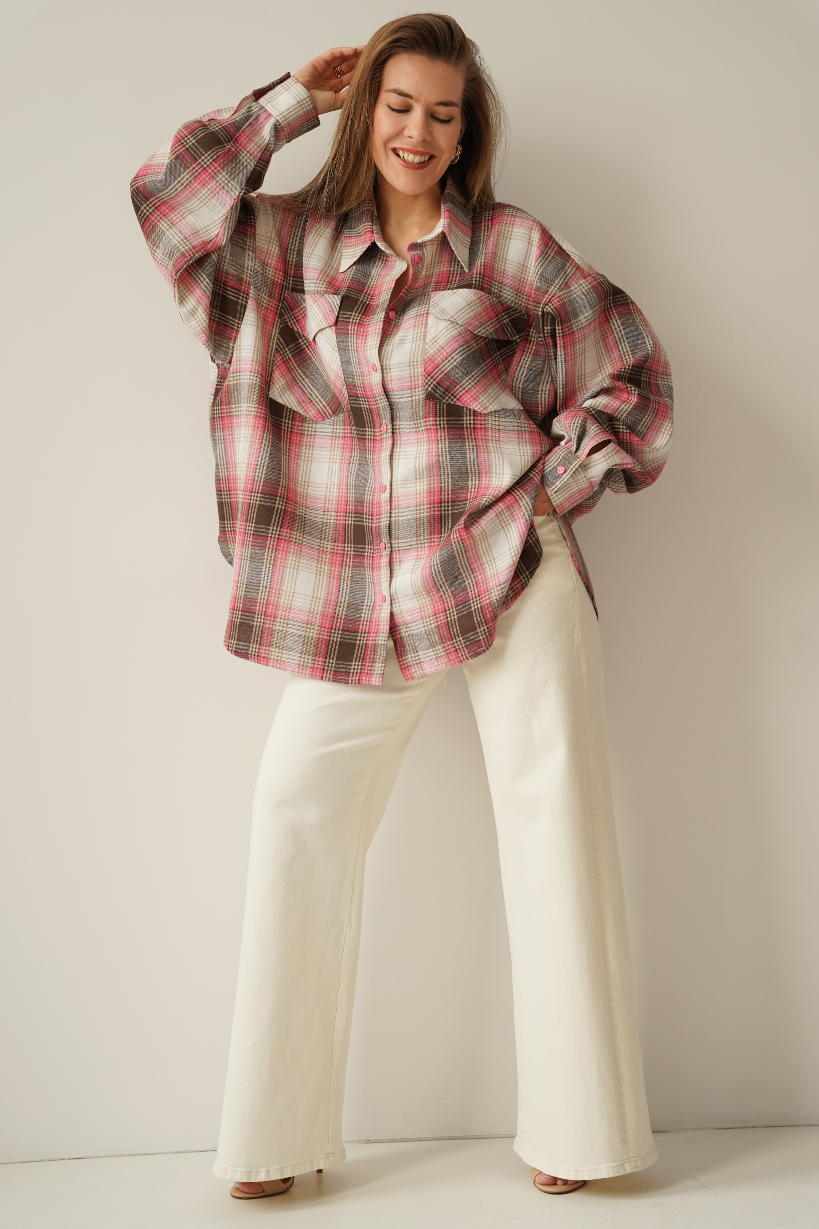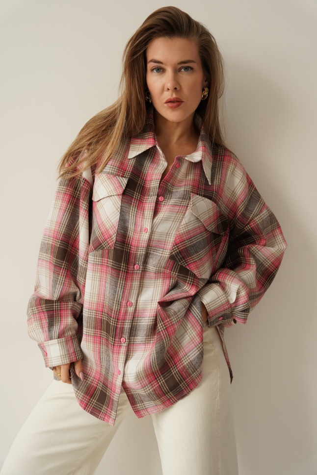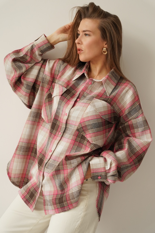 Oversized shirt in brown and pink check