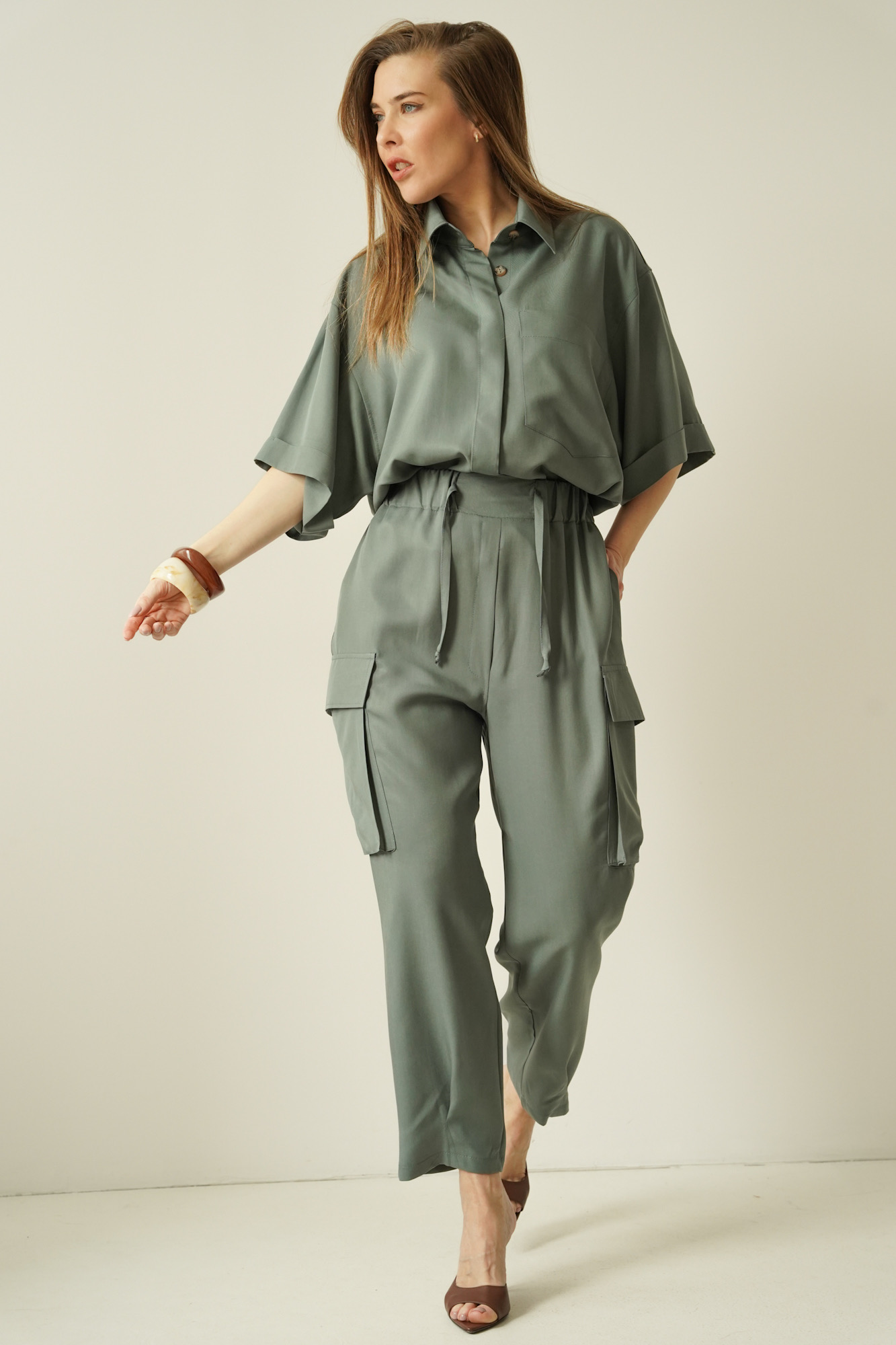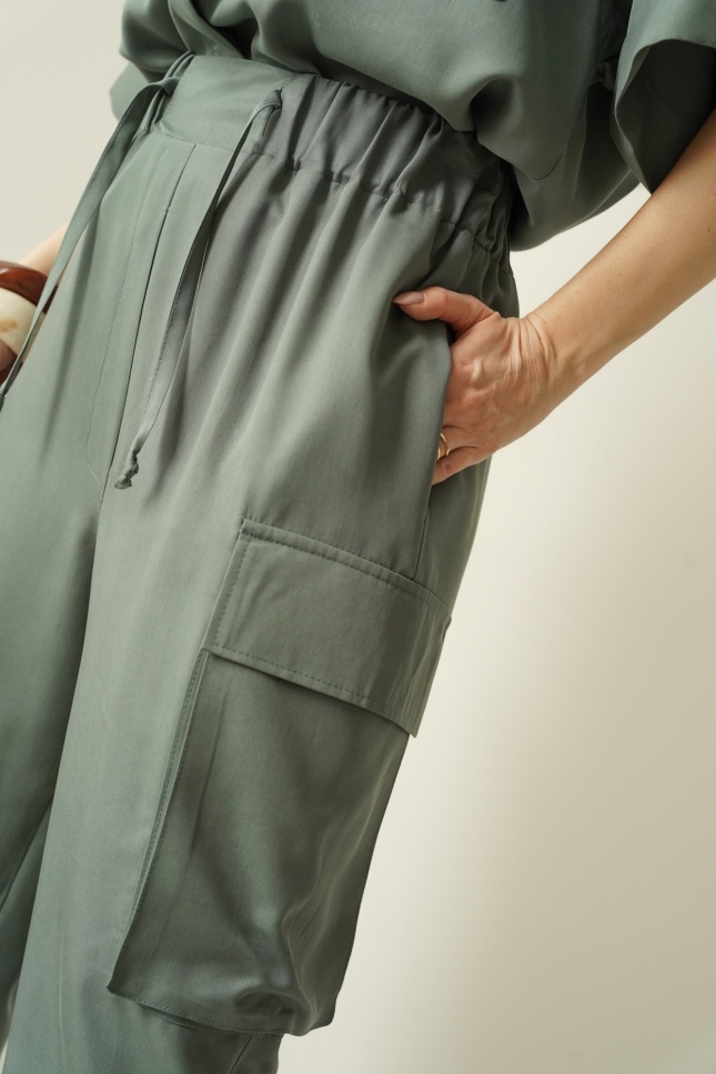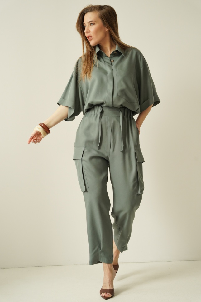 Set comprising a box-cut shirt and Safari cargo trousers sage