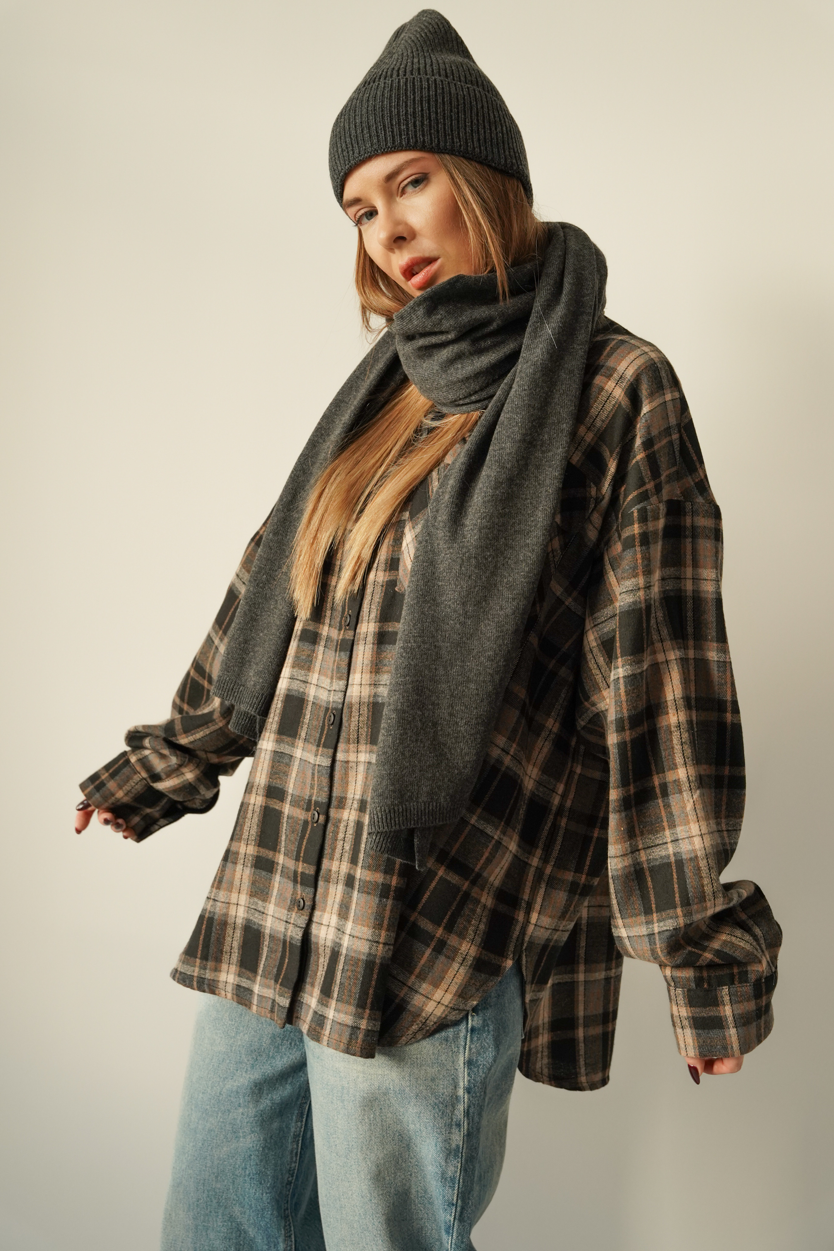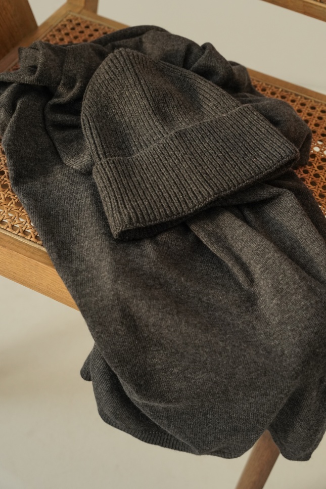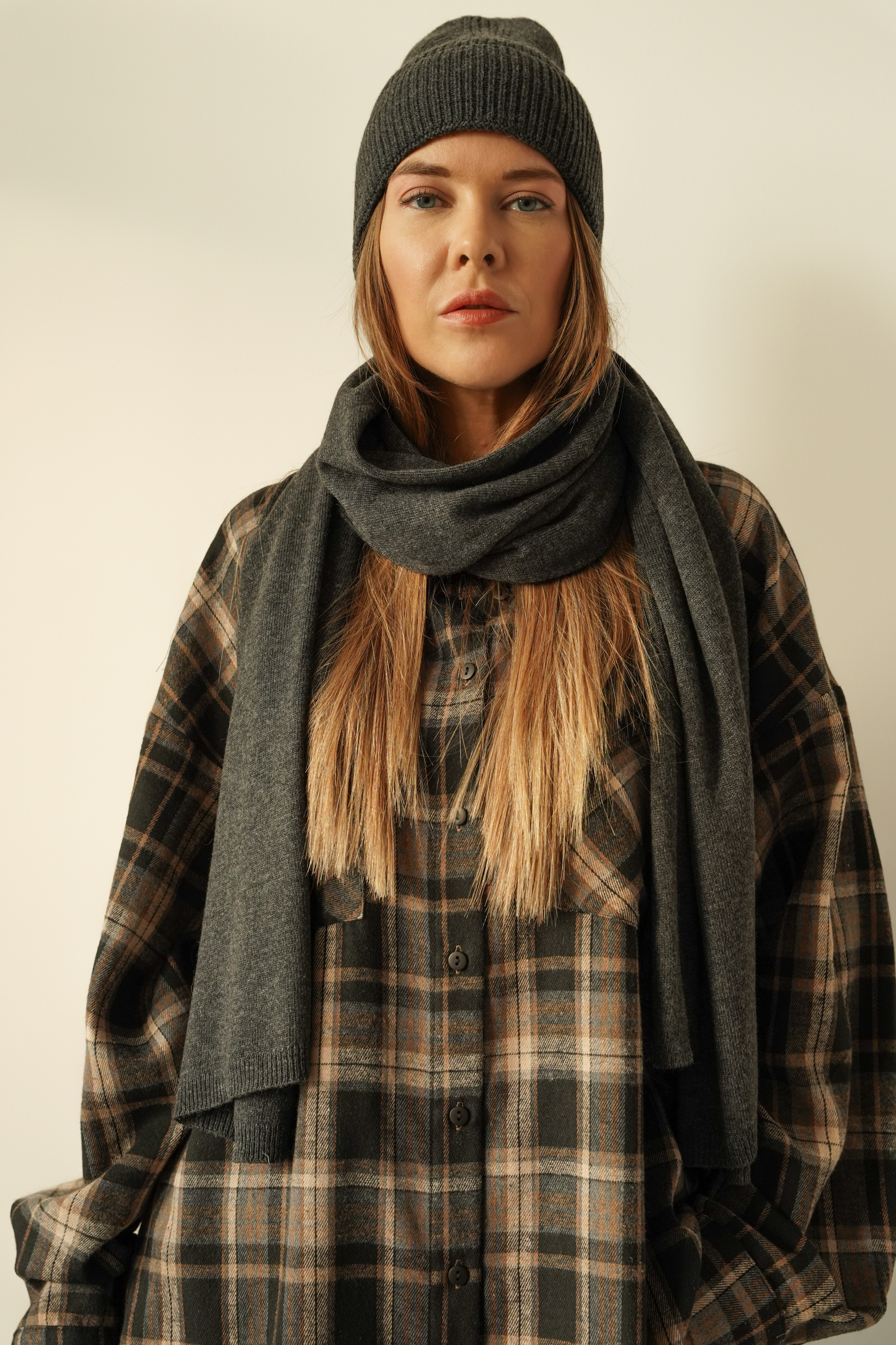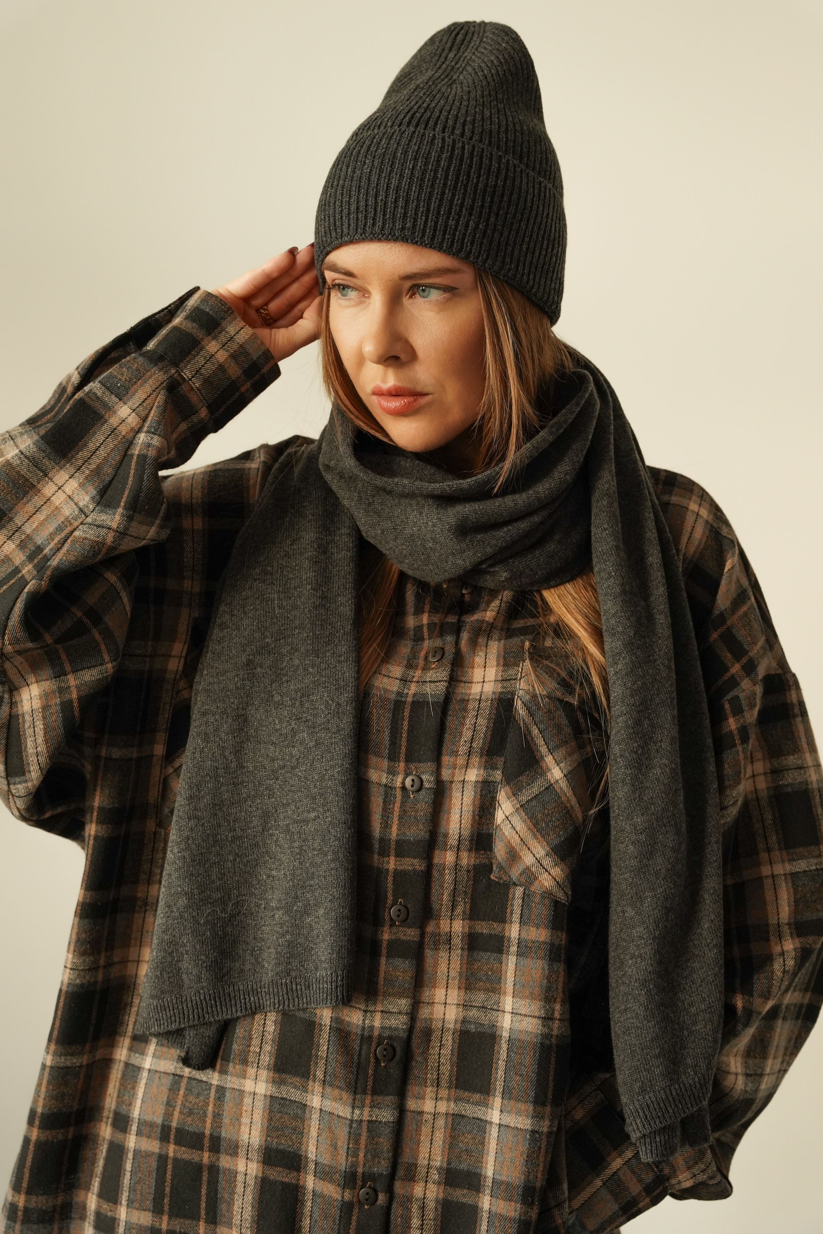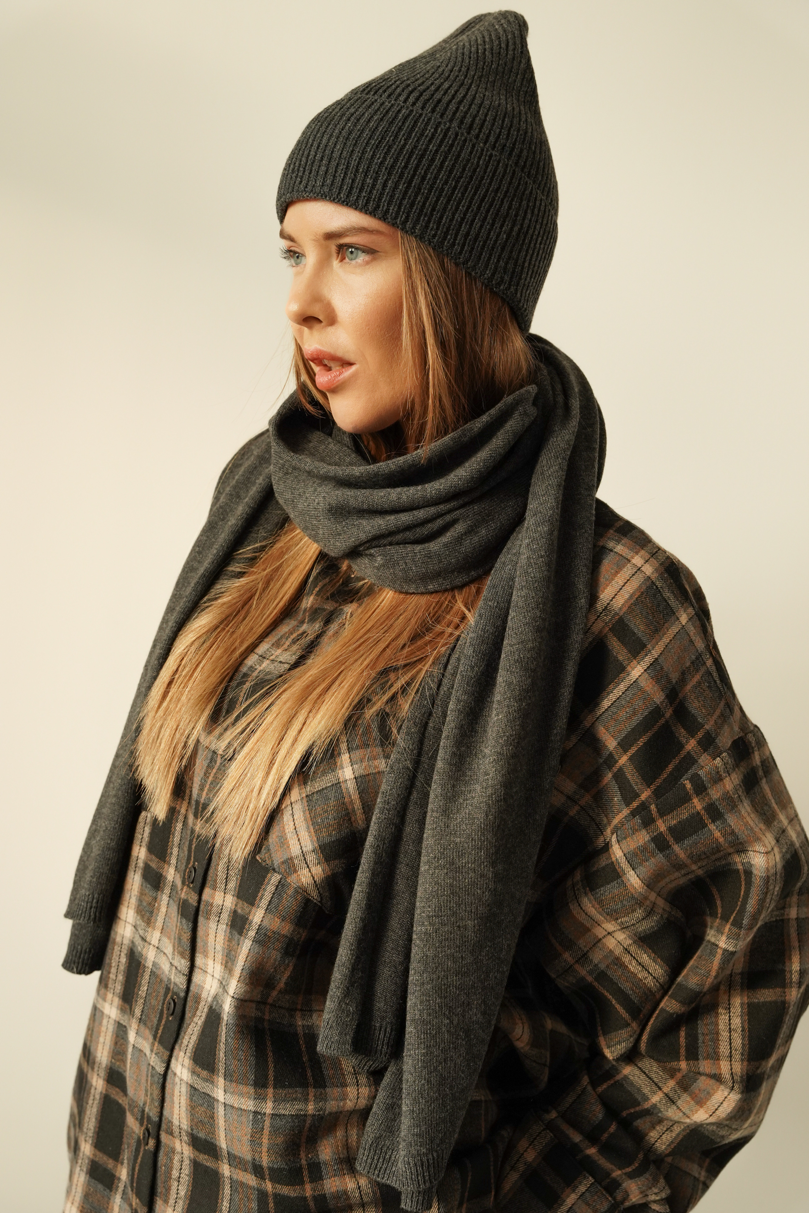 Set of hat and scarf with cashmere and Pure Warm merino wool dark grey