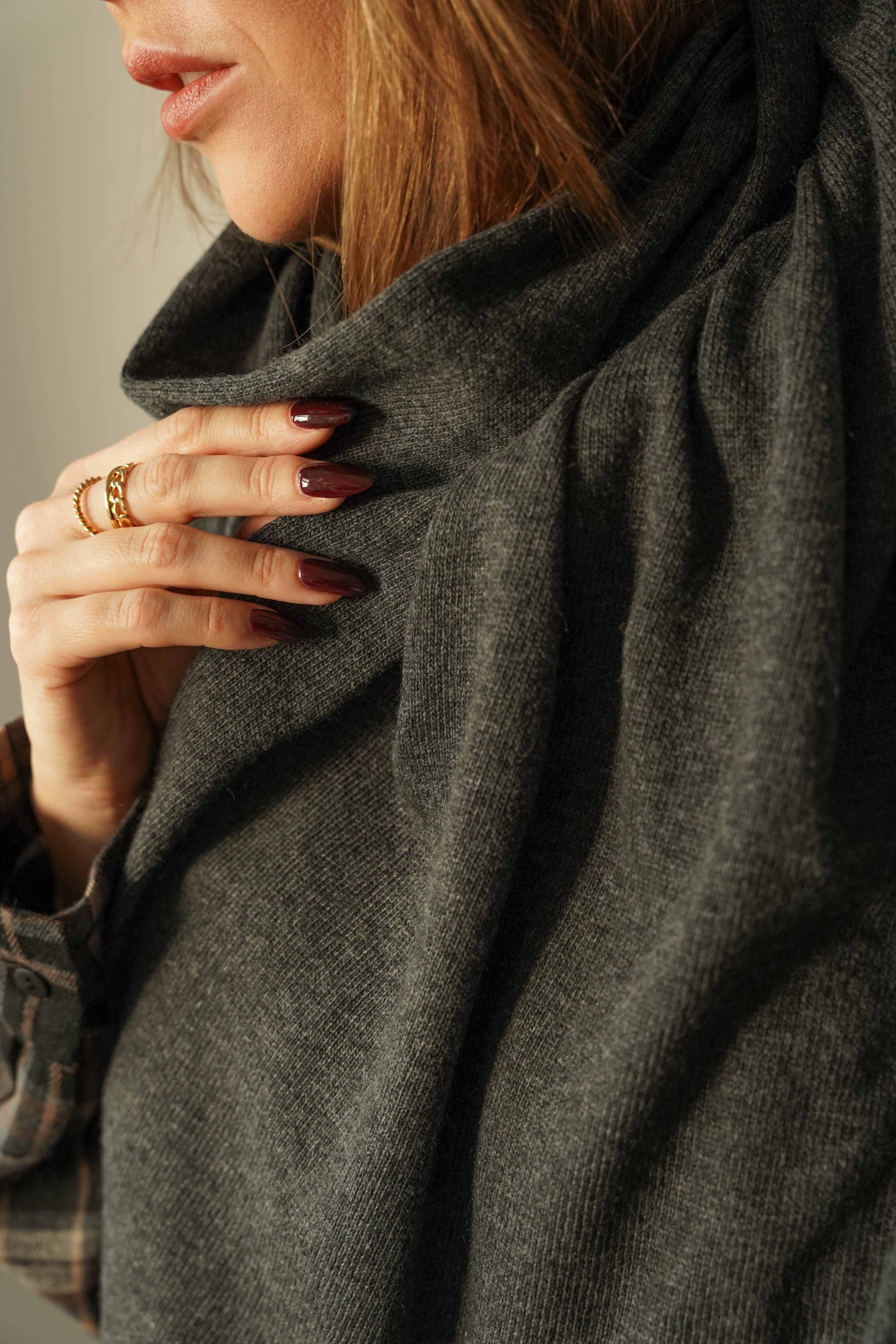 PURE WARM is a luxurious winter set – a hat and a wide, thick scarf made of a blend of cashmere (50%) and merino wool (50%). Soft, exceptionally warm and gentle on the skin. A timeless model that will complement any winter outfit in the spirit of quiet luxury.