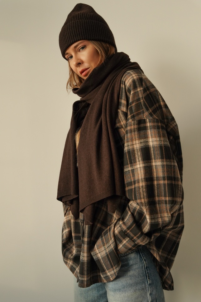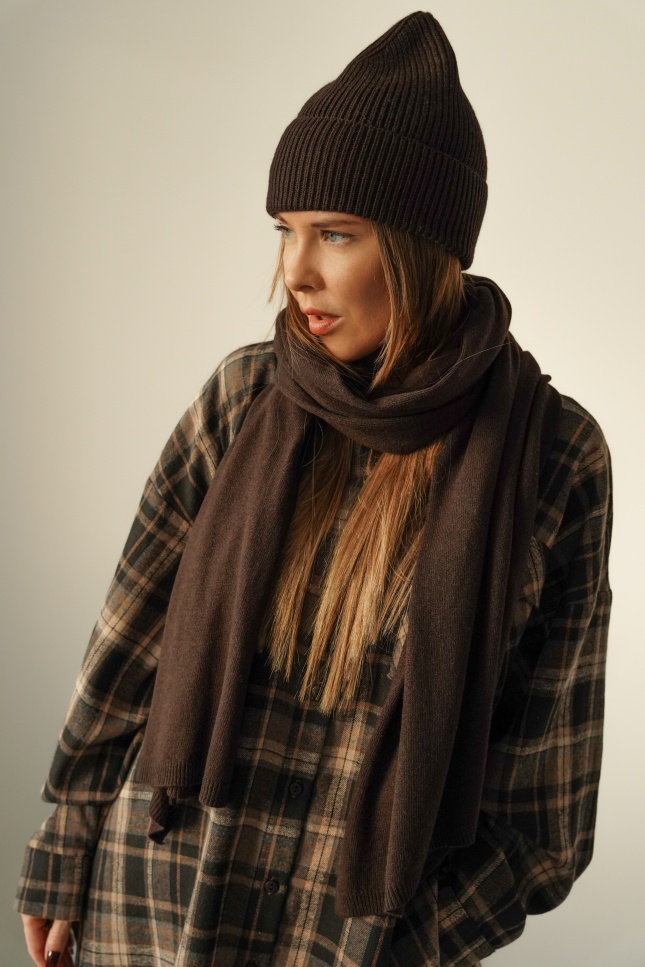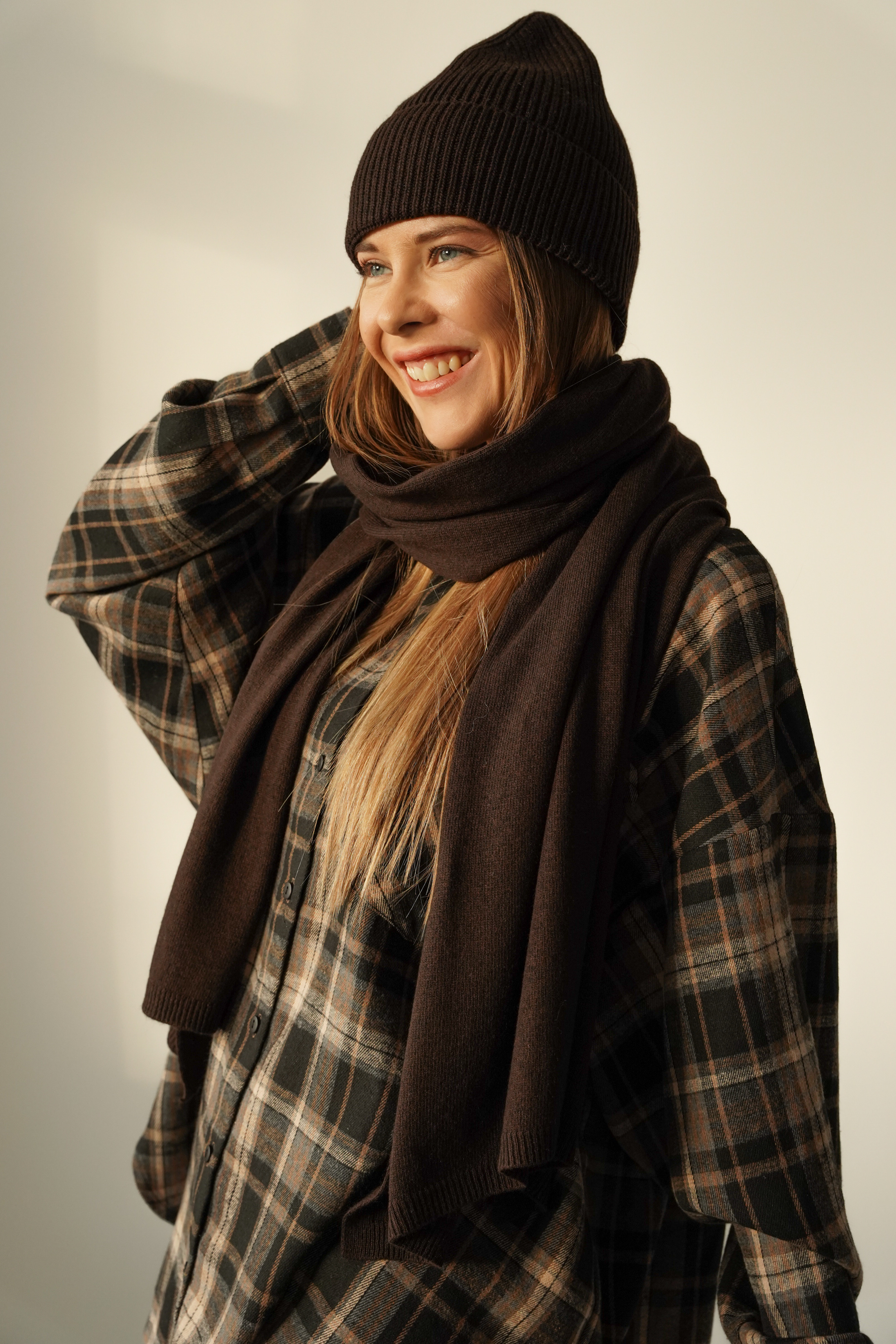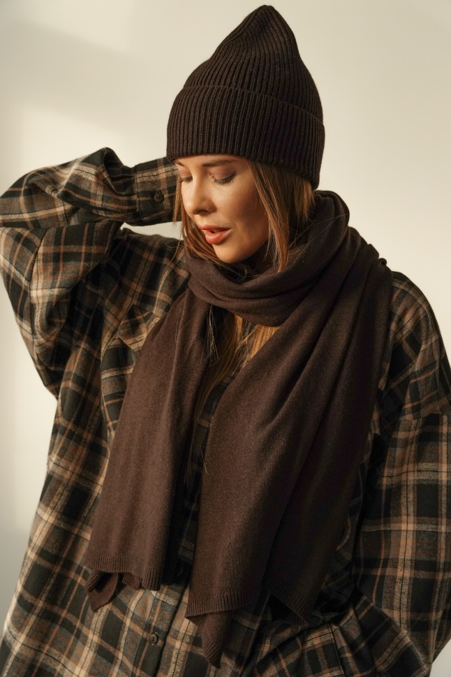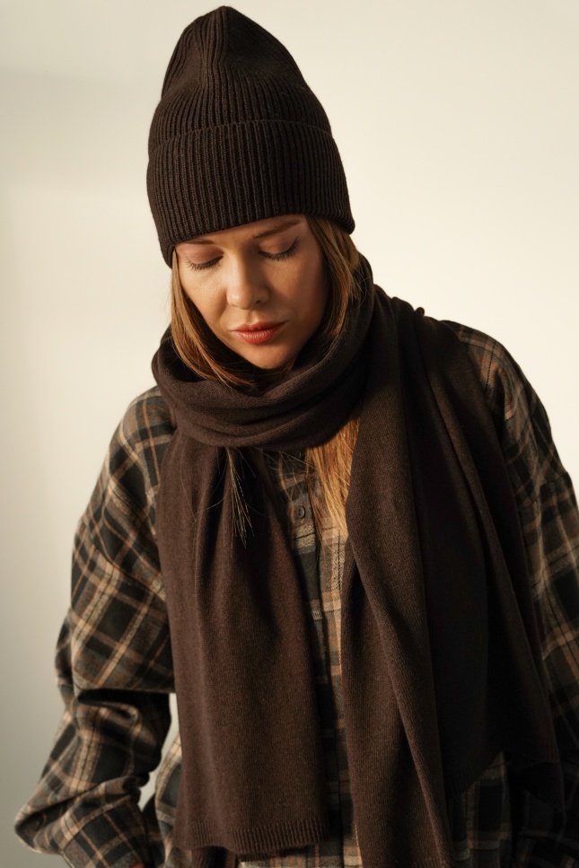PURE WARM is a luxurious winter set – a hat and a wide, thick scarf made of a blend of cashmere (50%) and merino wool (50%). Soft, exceptionally warm and gentle on the skin. A timeless model that will complement any winter outfit in the spirit of quiet luxury.