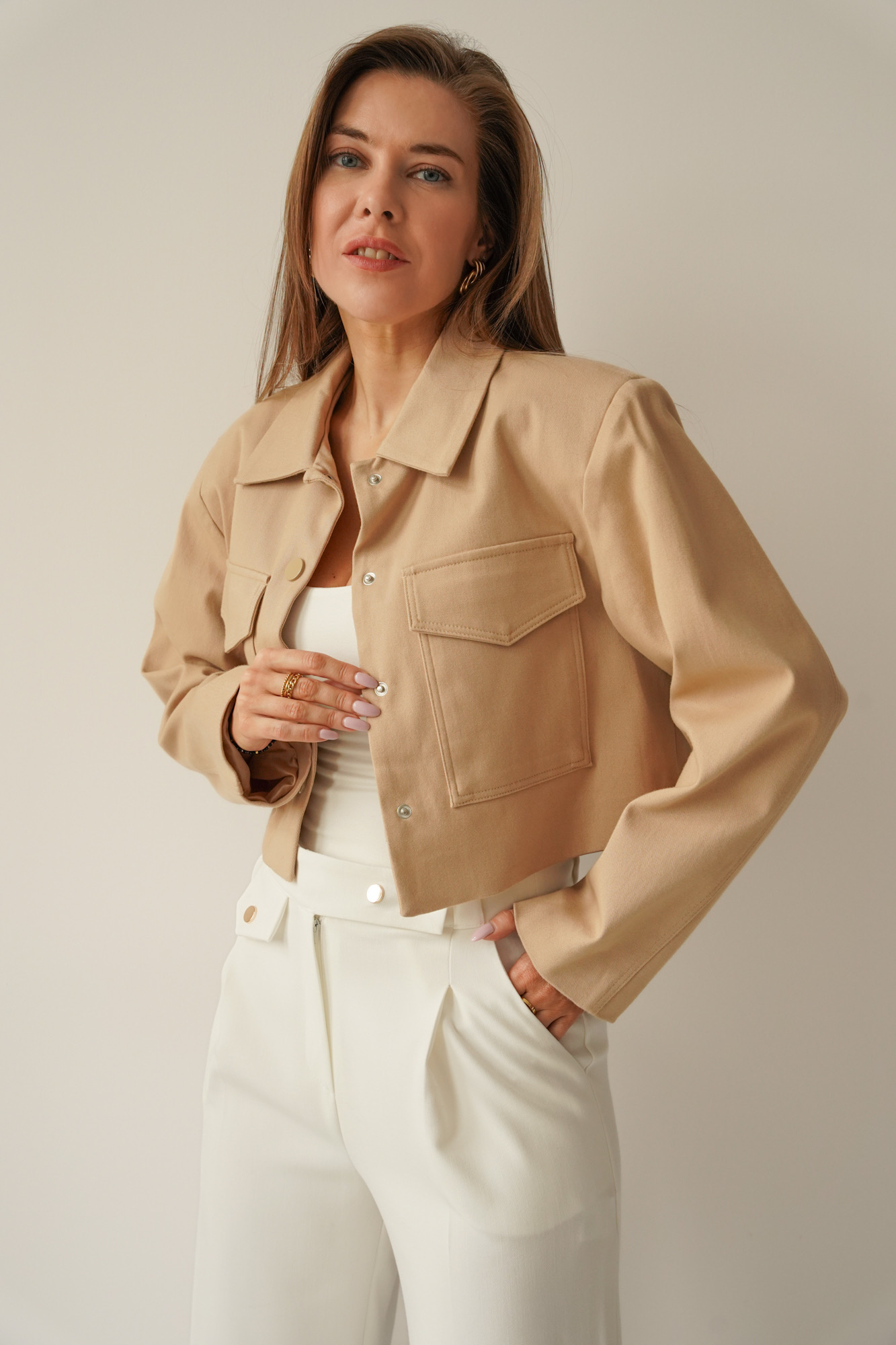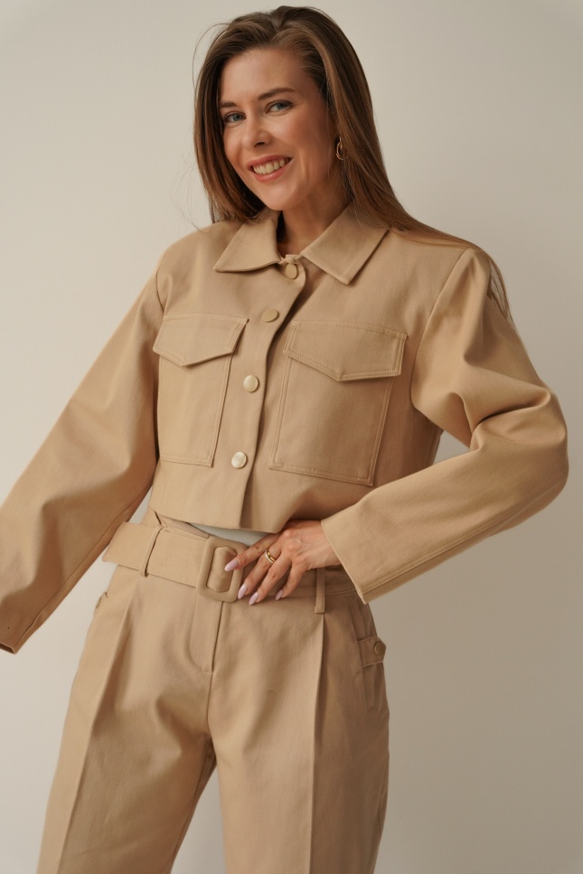 A unique jacket-type jacket with a subtle, boxy cut. Made of soft cotton denim, which thanks to its 98% cotton content allows the skin to breathe and ensures a comfortable fit. An original design in the season's hottest trends, with elements of military and streetwear in its design.