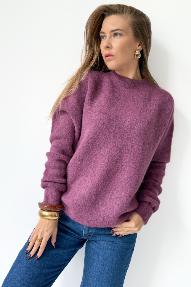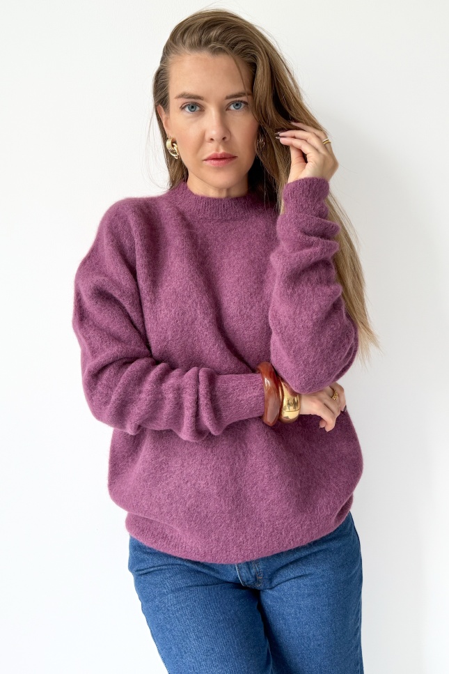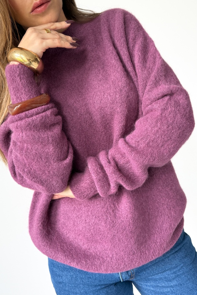 Soft baby alpaca sweater and virgin wool Velvet plum