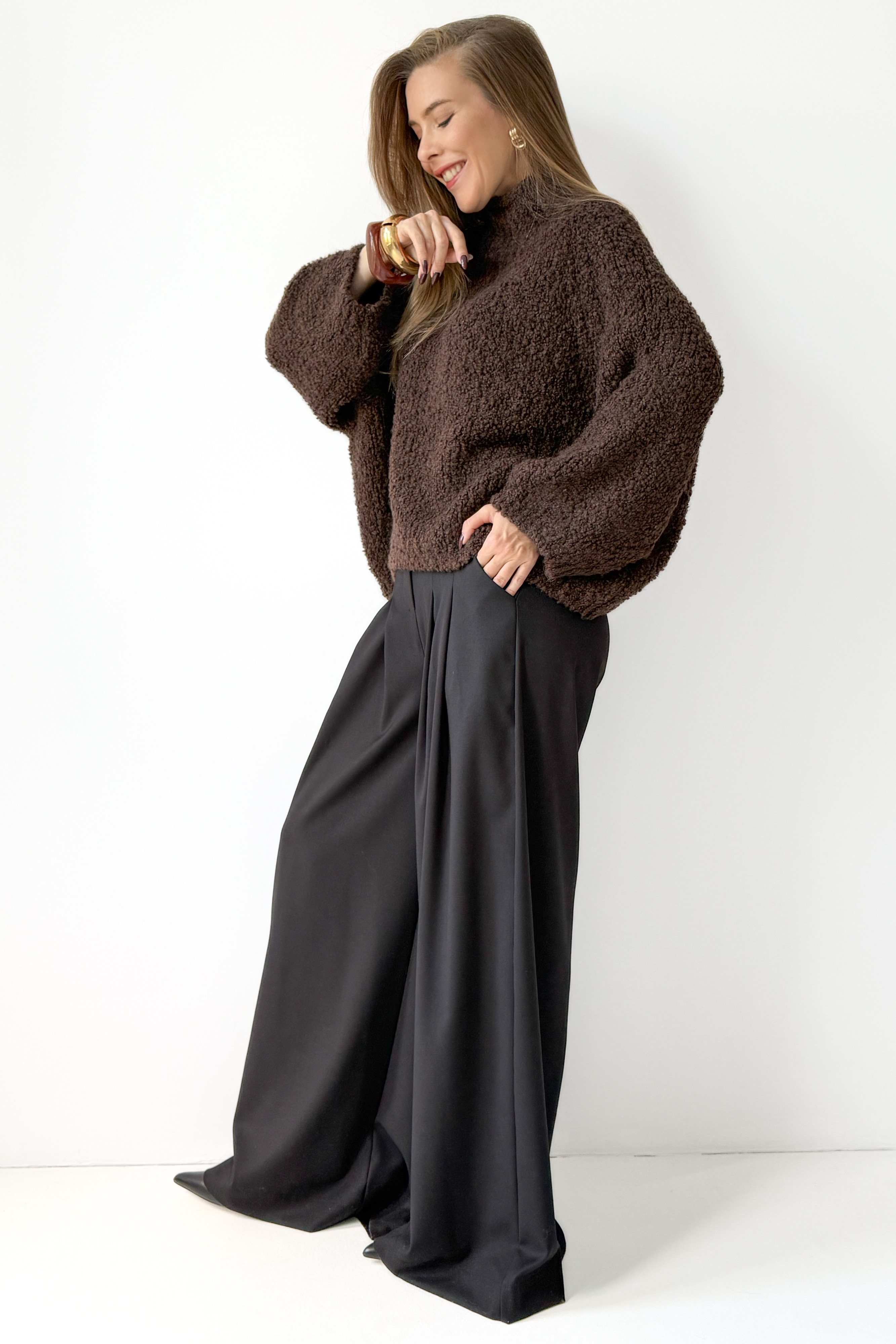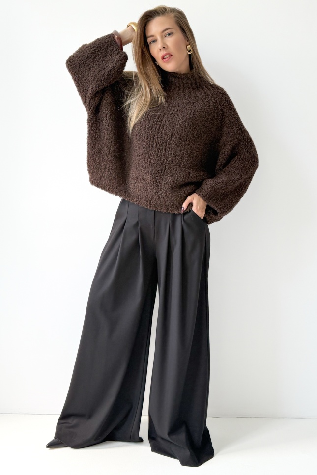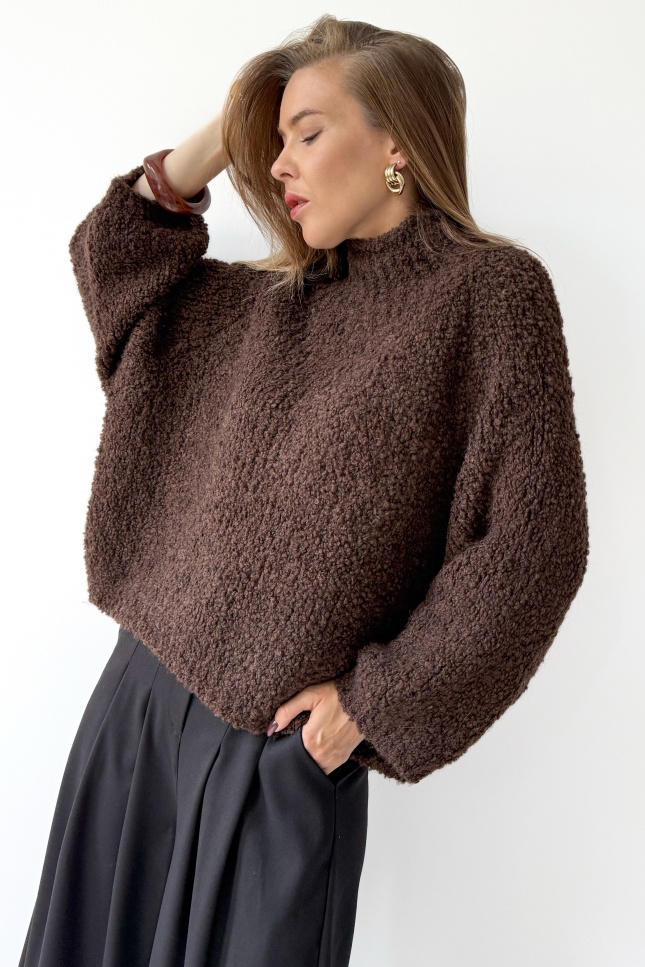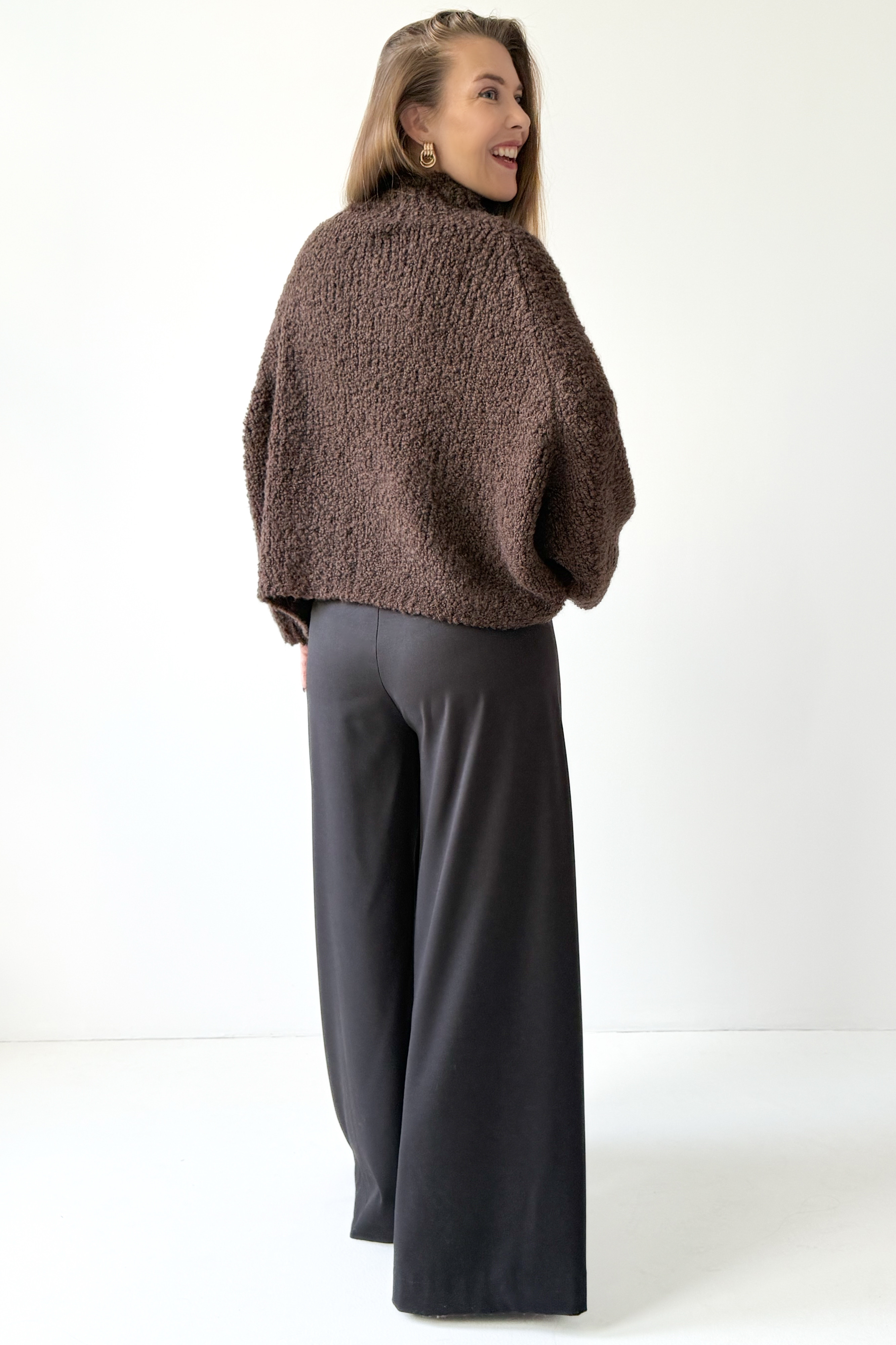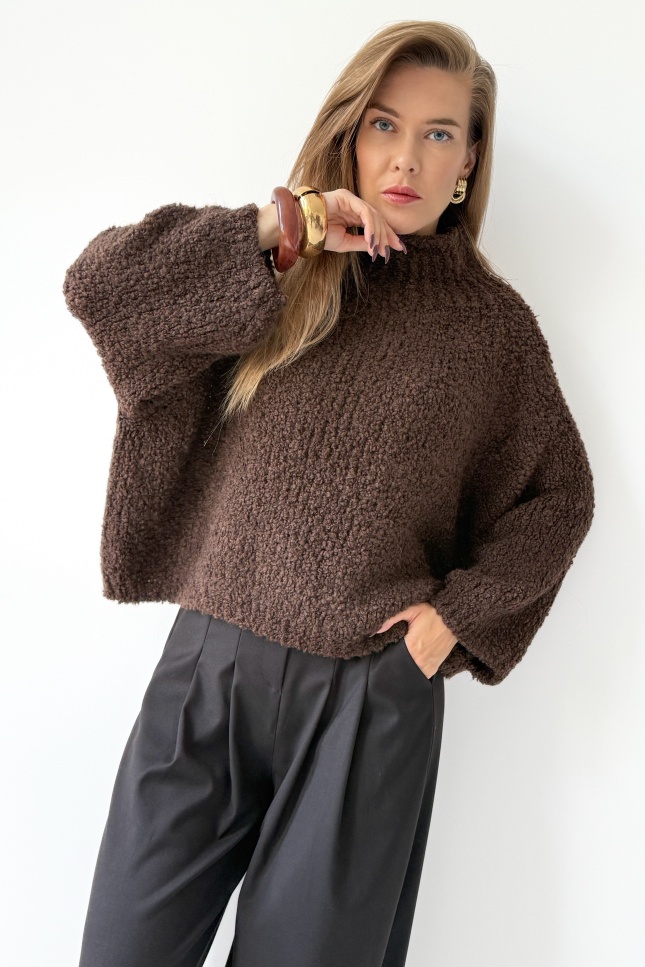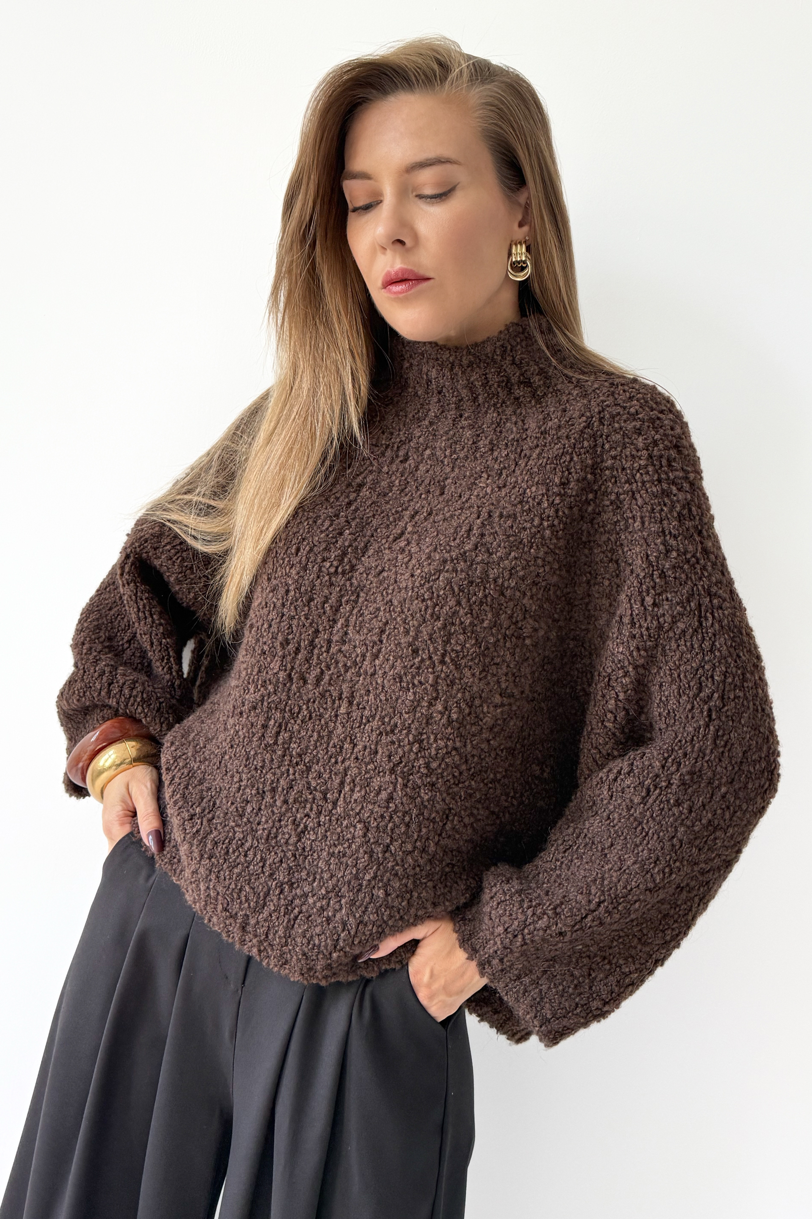 Bouclé is a classic, slightly boxy sweater with a turtleneck that impresses with its softness and refined simplicity. Made of looped yarn with added baby alpaca, wool, and viscose, it provides exceptional comfort and a subtle texture.