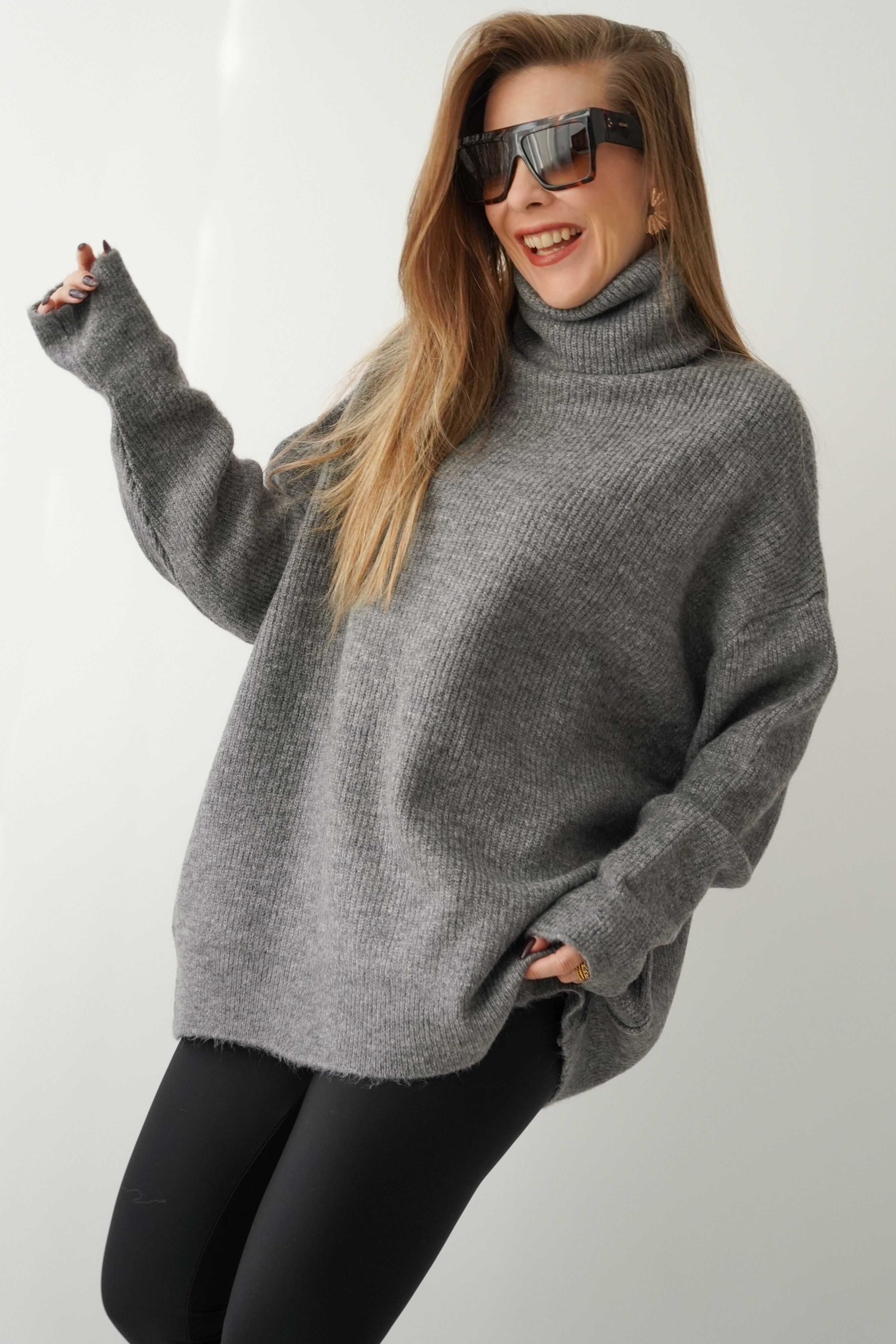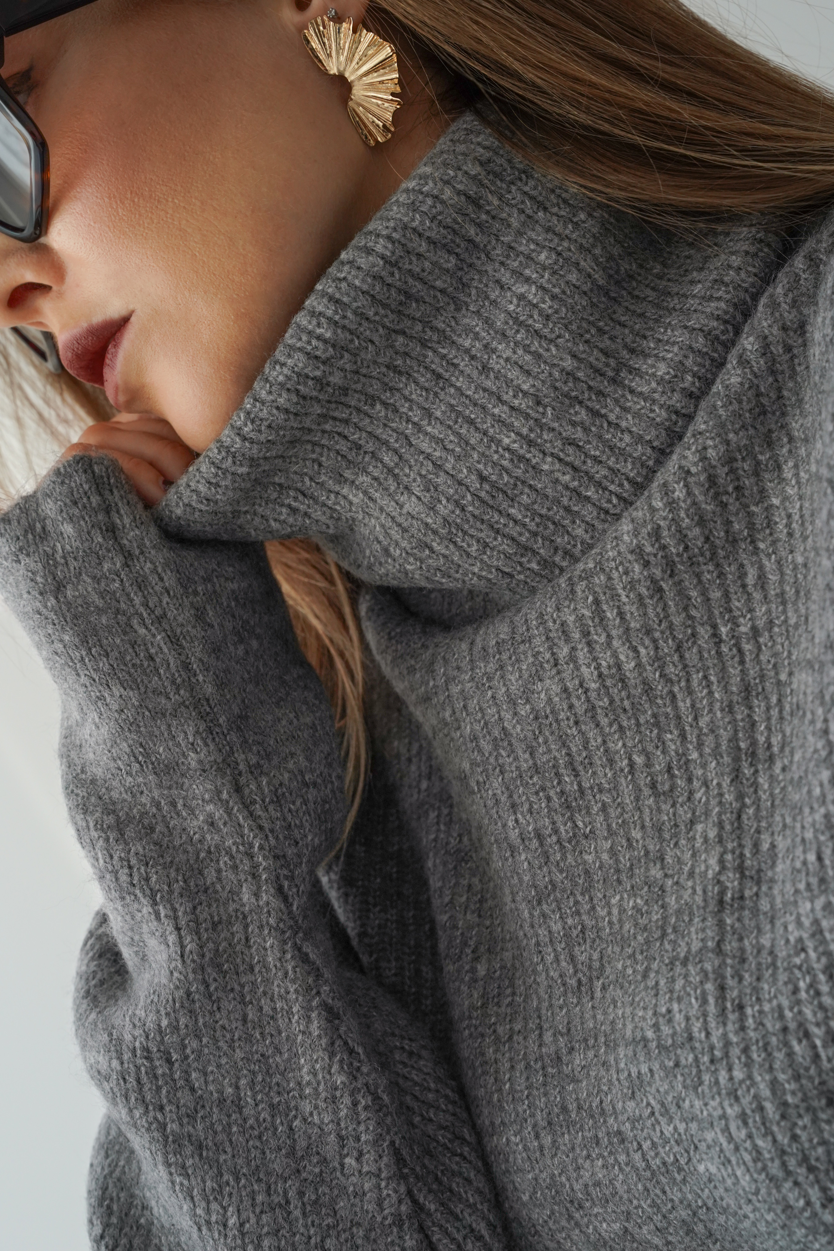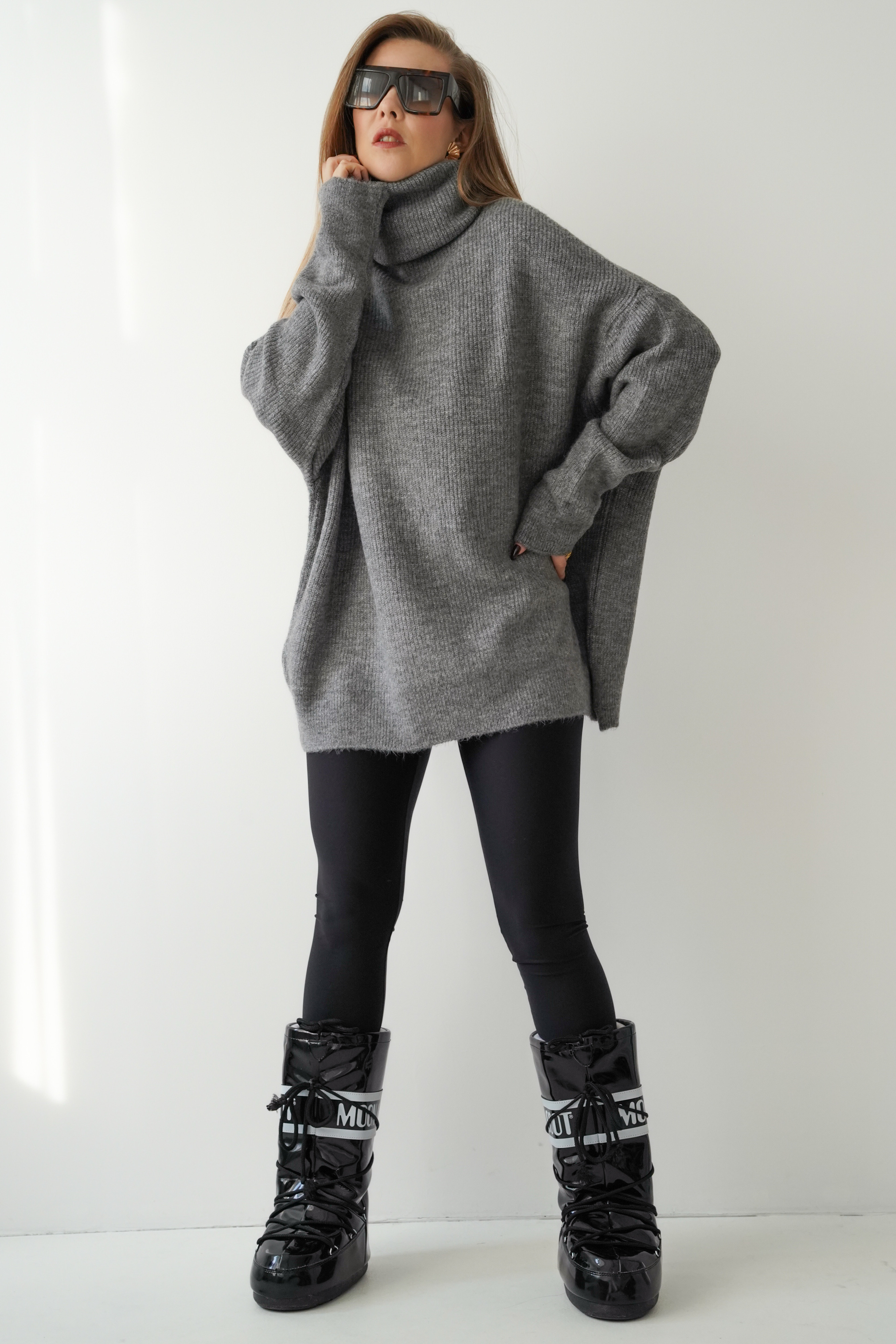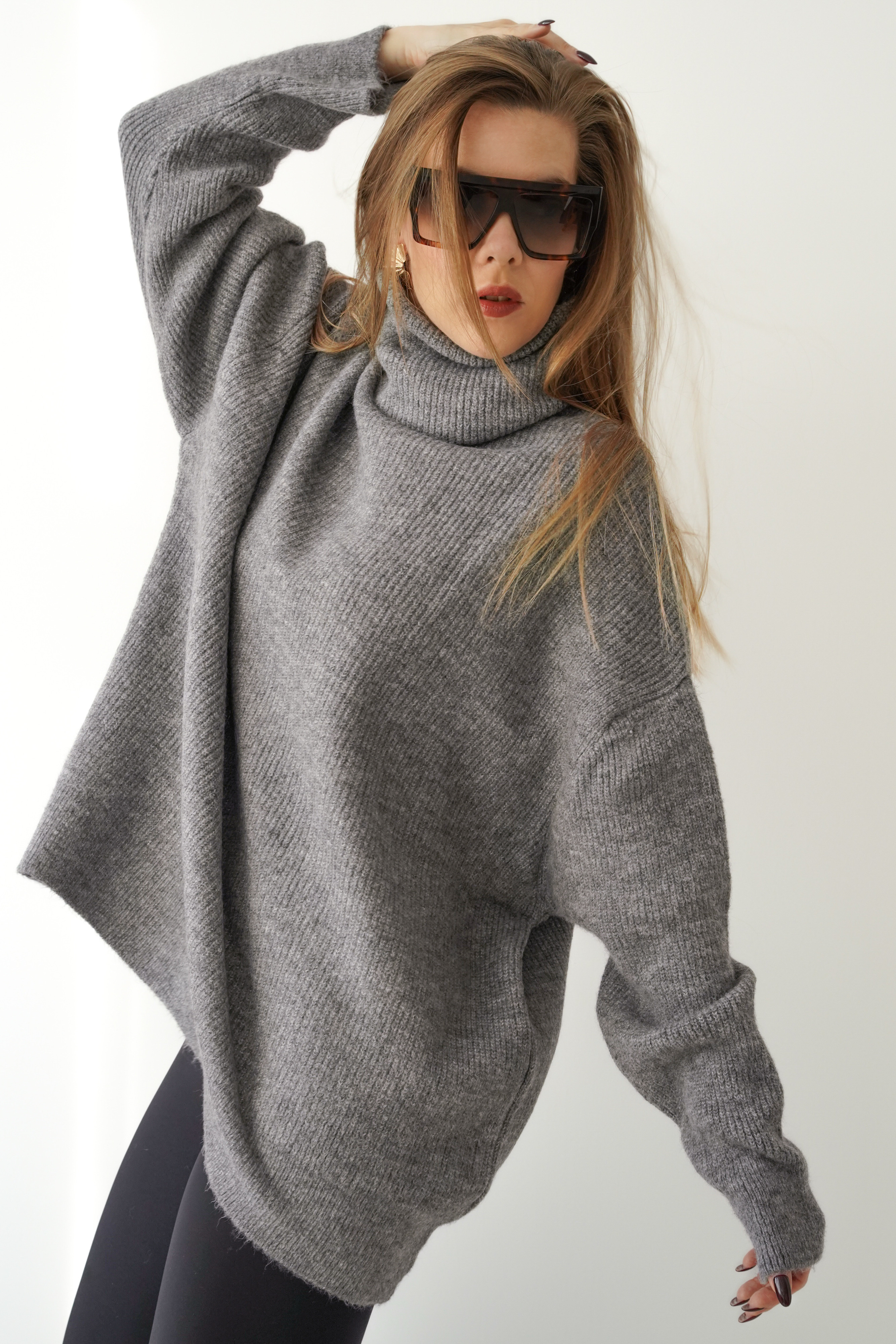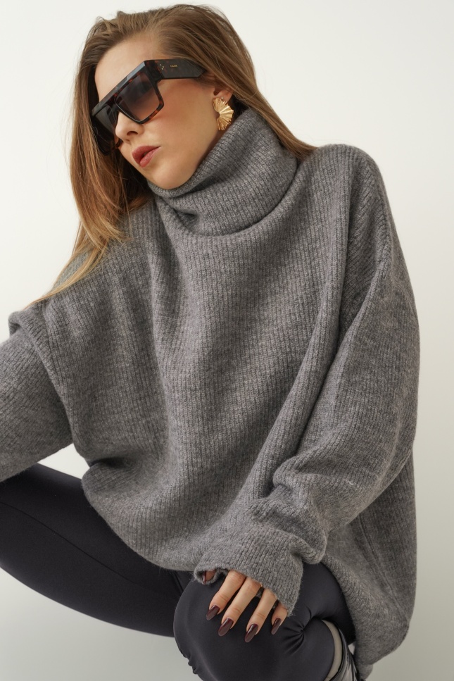 A soft, oversized jumper with a loose fit and a high turtleneck, made from luxurious baby alpaca and wool yarn. The fine ribbing gives it a subtle elegance, and the classic cut makes it suitable for both jeans and leggings. ‘Après’ is a timeless model that envelops you in warmth and fits in with the aesthetics of modern minimalism.