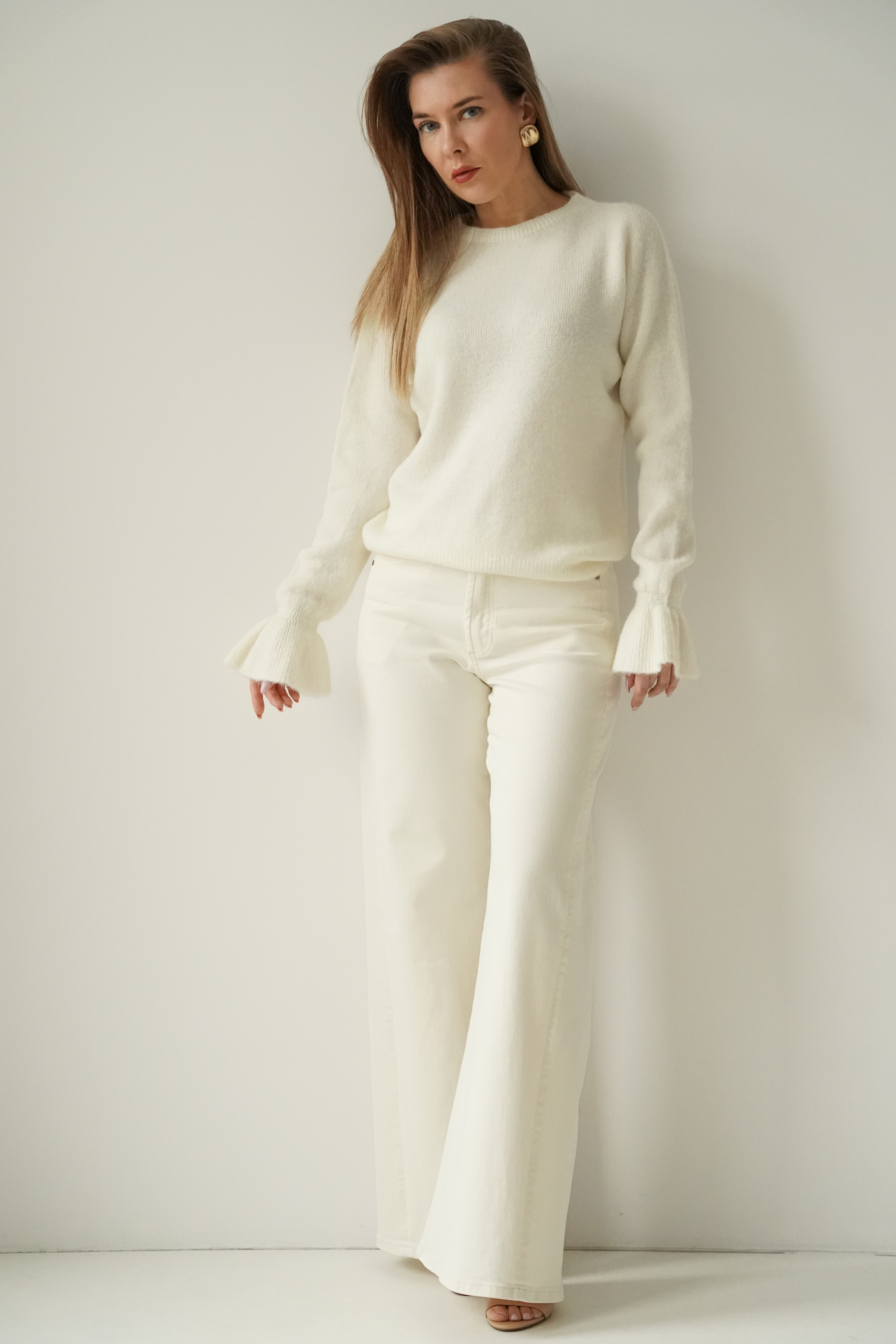Sweater with frills, baby alpaca and virgin wool Elia cream
