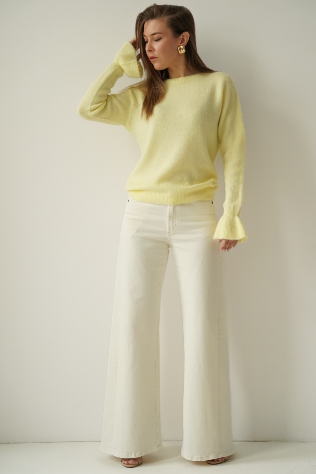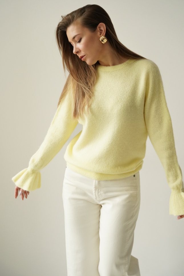 Sweater with frills, baby alpaca and virgin wool Elia pastel yellow