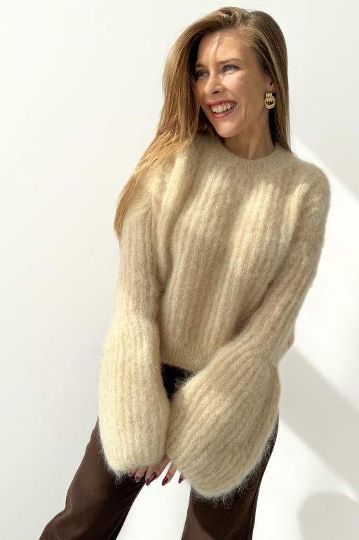 Fluffy jumper with bell sleeves super kid mohair Philo beige