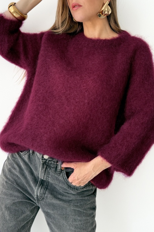 Fluffy kid mohair sweater with bell sleeves Philo spicy chocolate
