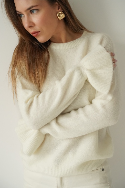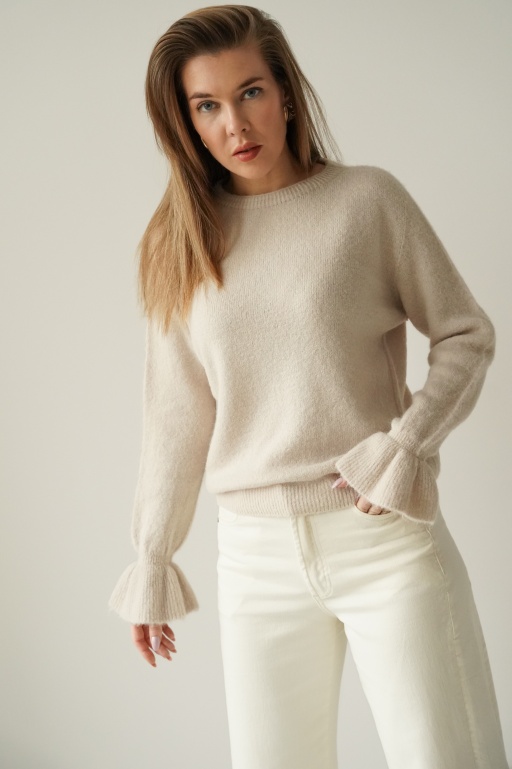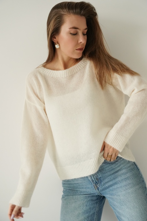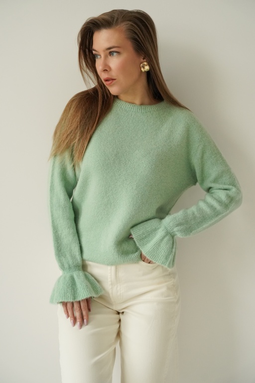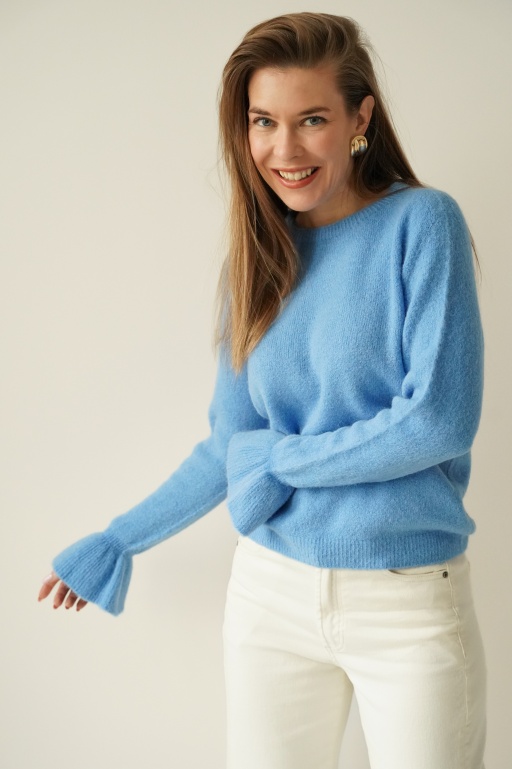 Maelle icy blue cashmere jumper with fine stripes