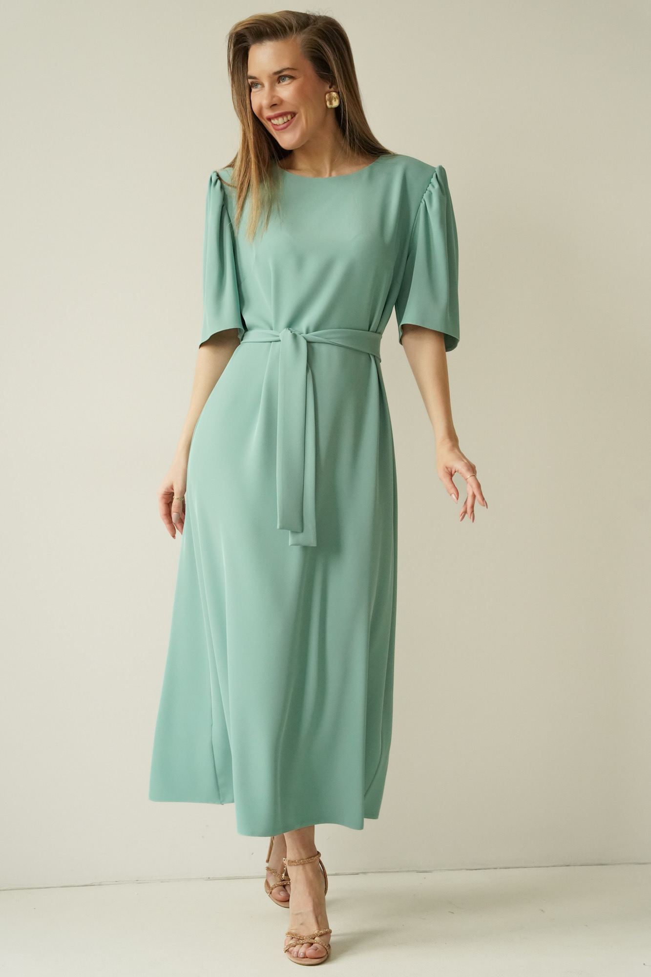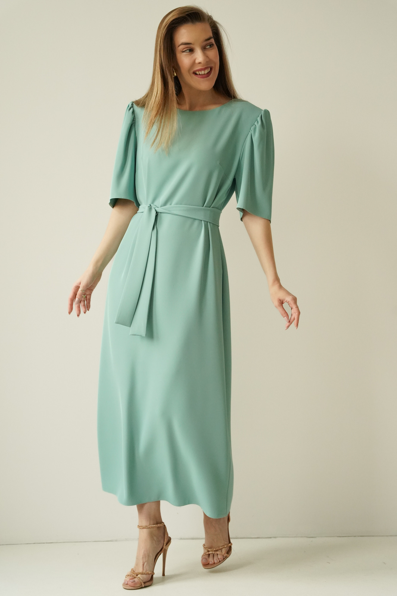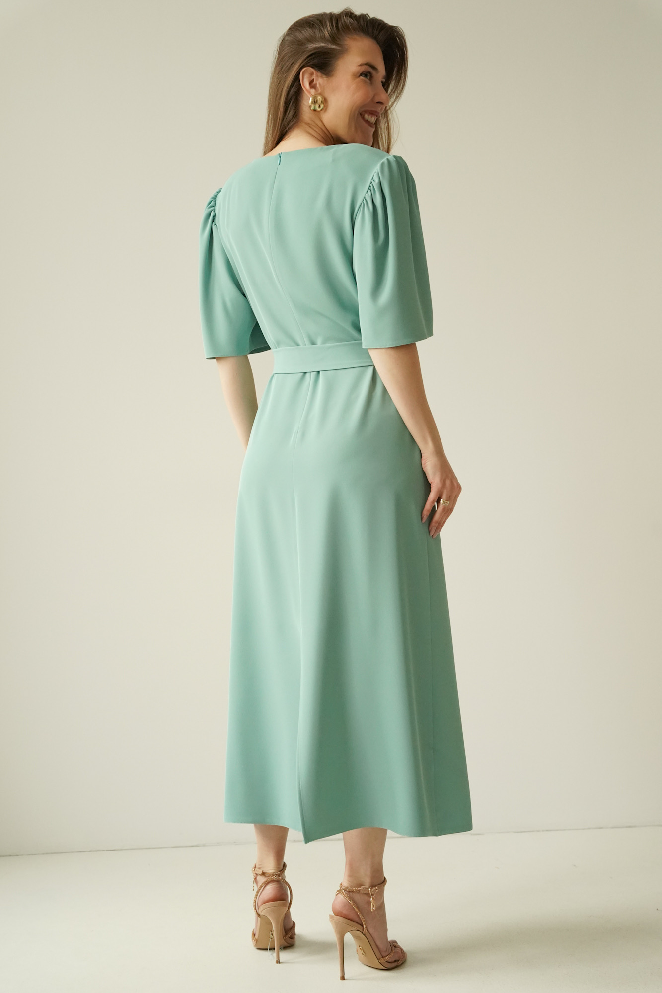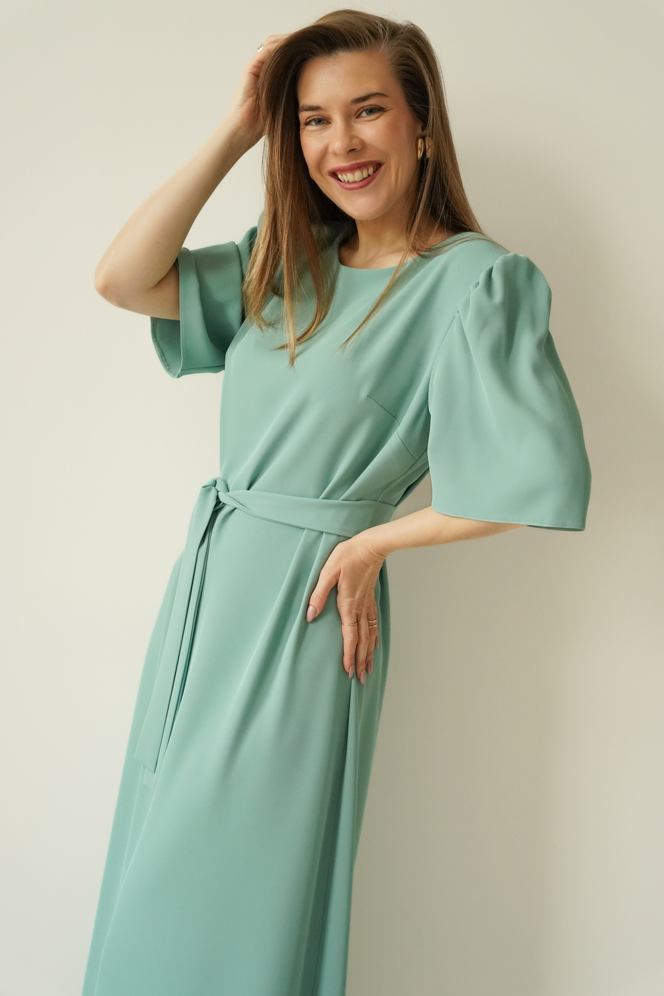 The elegant dress with puff sleeves Aurelia mint