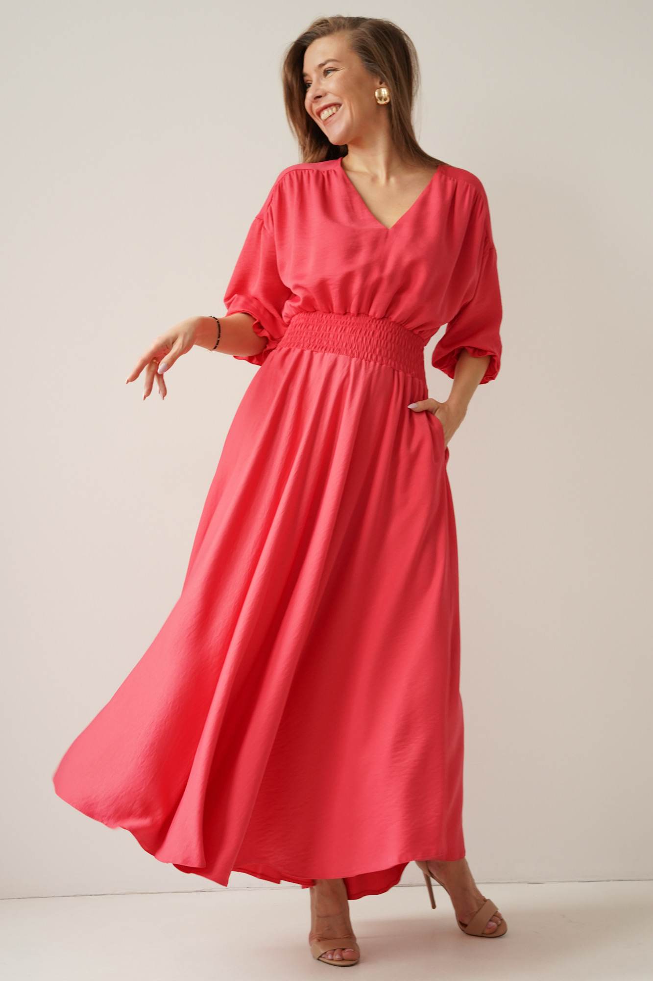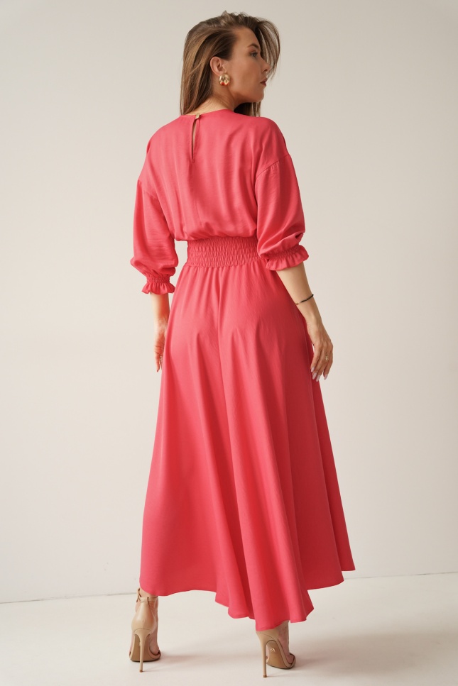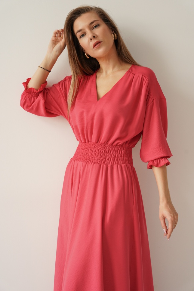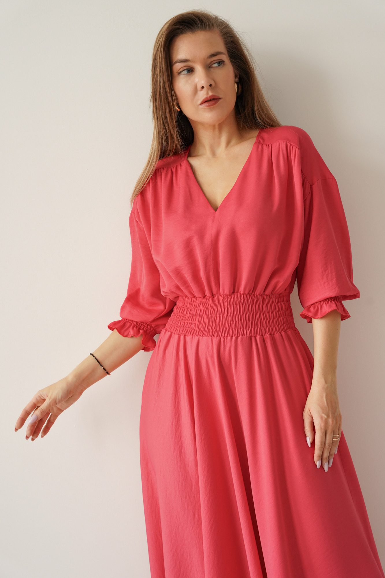 Women's Carmen-style dress with puffed sleeves Paloma raspberry