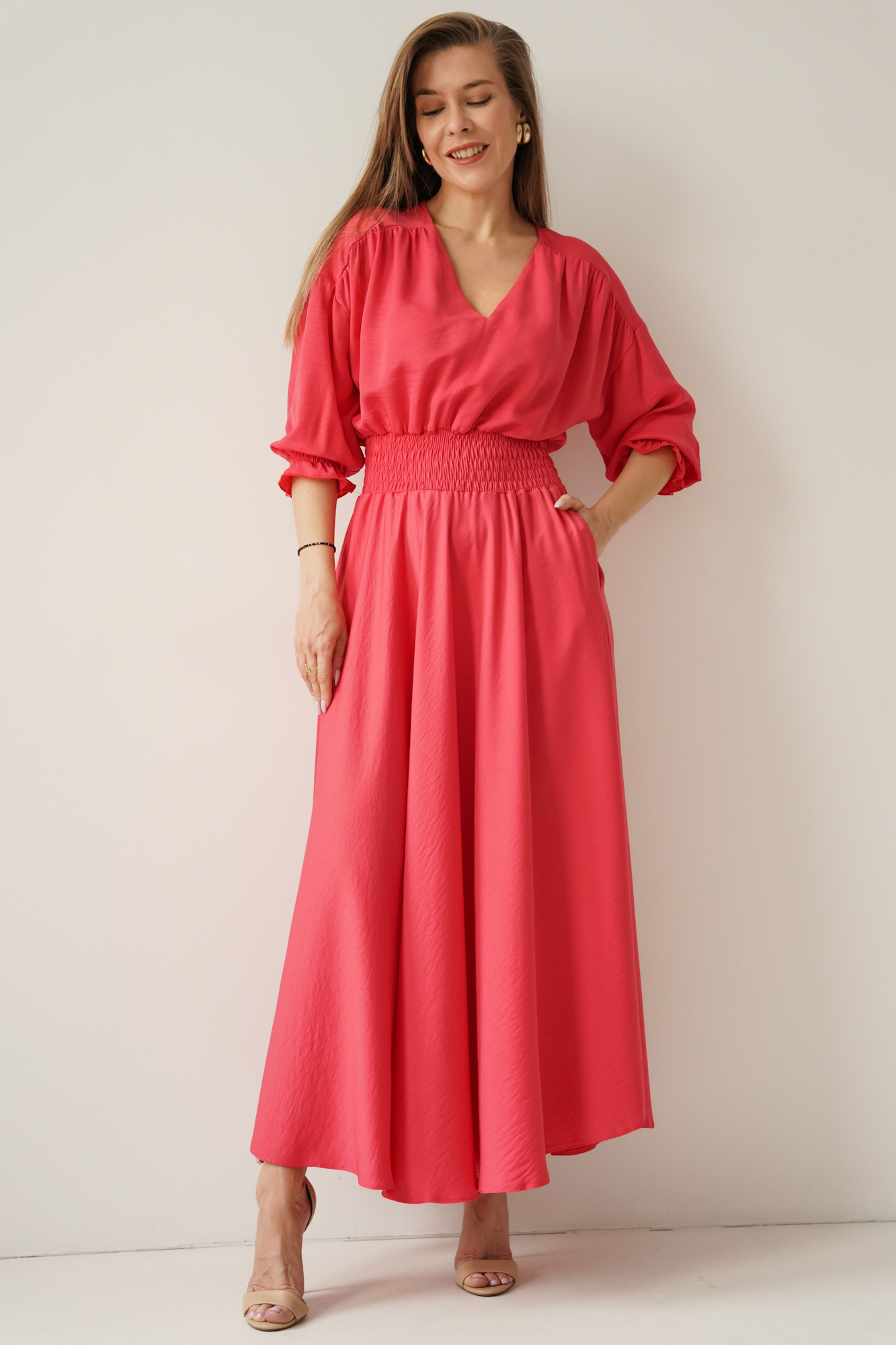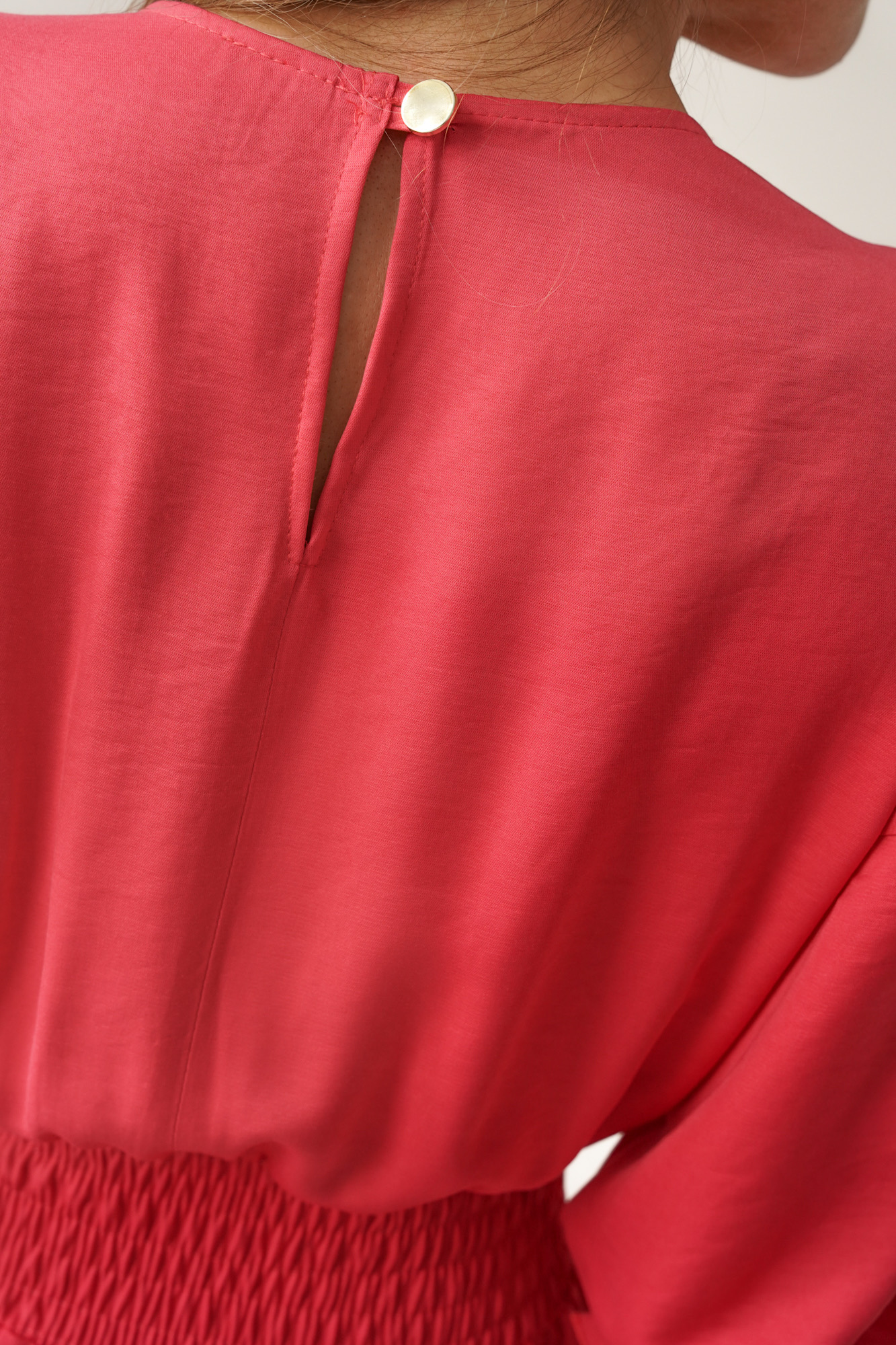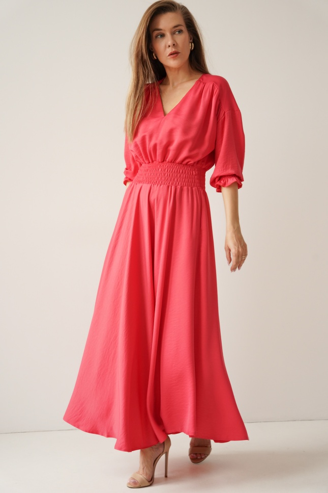 Women's Carmen-style dress with puffed sleeves Paloma raspberry