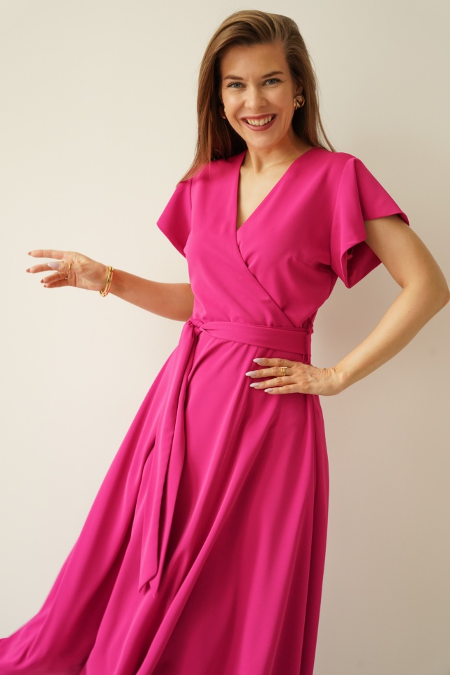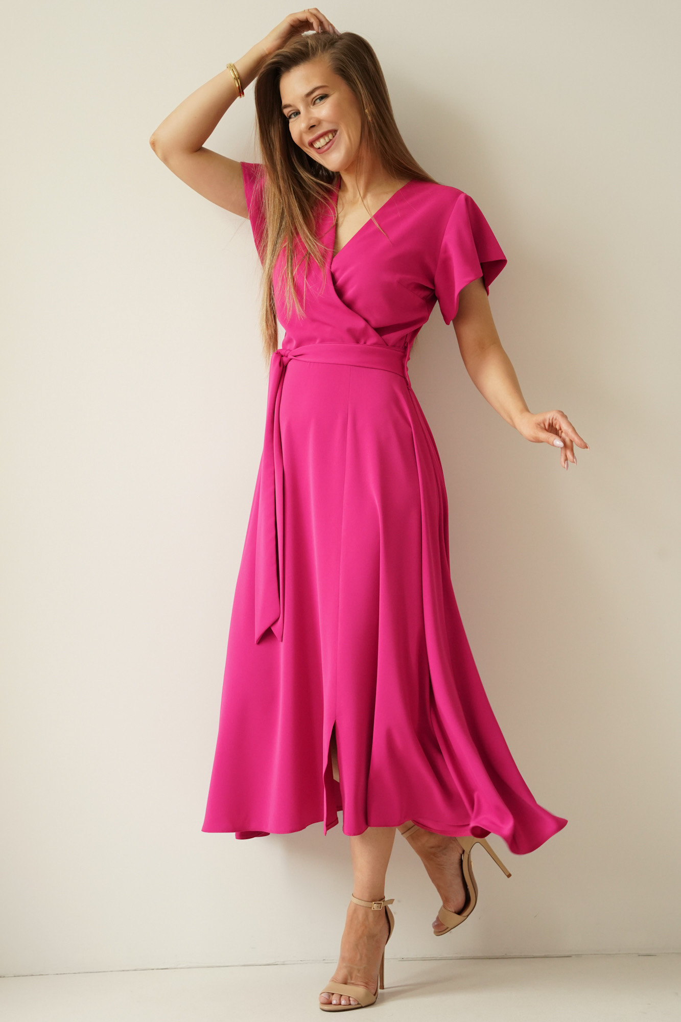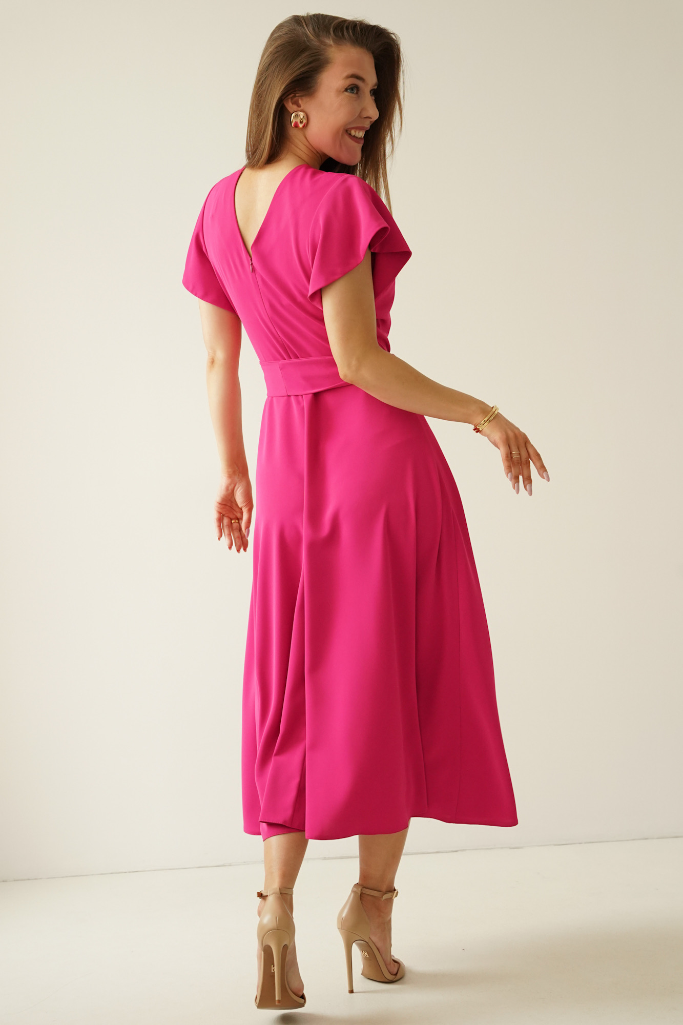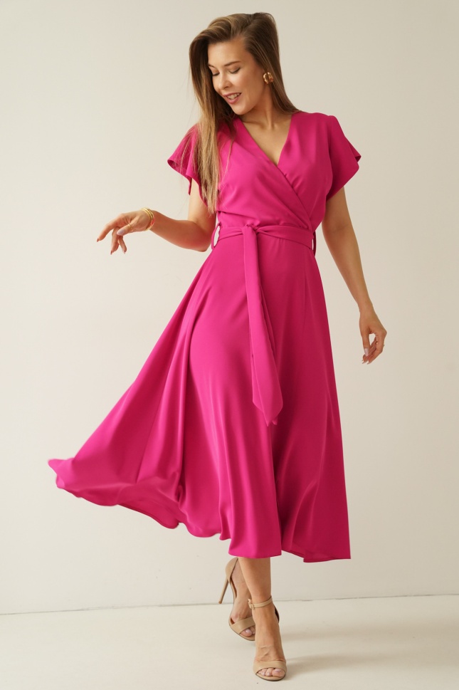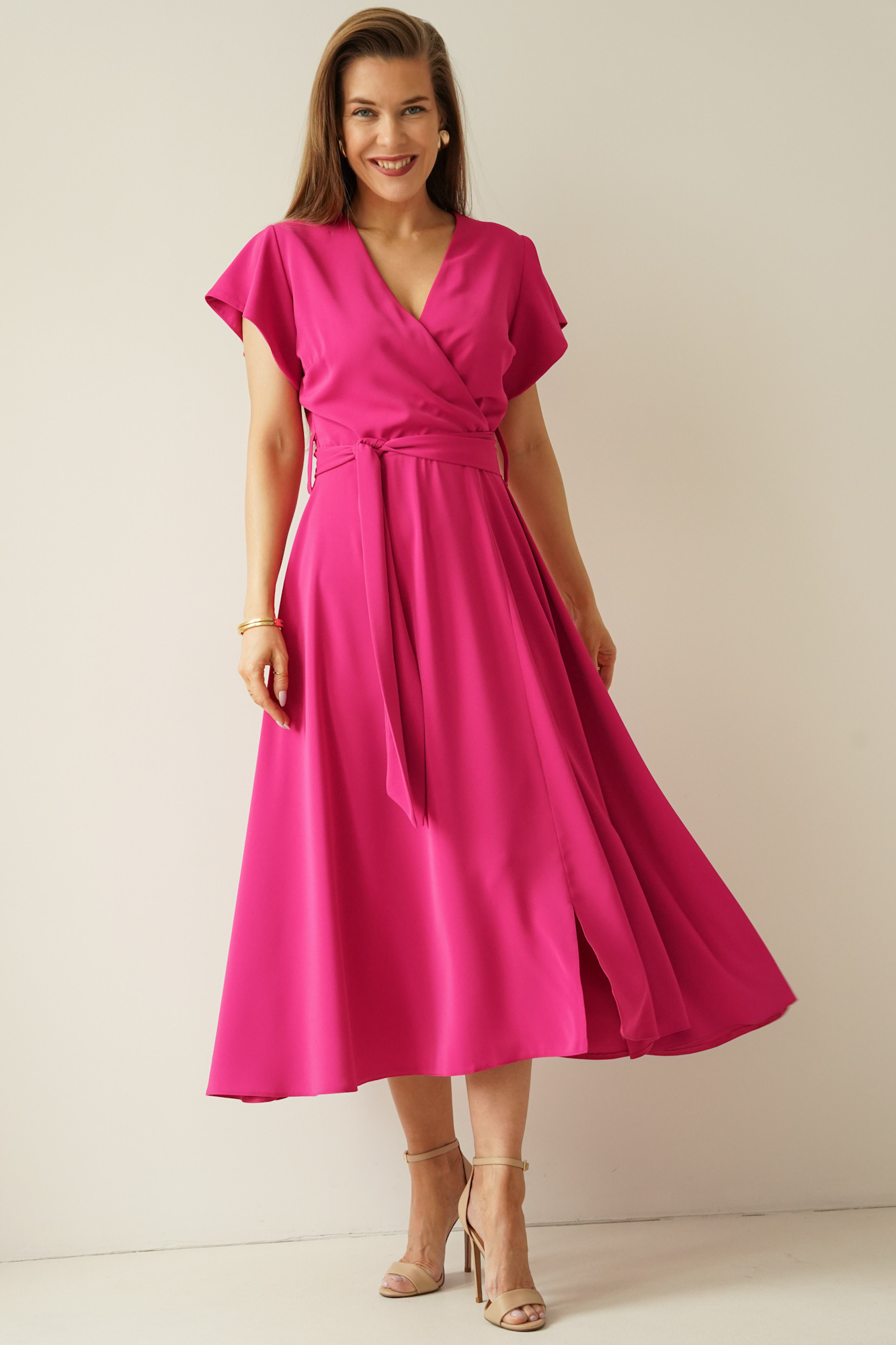 Women's elegant flared dress with envelope neckline Charm fuchsia