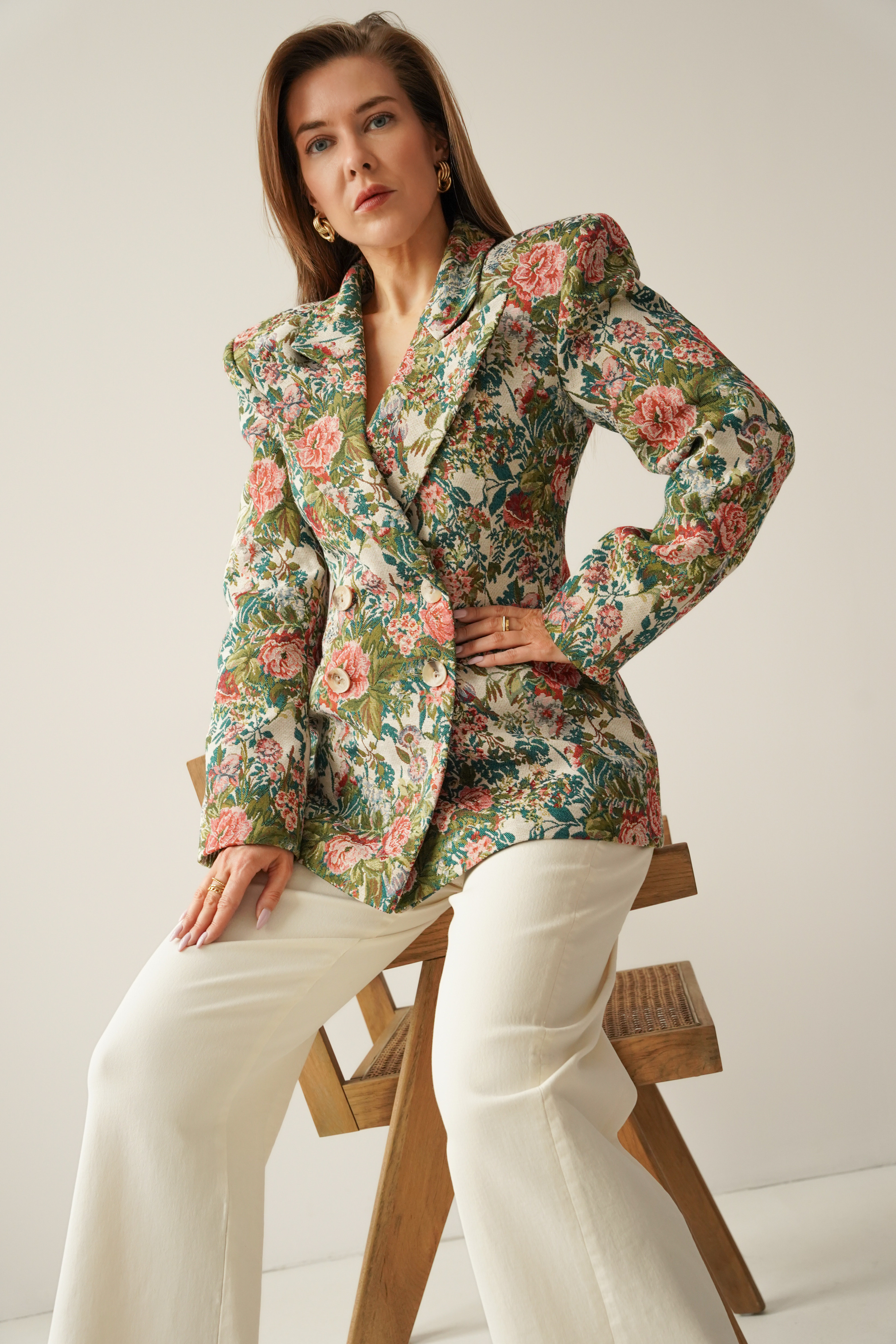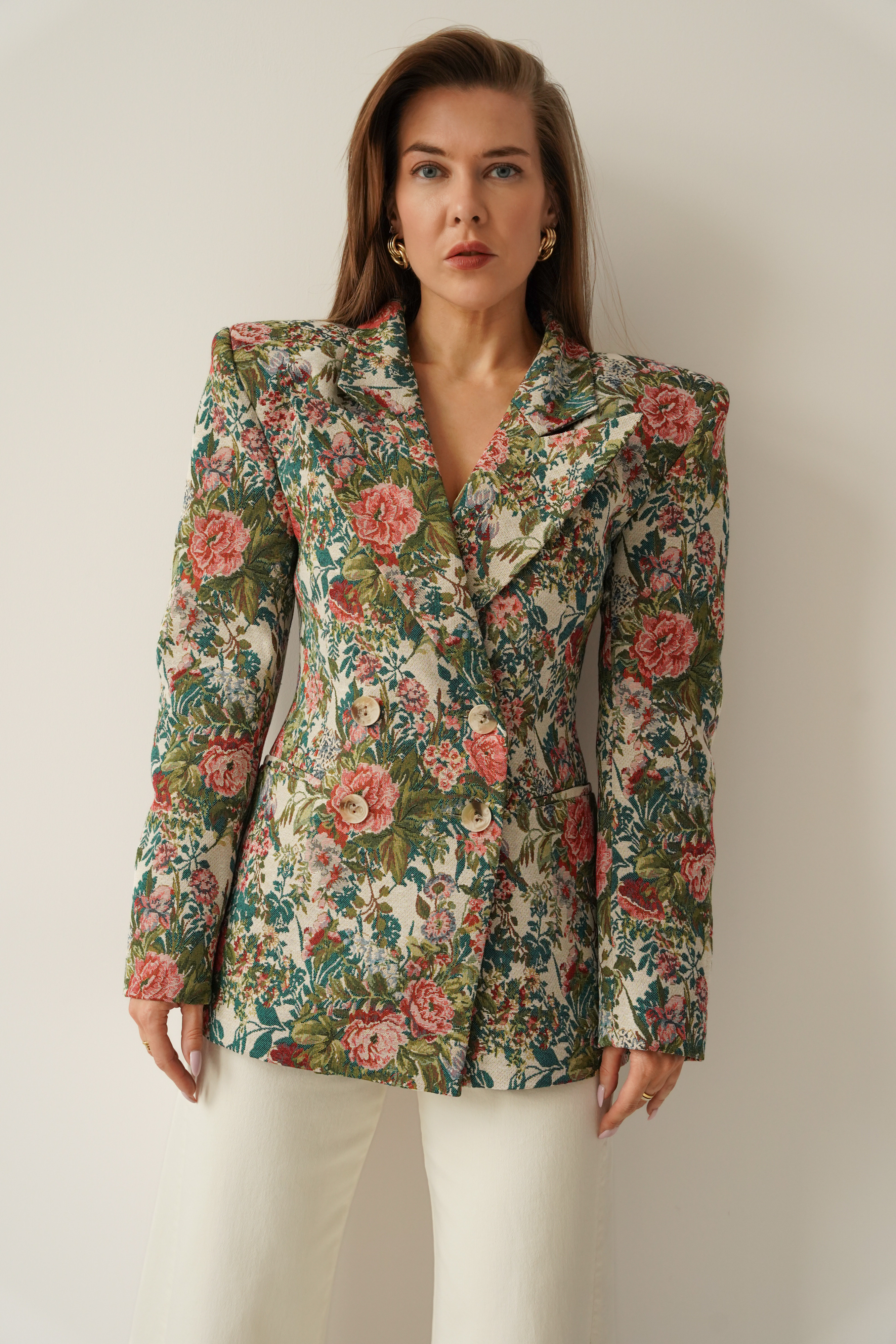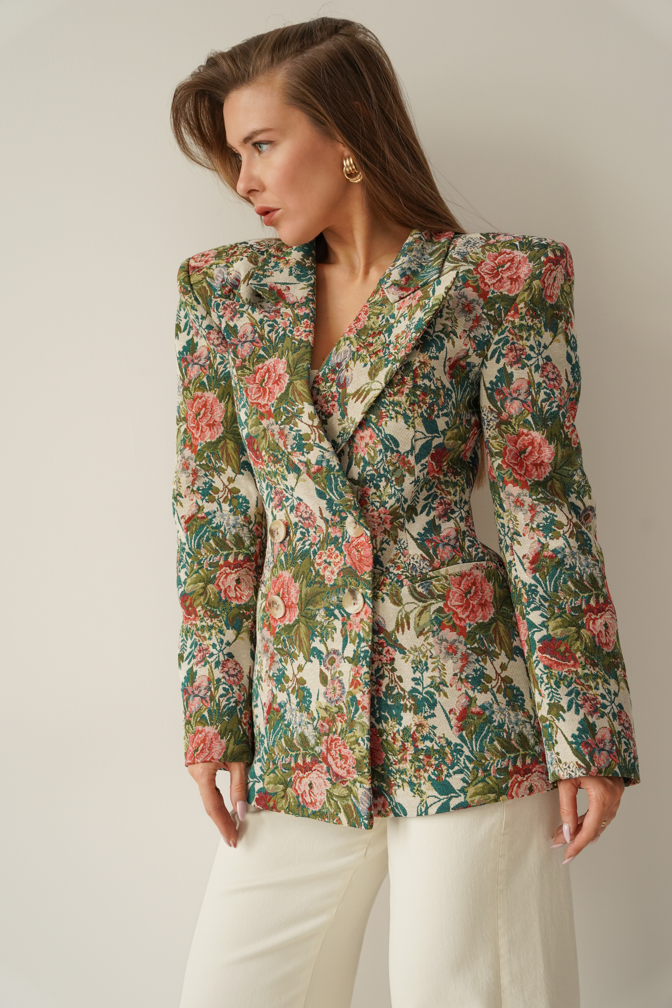 ÉLODIE – a strongly fitted, double-breasted jacket with emphasised shoulders.