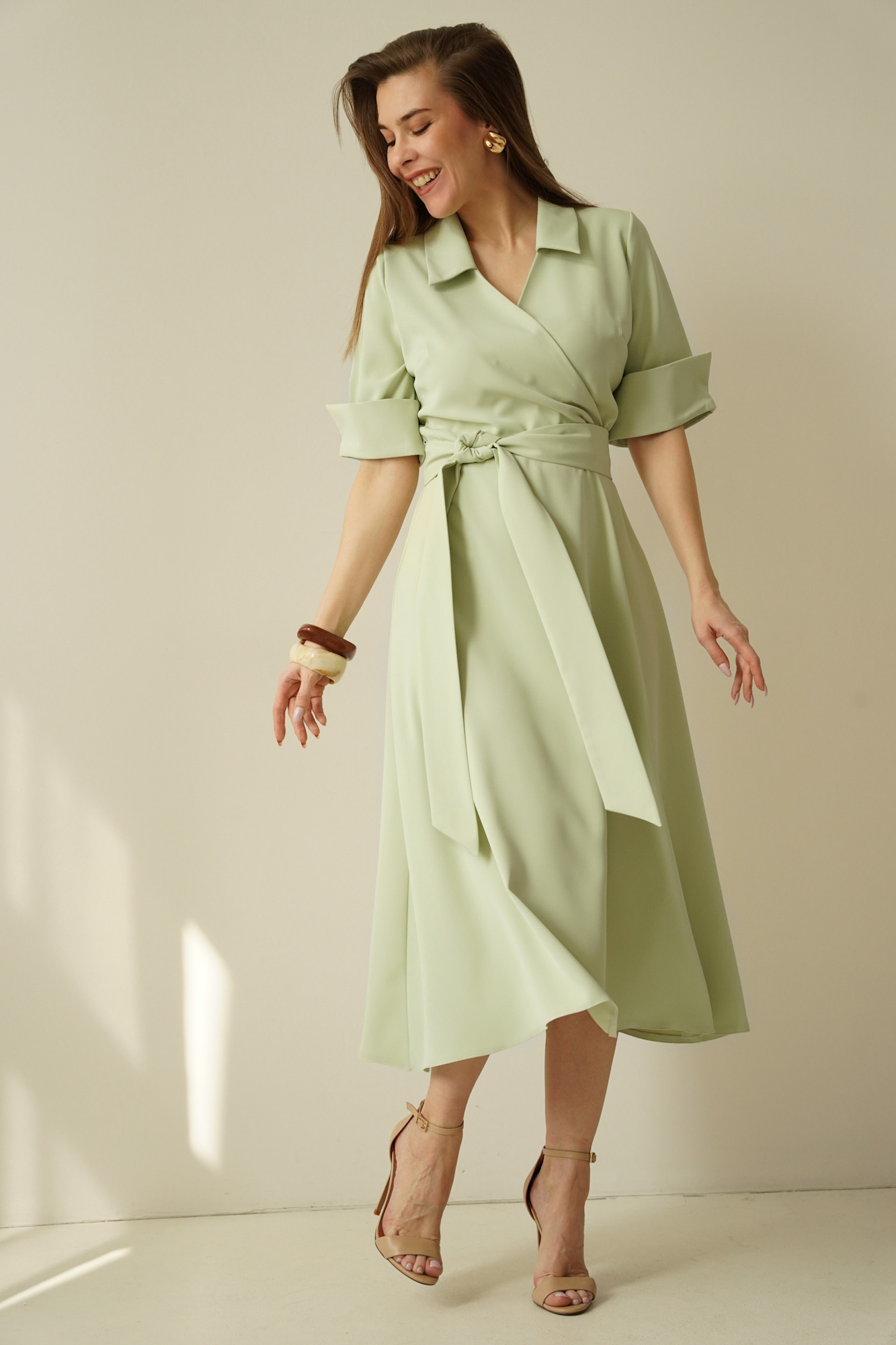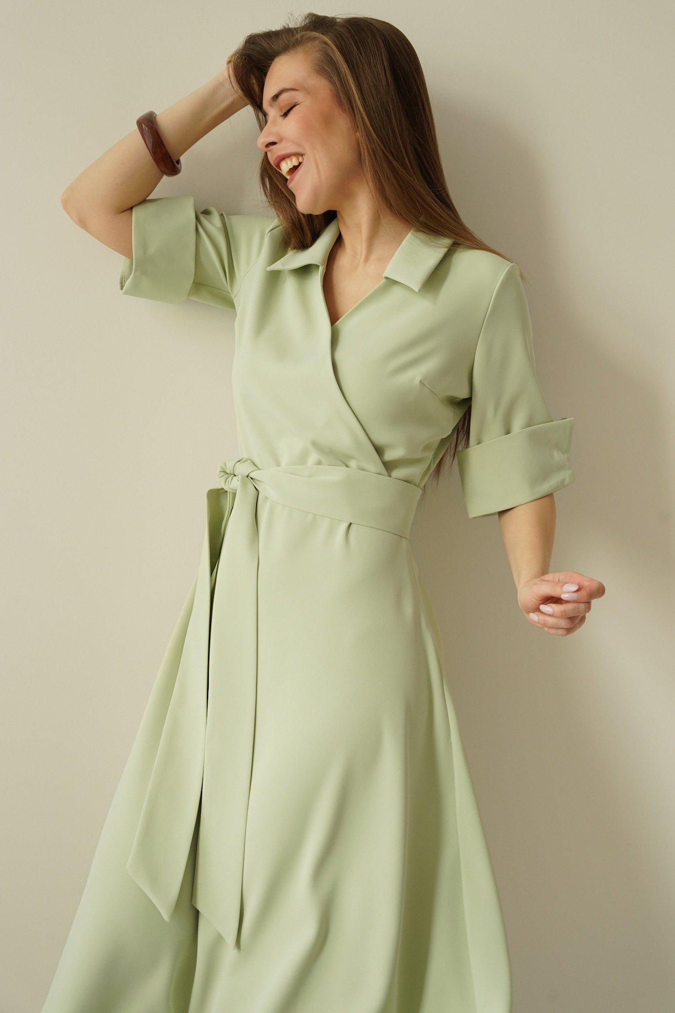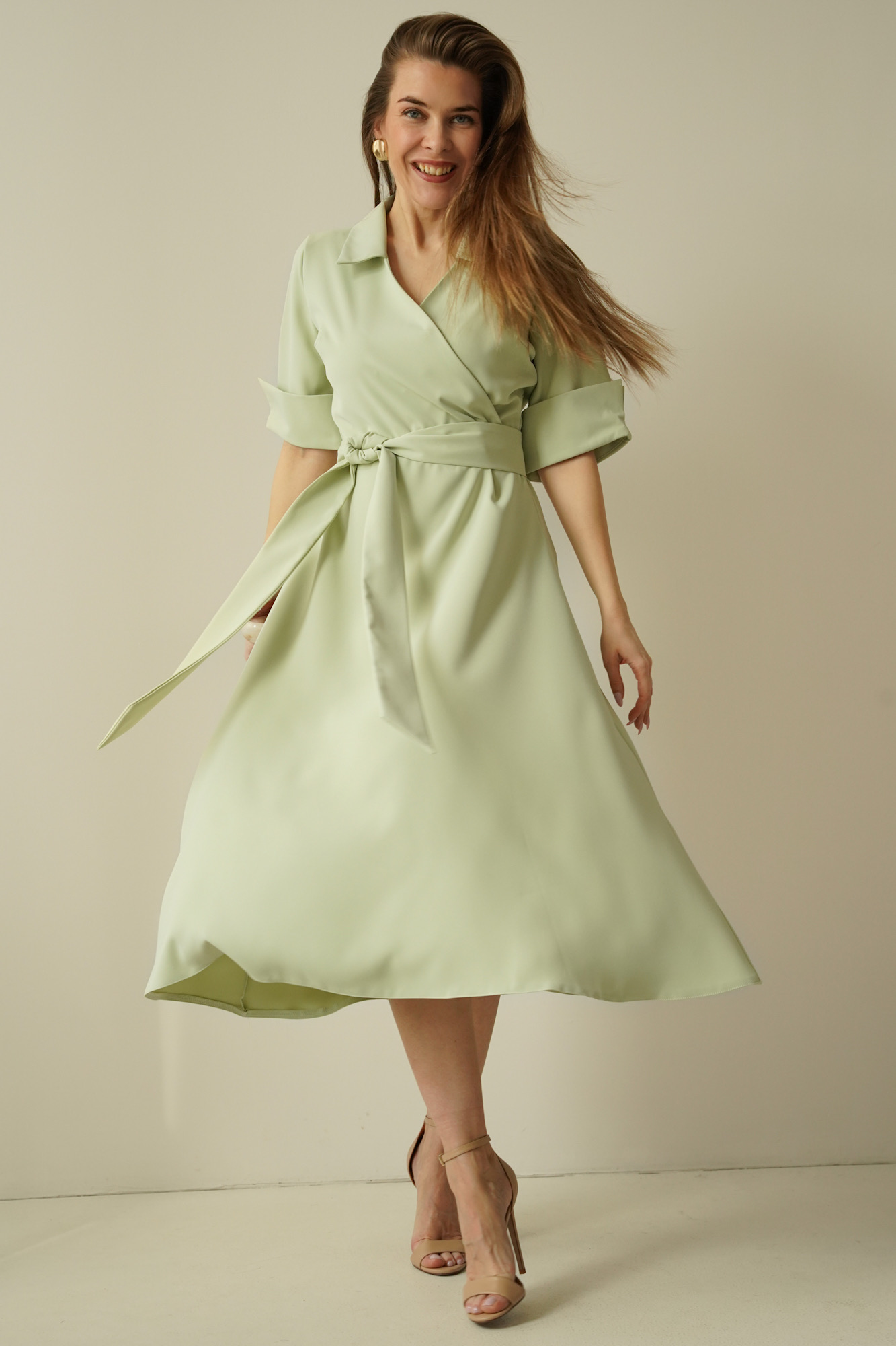 Victoria is a feminine, flared dress with a wrap neckline and an elegant collar, which perfectly combines timeless elegance with everyday comfort. The short sleeves finished with cuffs add a refined touch, whilst the beautifully draping silhouette subtly accentuates the figure. The dress has been made in a Polish workshop from a comfortable, crease-resistant fabric containing 70% viscose. Victoria is perfect for both formal occasions and modern office looks.