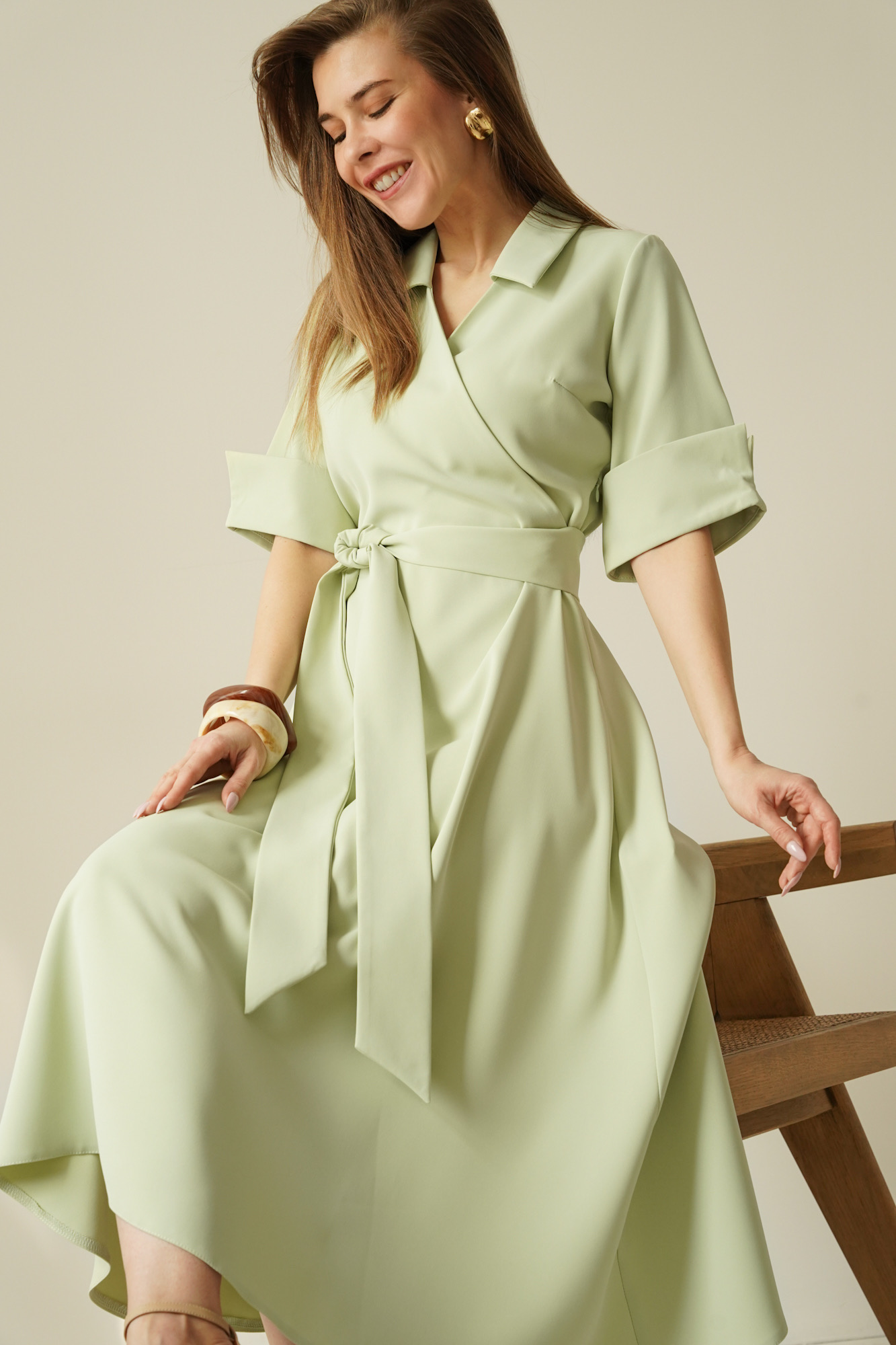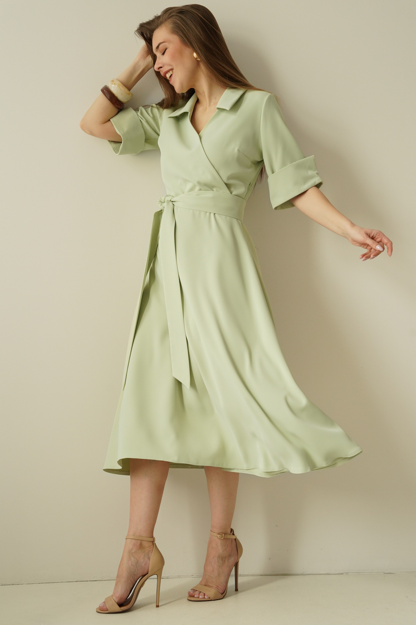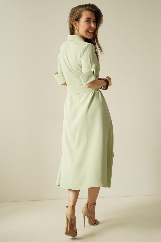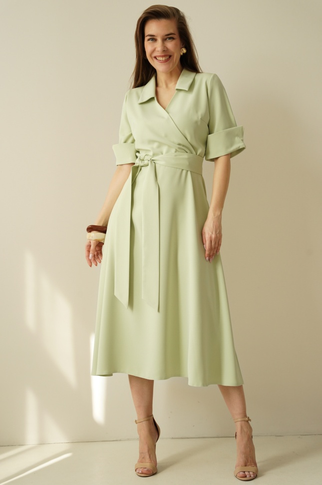 Victoria is a feminine, flared dress with a wrap neckline and an elegant collar, which perfectly combines timeless elegance with everyday comfort. The short sleeves finished with cuffs add a refined touch, whilst the beautifully draping silhouette subtly accentuates the figure. The dress has been made in a Polish workshop from a comfortable, crease-resistant fabric containing 70% viscose. Victoria is perfect for both formal occasions and modern office looks.