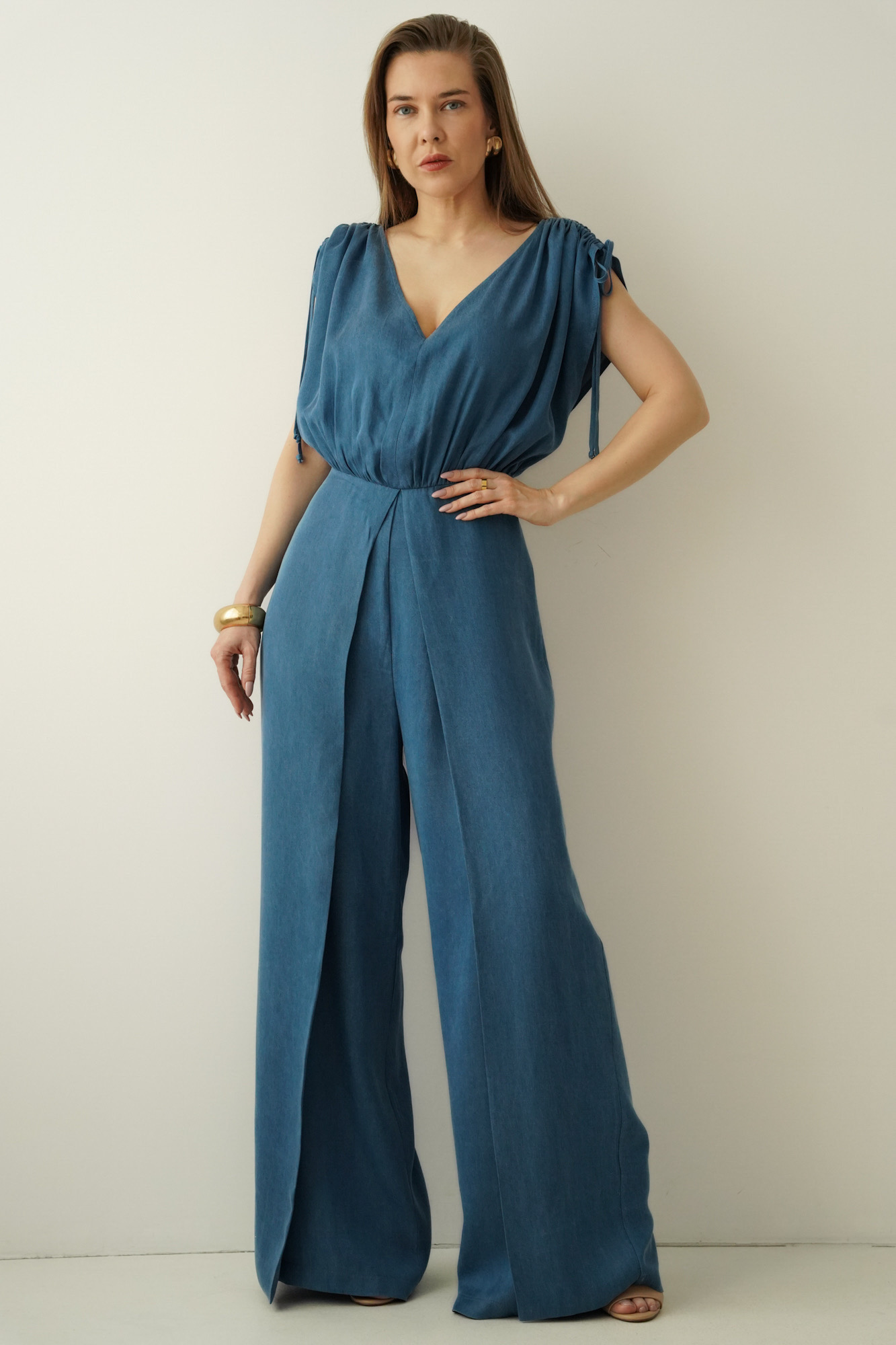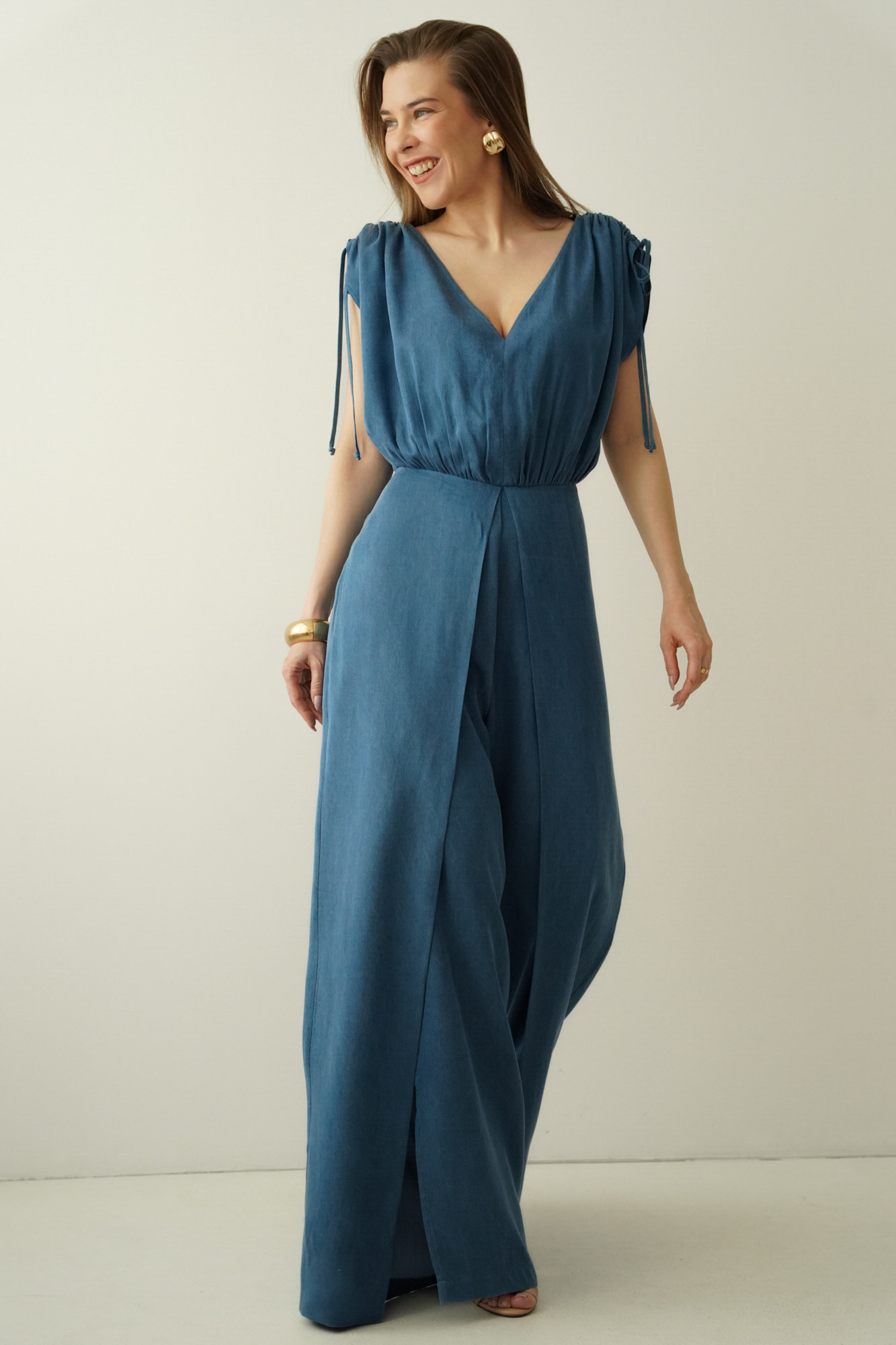 The ‘Jasmine’ jumpsuit is a design that combines modern chic with feminine sensuality. It is made of a noble 100% tencel fabric imitating denim, which is natural, airy and delights with its softness and beautiful shape. It's a fabric that looks luxurious yet comfortable to wear all day - and evening.
